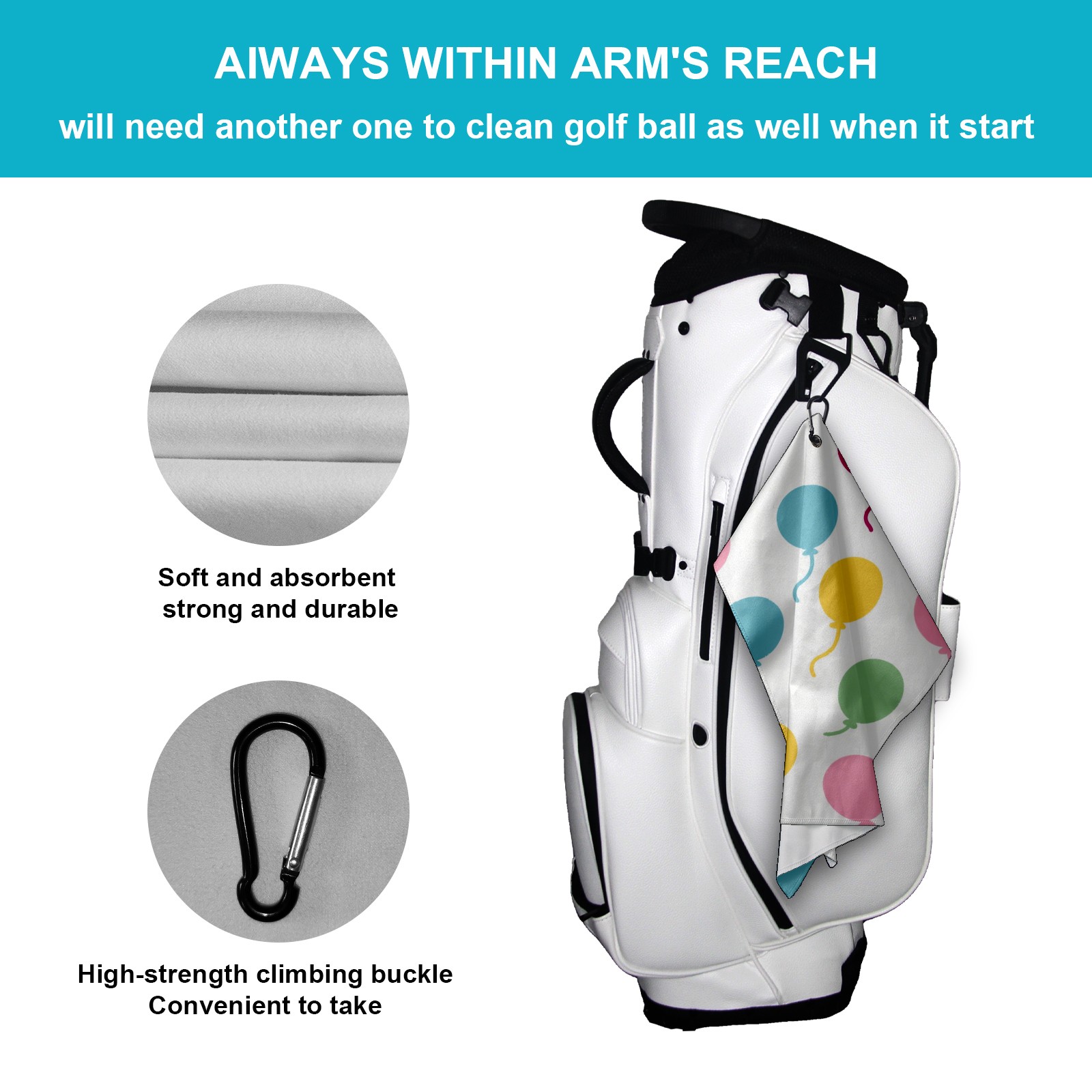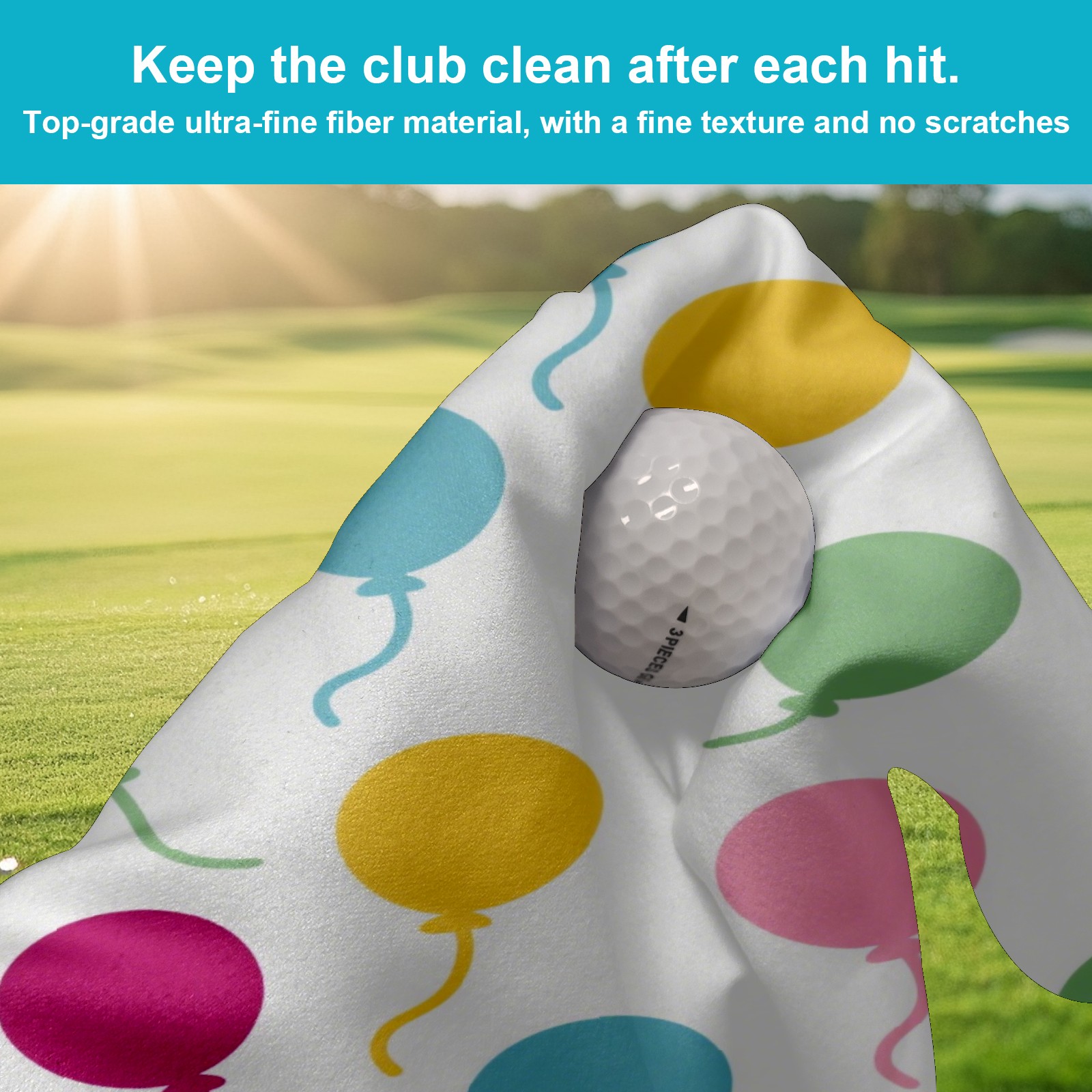Golf Ball Towel with Absorbent and Fast Drying, Polyester Small Golf Ball Towels,for Cleaning Club Heads and Balls Colorful Balloons