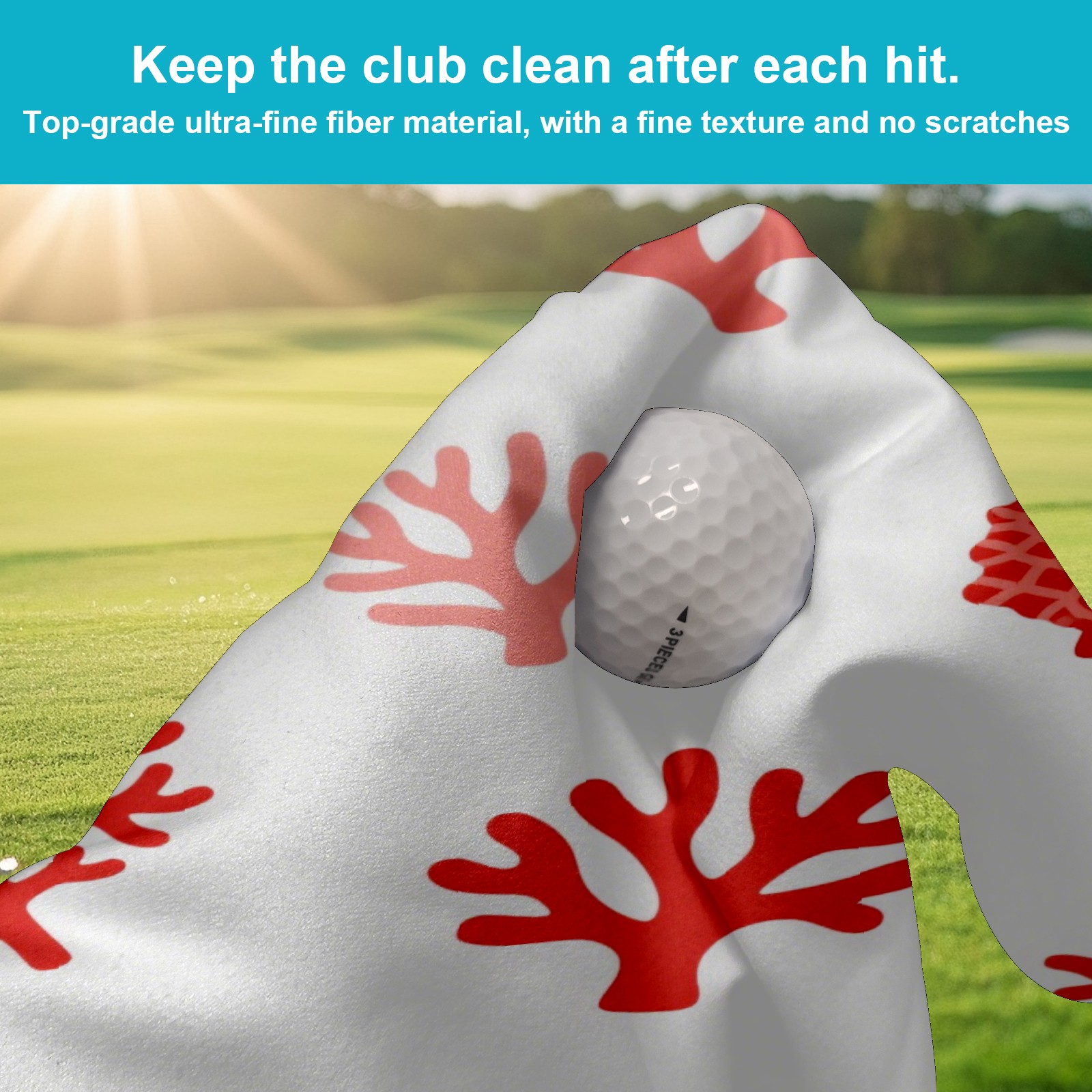 Golf Ball Towel with Absorbent and Fast Drying, Polyester Small Golf Ball Towels,for Cleaning Club Heads and Balls Red Coral