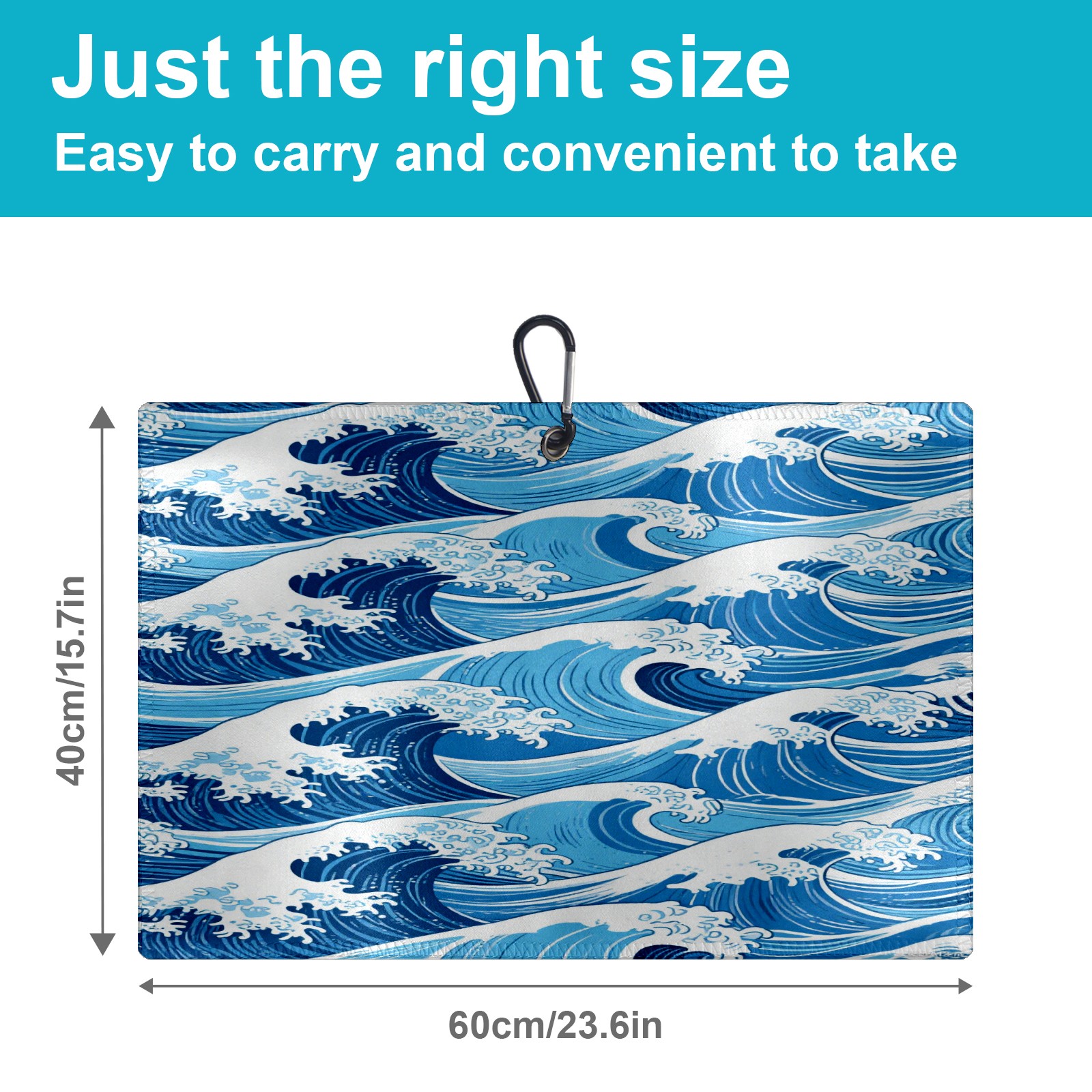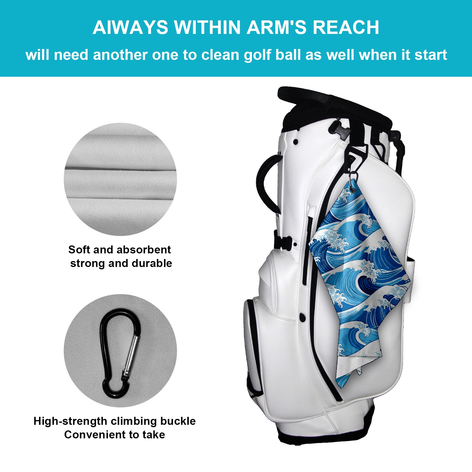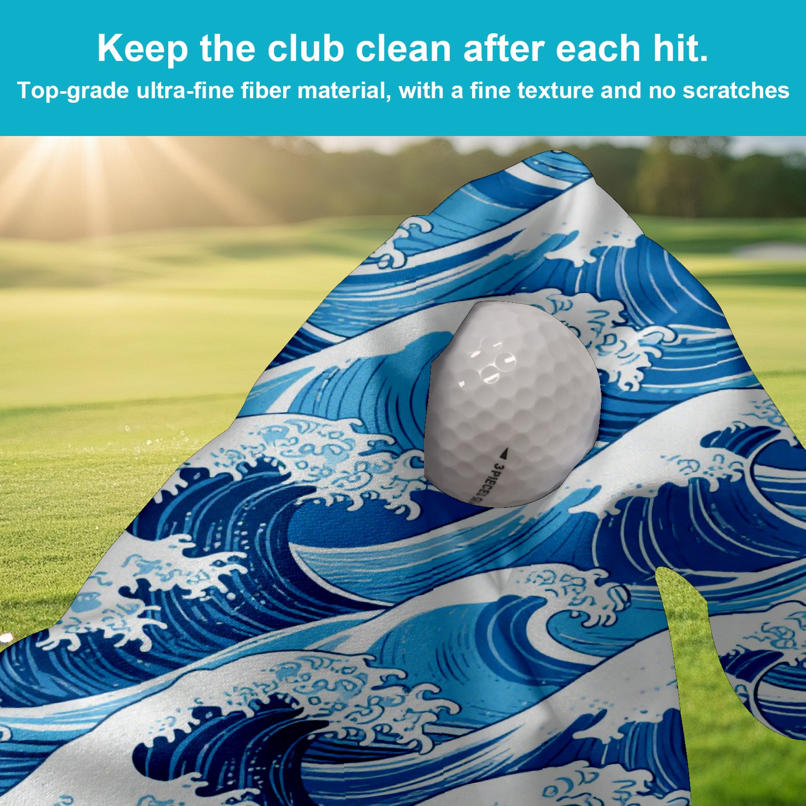 Golf Ball Towel with Absorbent and Fast Drying, Polyester Small Golf Ball Towels,for Cleaning Club Heads and Balls Blue Wave