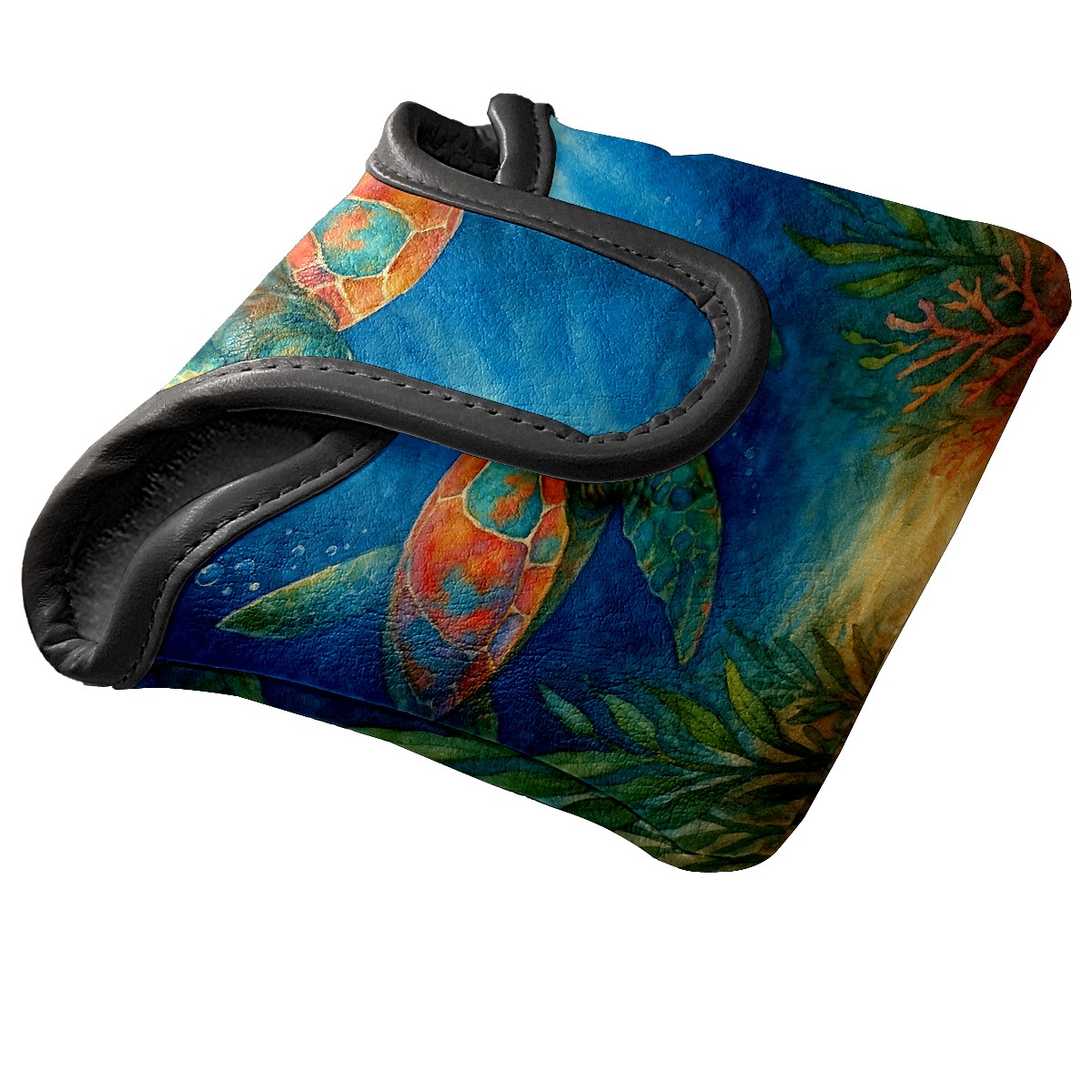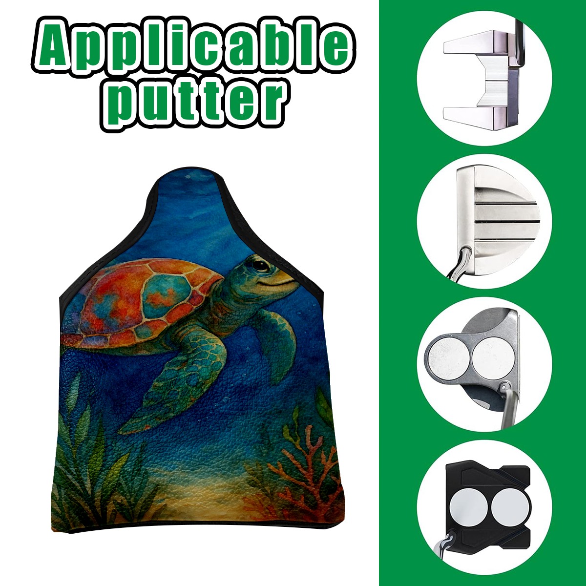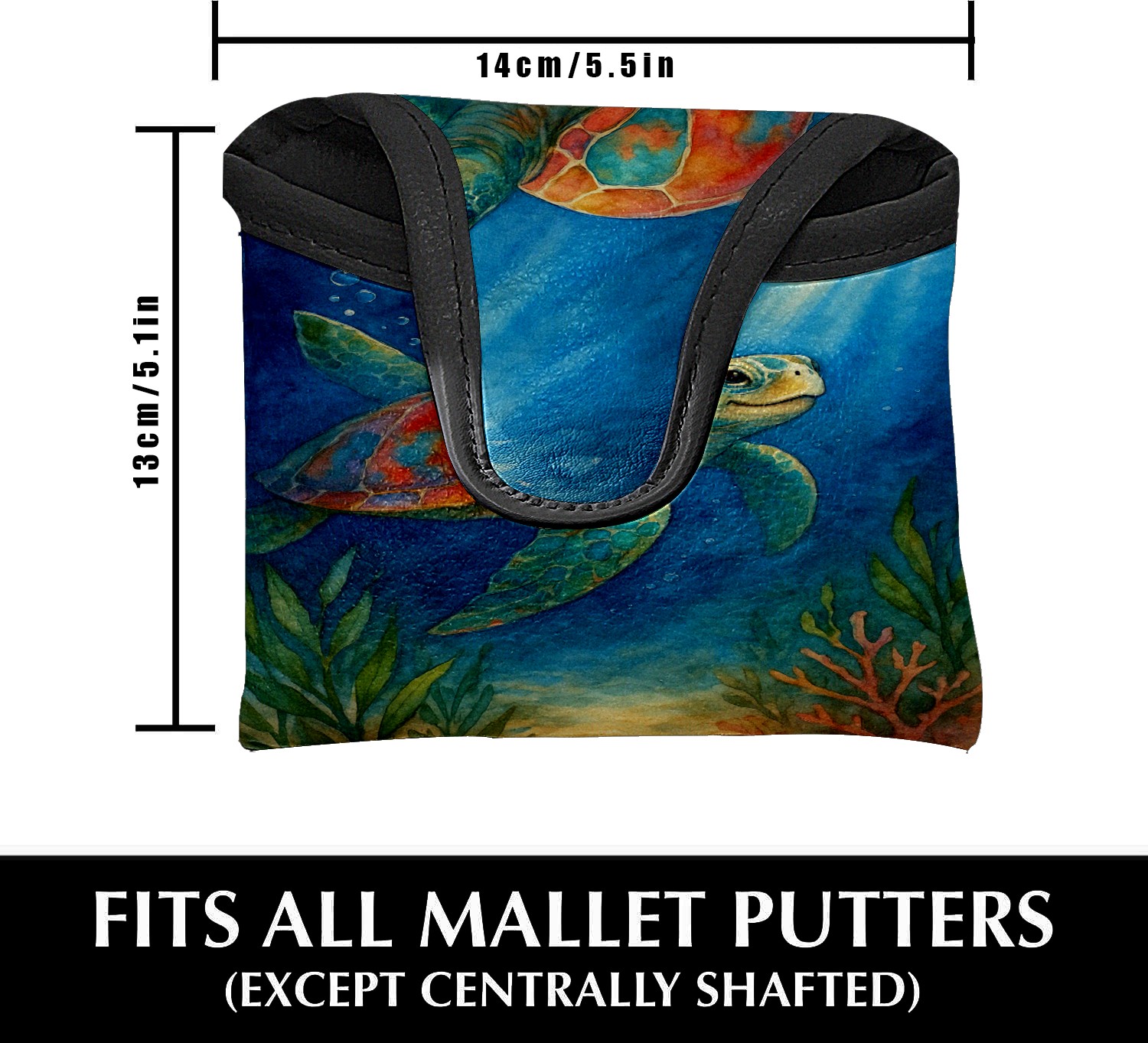 Mallet Putter Cover Magnetic PU Leather Golf Putter Headcover with Plush Lining, Mallet Putter Head Cover for Men Women Golf Club Covers (Watercolor Sea Turtle (1))