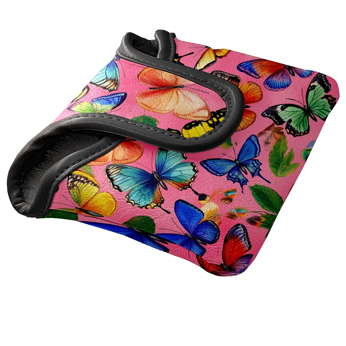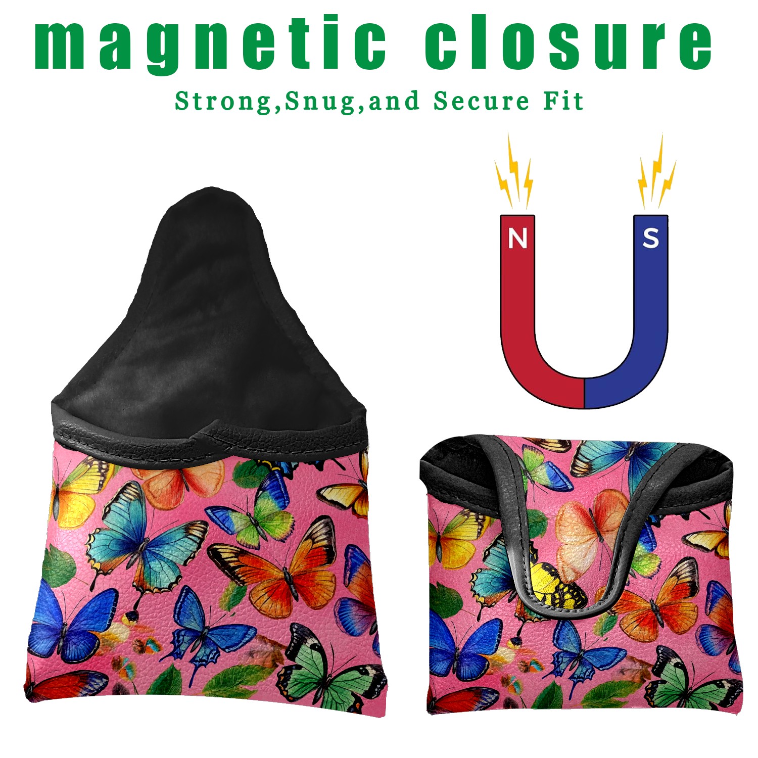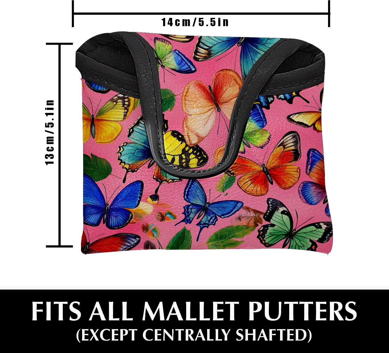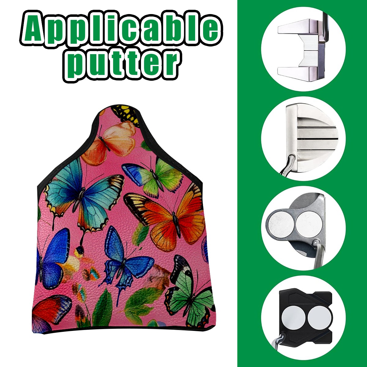 Mallet Putter Cover Magnetic PU Leather Golf Putter Headcover with Plush Lining, Mallet Putter Head Cover for Men Women Golf Club Covers (Colorful Butterflies)