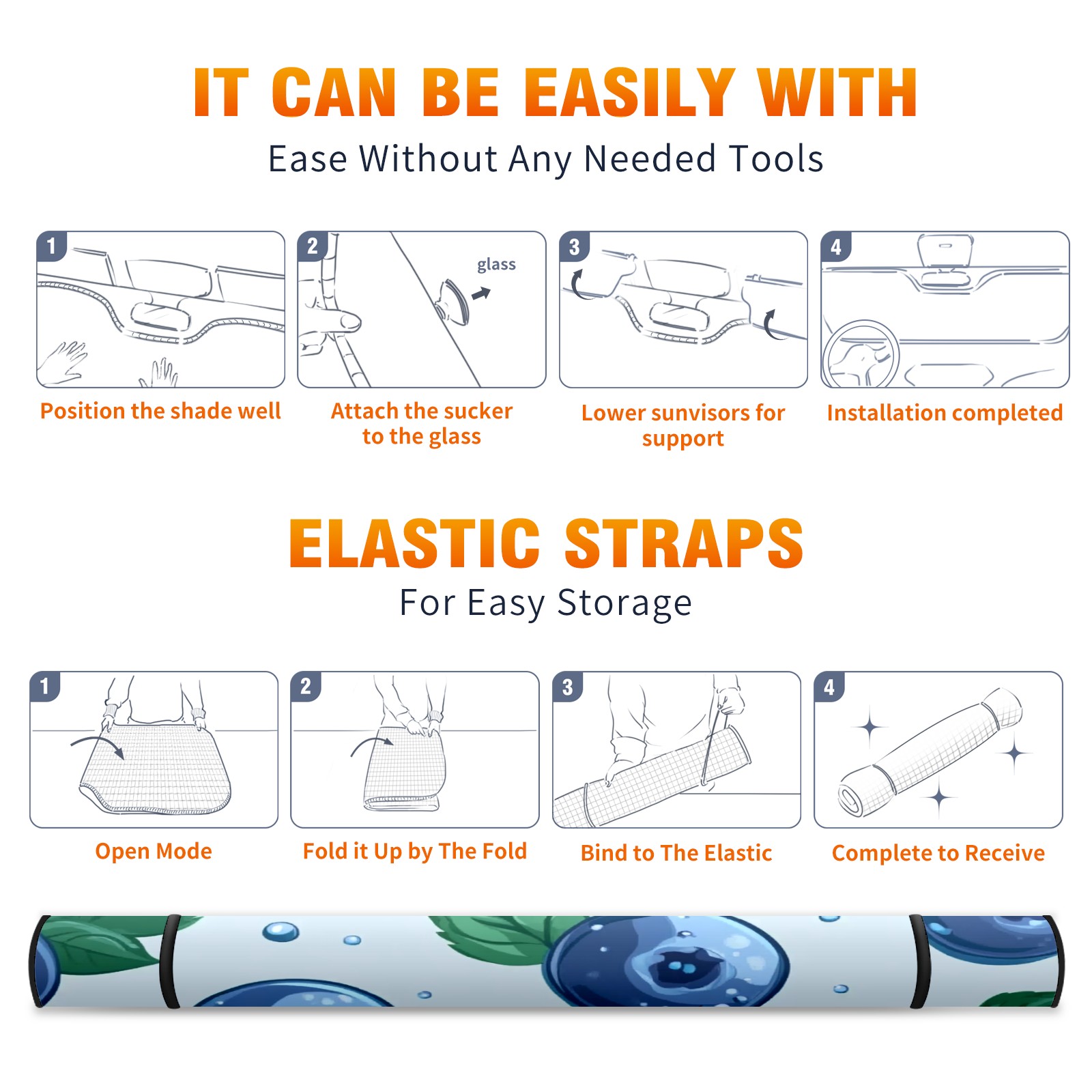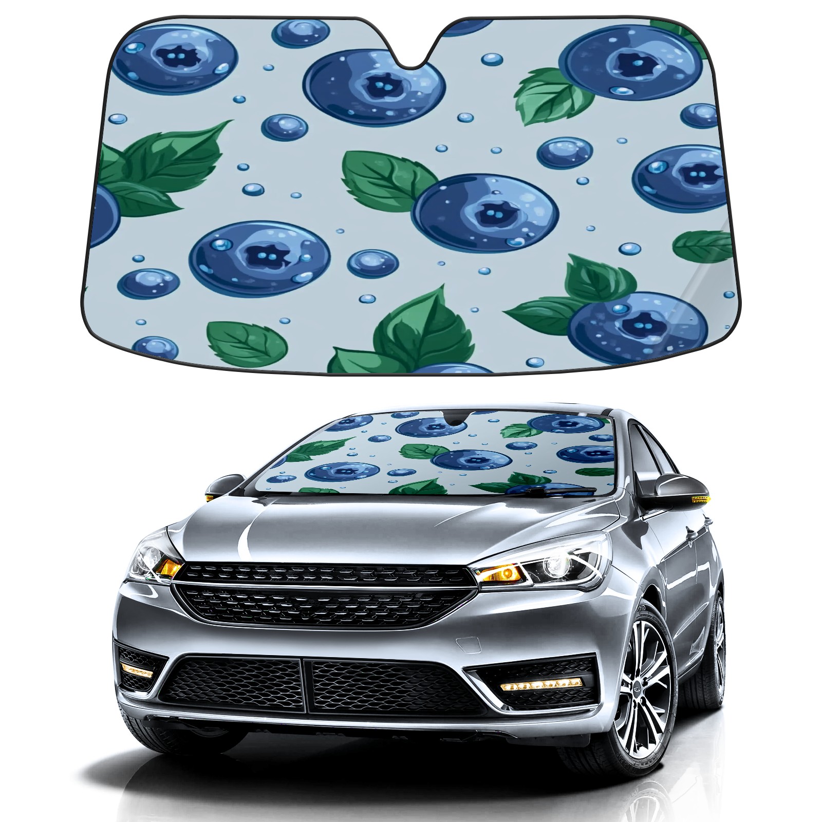 Car Windshield Sun Shade Foldable-Universal Fit Sunshade for Front Windows, UV Protection Heat Shield for Most Vehicles (55x30in)-Sun Visor Extender, Dashboard Cover(Blueberry)