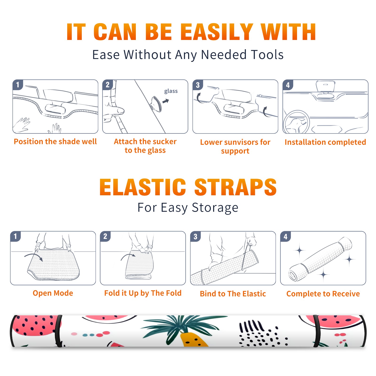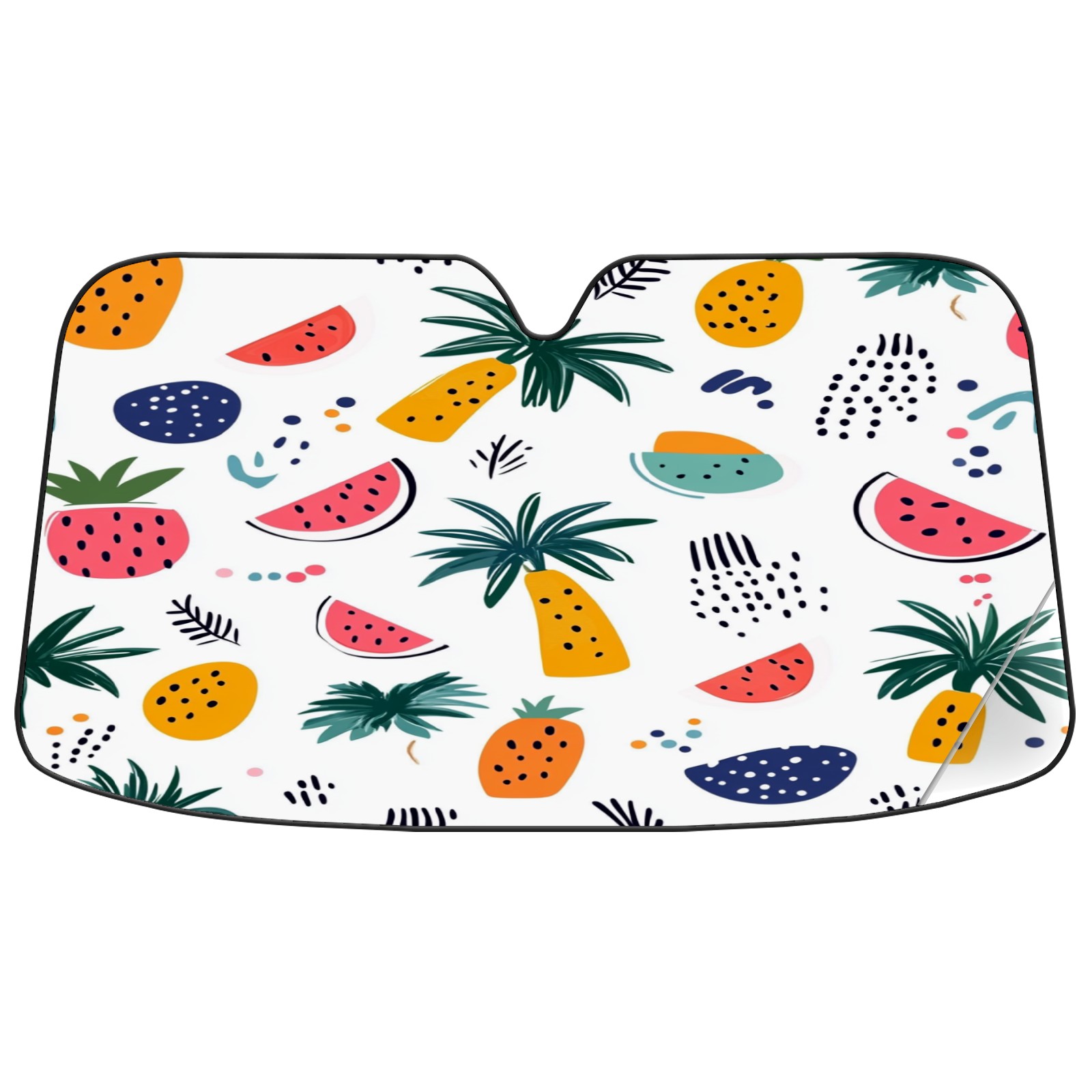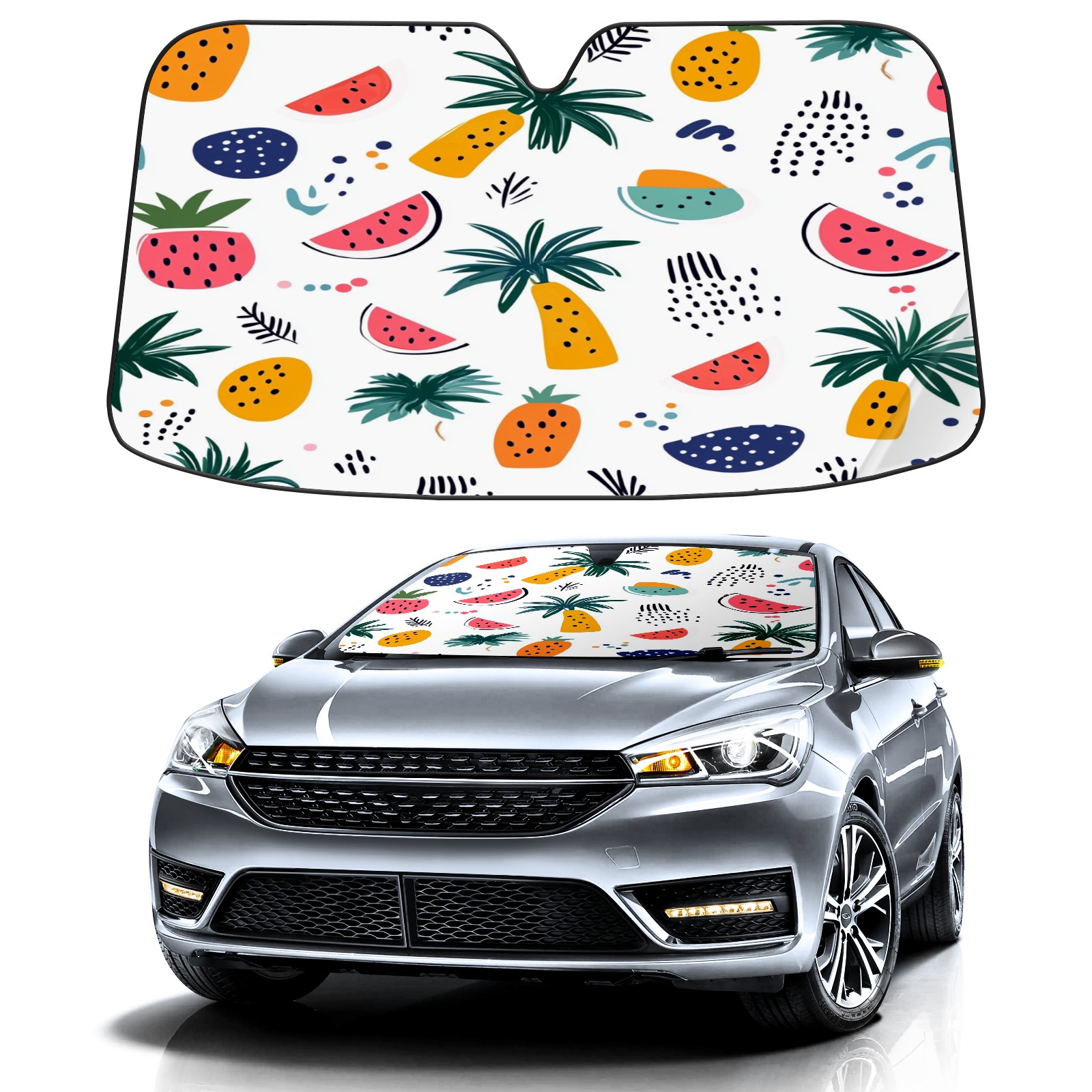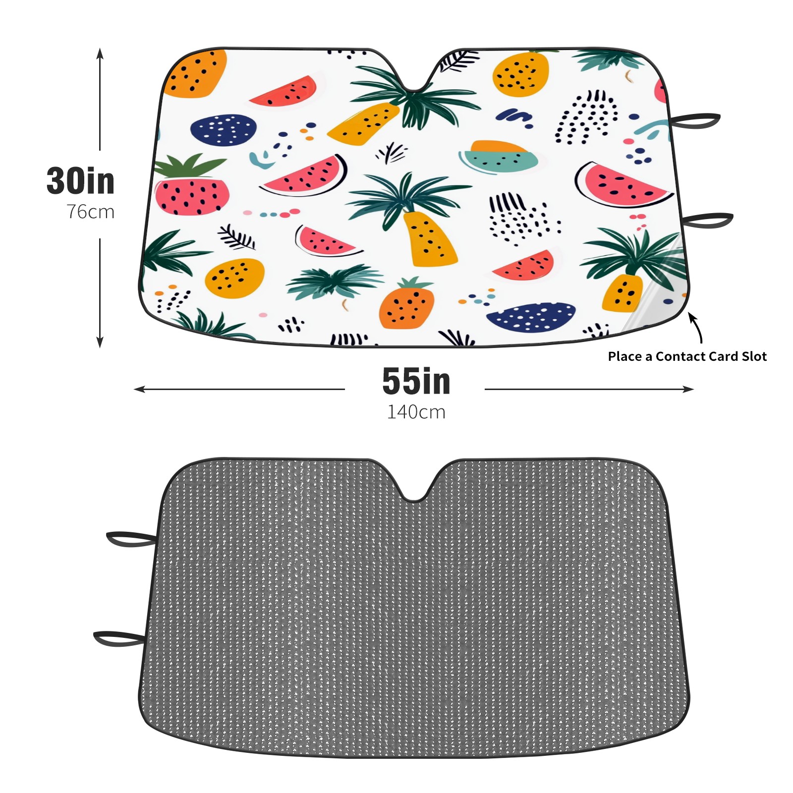 Car Windshield Sun Shade Foldable-Universal Fit Sunshade for Front Windows, UV Protection Heat Shield for Most Vehicles (55x30in)-Sun Visor Extender, Dashboard Cover(Tropical Elements)