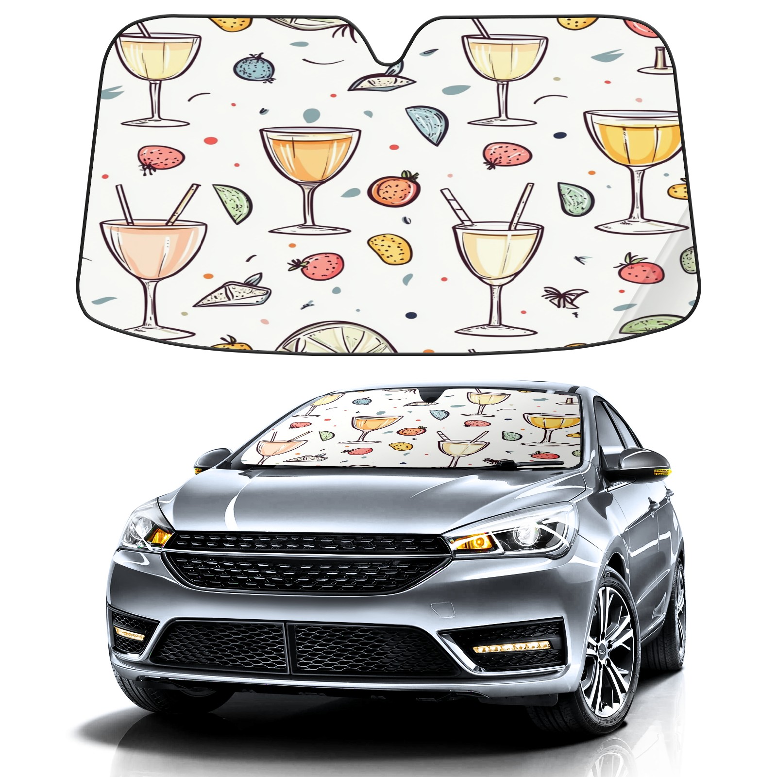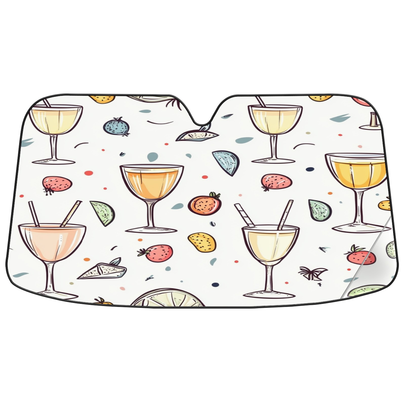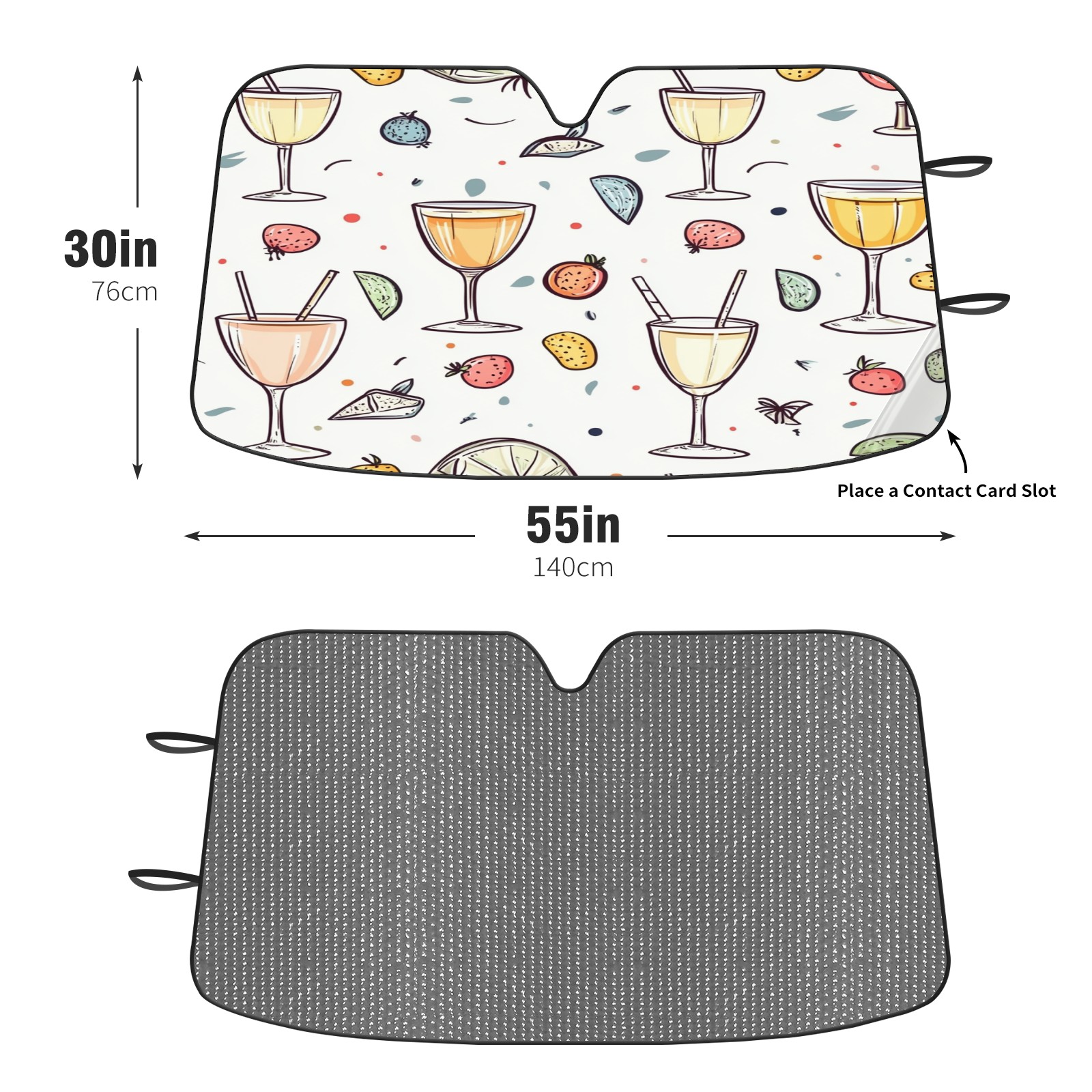 Car Windshield Sun Shade Foldable-Universal Fit Sunshade for Front Windows, UV Protection Heat Shield for Most Vehicles (55x30in)-Sun Visor Extender, Dashboard Cover(Champagne Glasses Pattern)