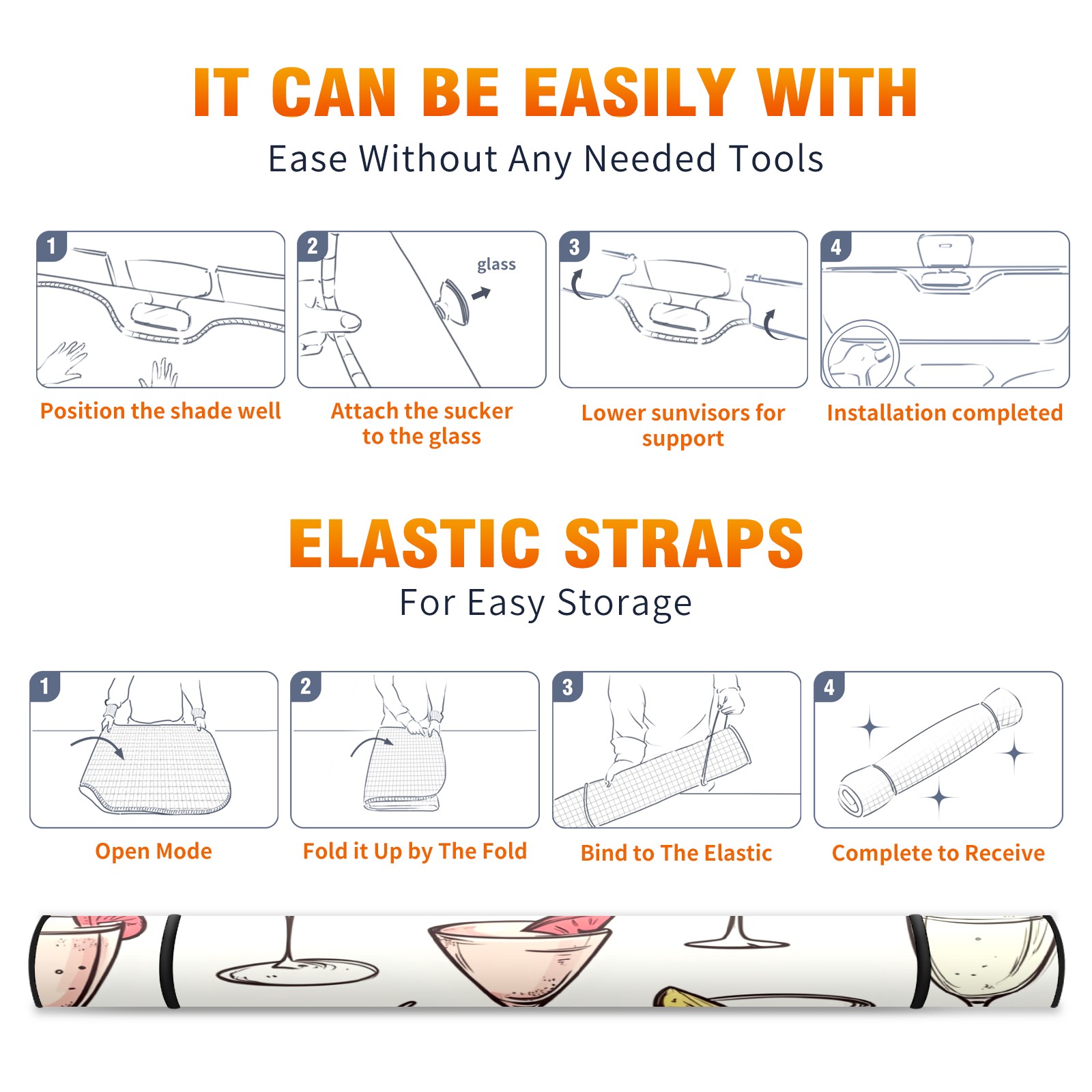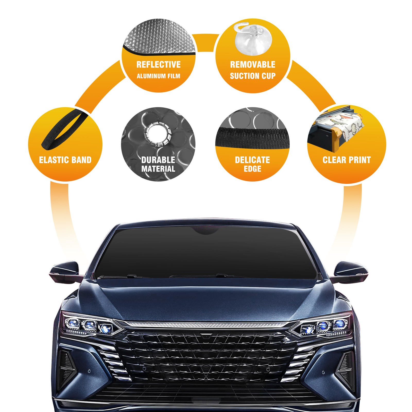 • <p>Stay cool and protect your car’s interior with our&nbsp;<strong>universal-fit windshield sun shade</strong>, designed to block&nbsp;<strong>99% of harmful UV rays</strong>&nbsp;and reduce cabin heat by up to&nbsp;<strong>60°F</strong>. Perfect for sedans, SUVs, and trucks, this&nbsp;<strong>foldable sunshade</strong>&nbsp;features a&nbsp;<strong>heavy-duty reflective surface</strong>&nbsp;that ensures maximum coverage for your&nbsp;<strong>car windshield</strong>.<br></p>