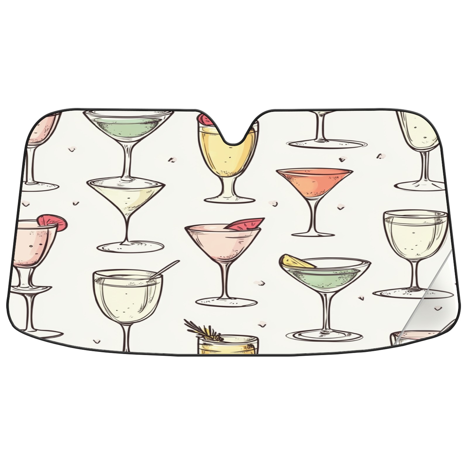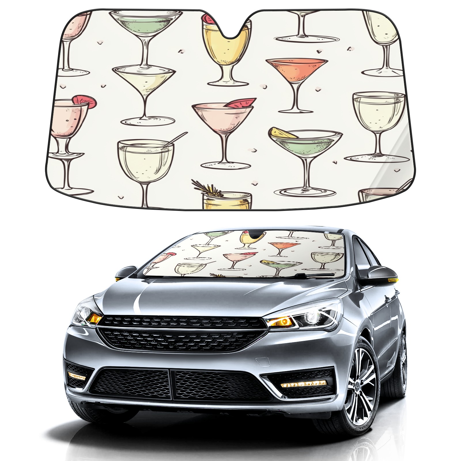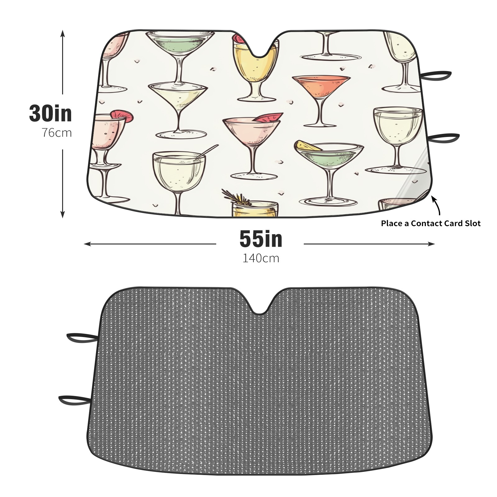Car Windshield Sun Shade Foldable-Universal Fit Sunshade for Front Windows, UV Protection Heat Shield for Most Vehicles (55x30in)-Sun Visor Extender, Dashboard Cover(Champagne Glasses)