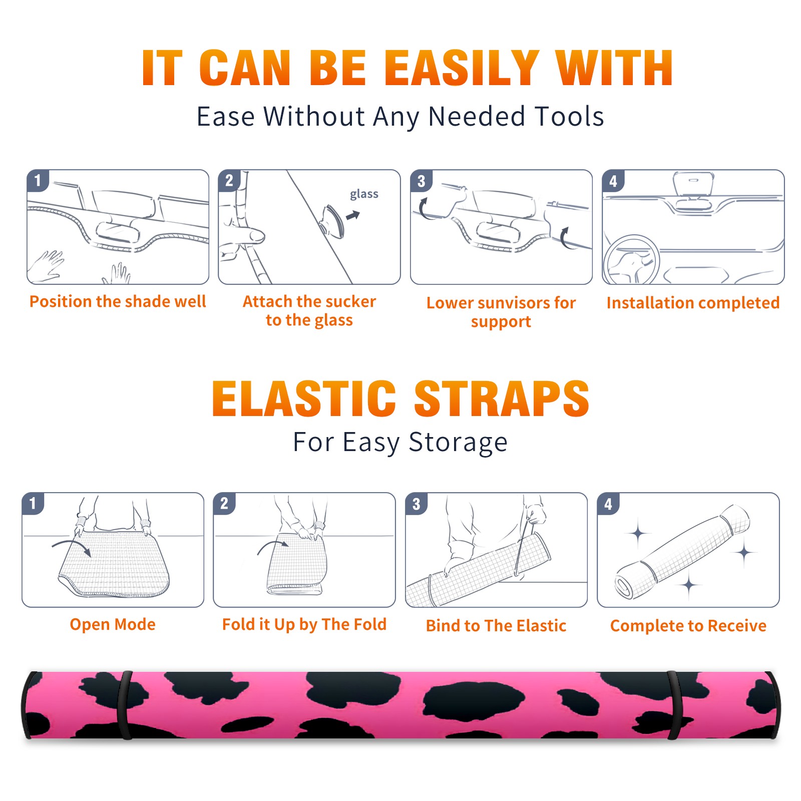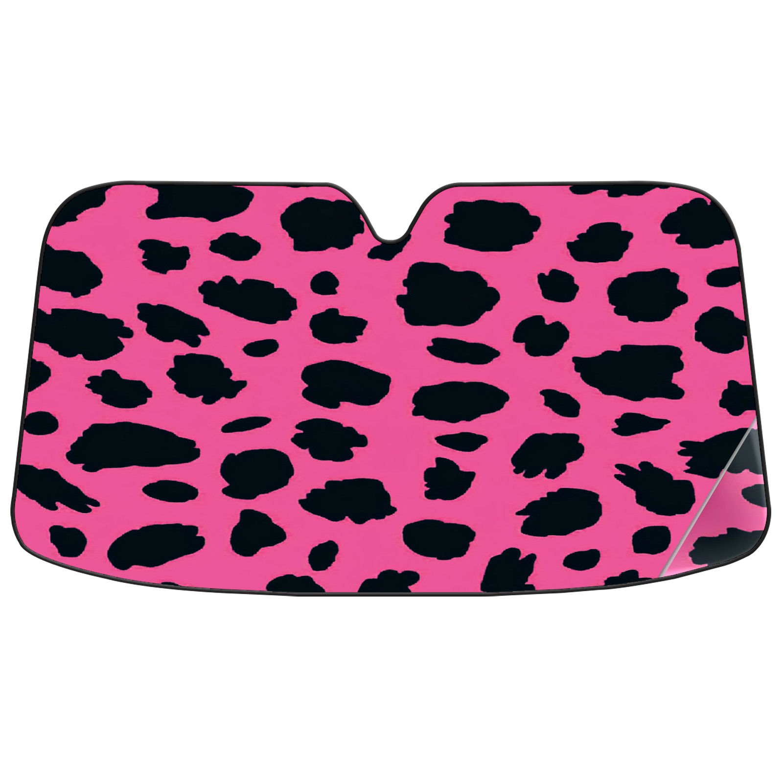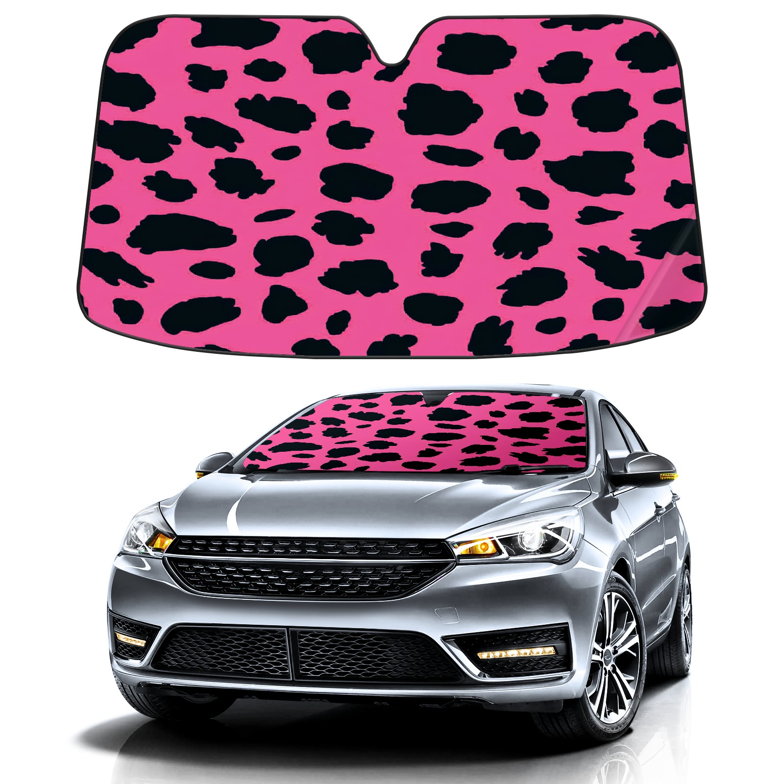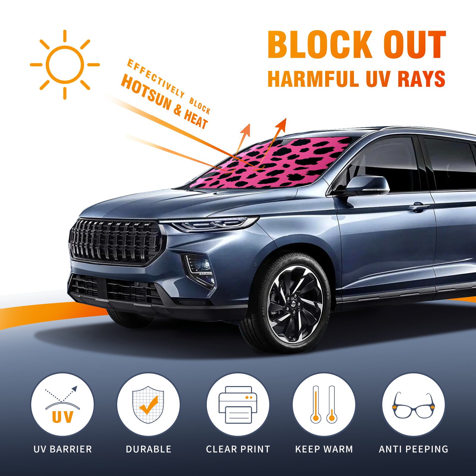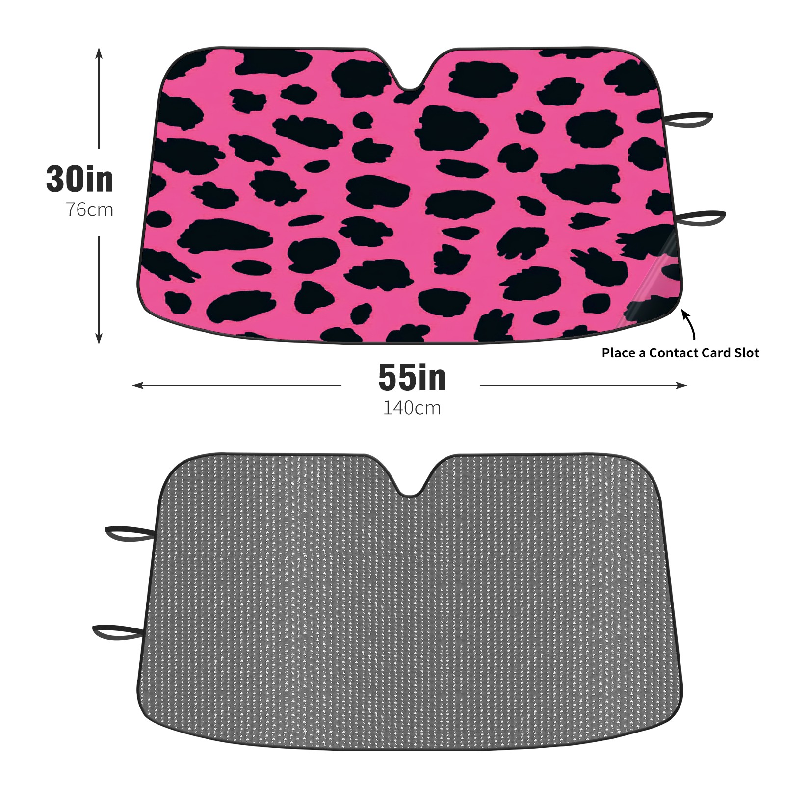 Car Windshield Sun Shade Foldable-Universal Fit Sunshade for Front Windows, UV Protection Heat Shield for Most Vehicles (55x30in)-Sun Visor Extender, Dashboard Cover(Pink Leopard Print)