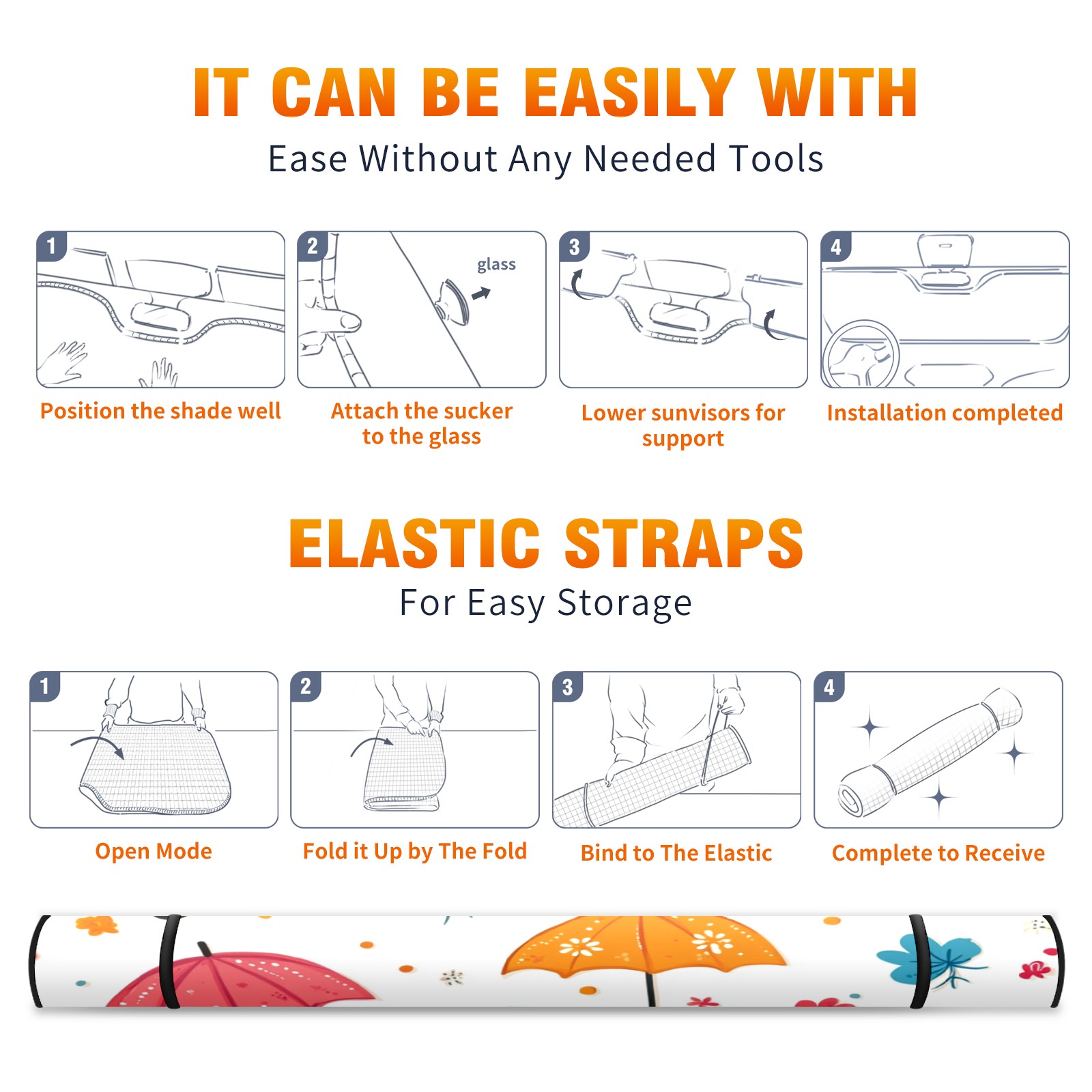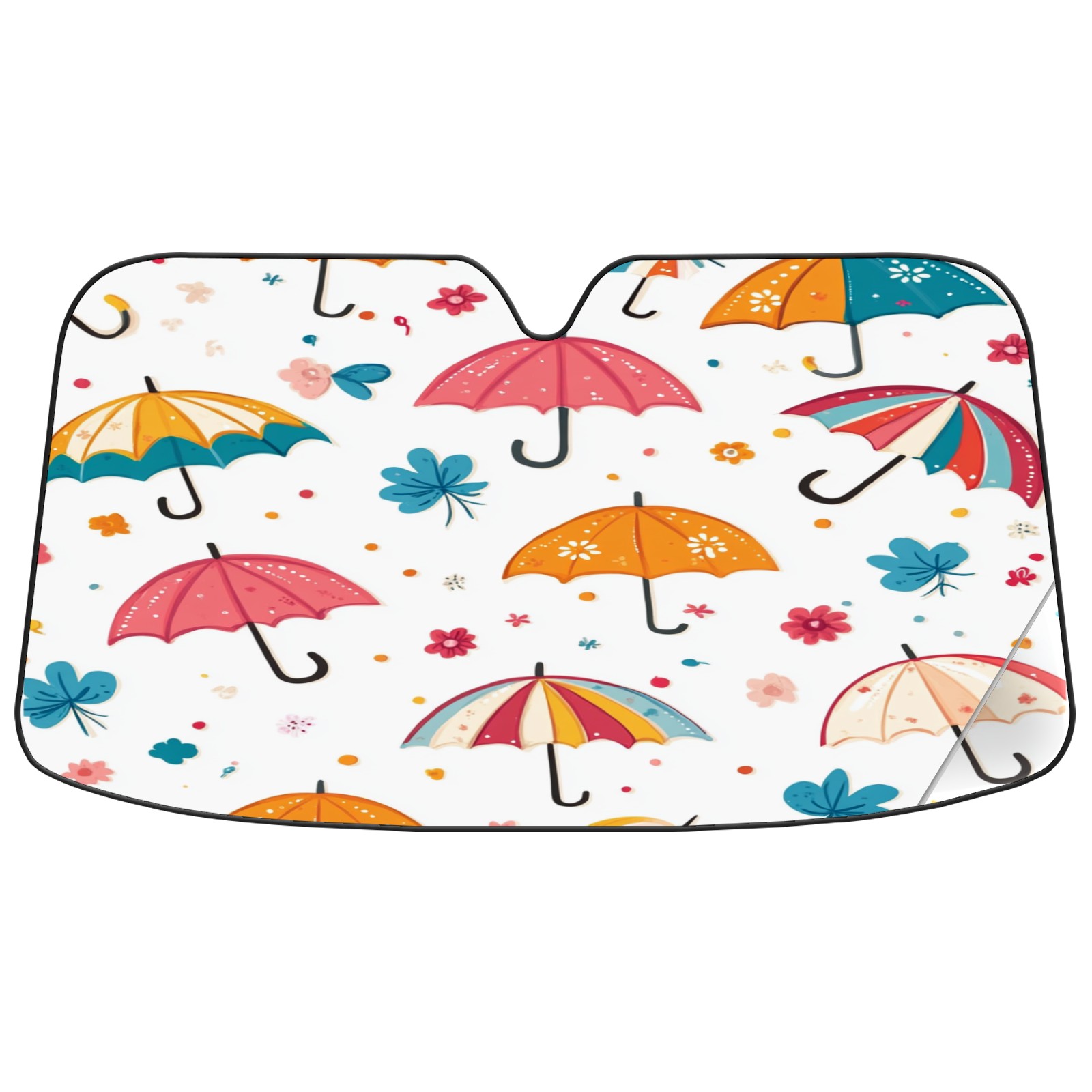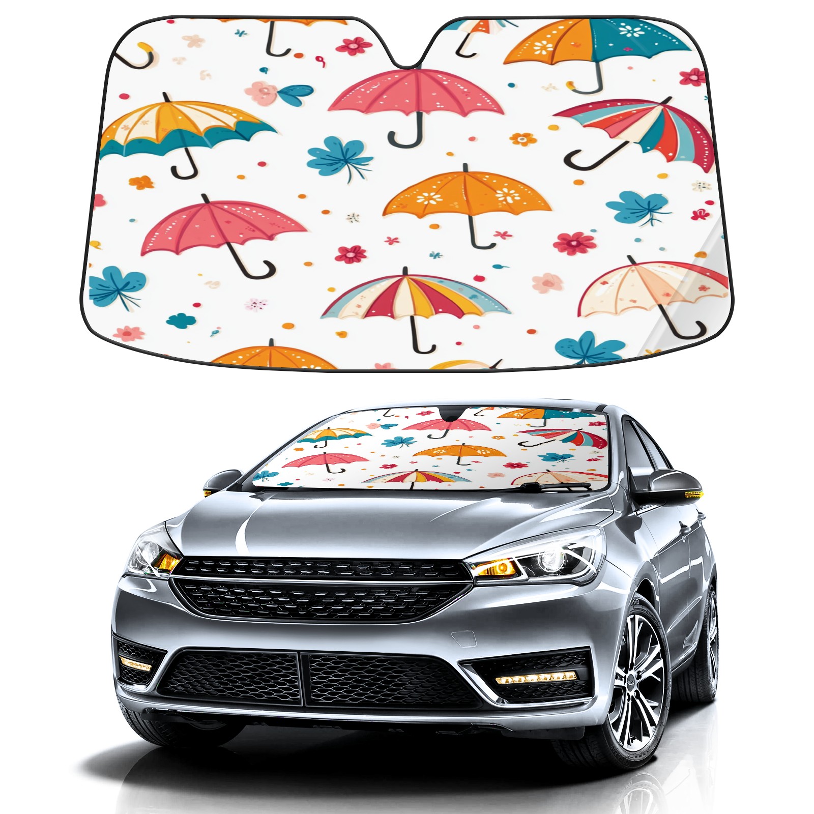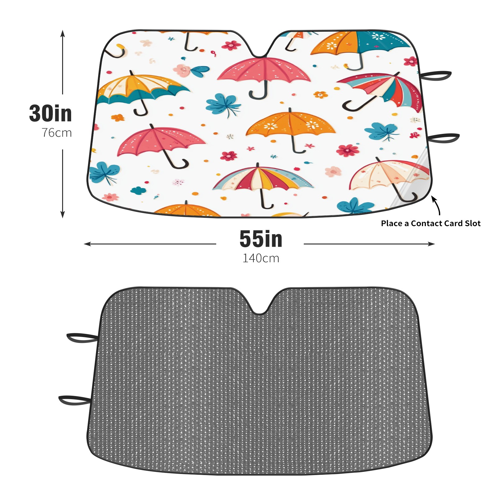 Car Windshield Sun Shade Foldable-Universal Fit Sunshade for Front Windows, UV Protection Heat Shield for Most Vehicles (55x30in)-Sun Visor Extender, Dashboard Cover(Umbrellas Pattern)