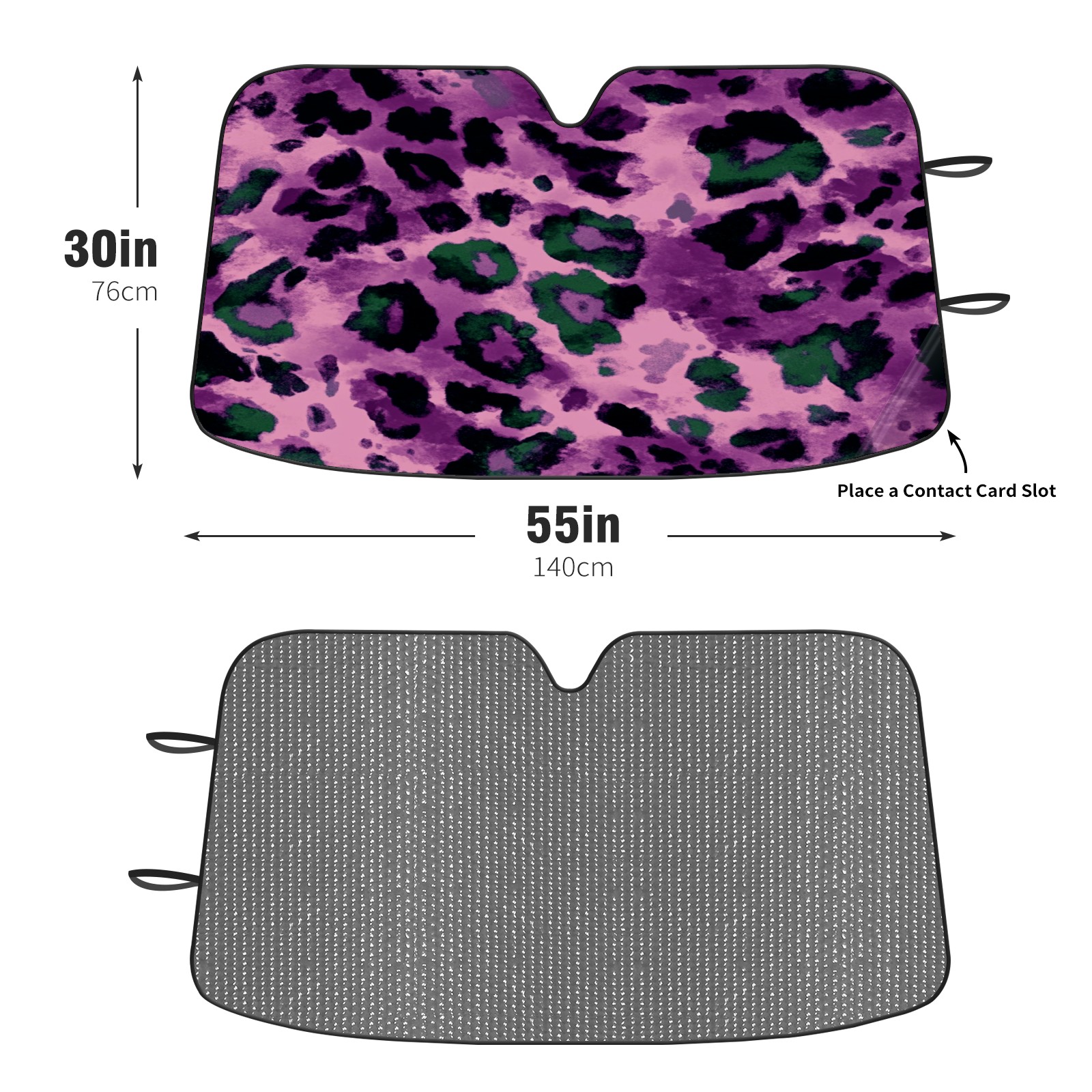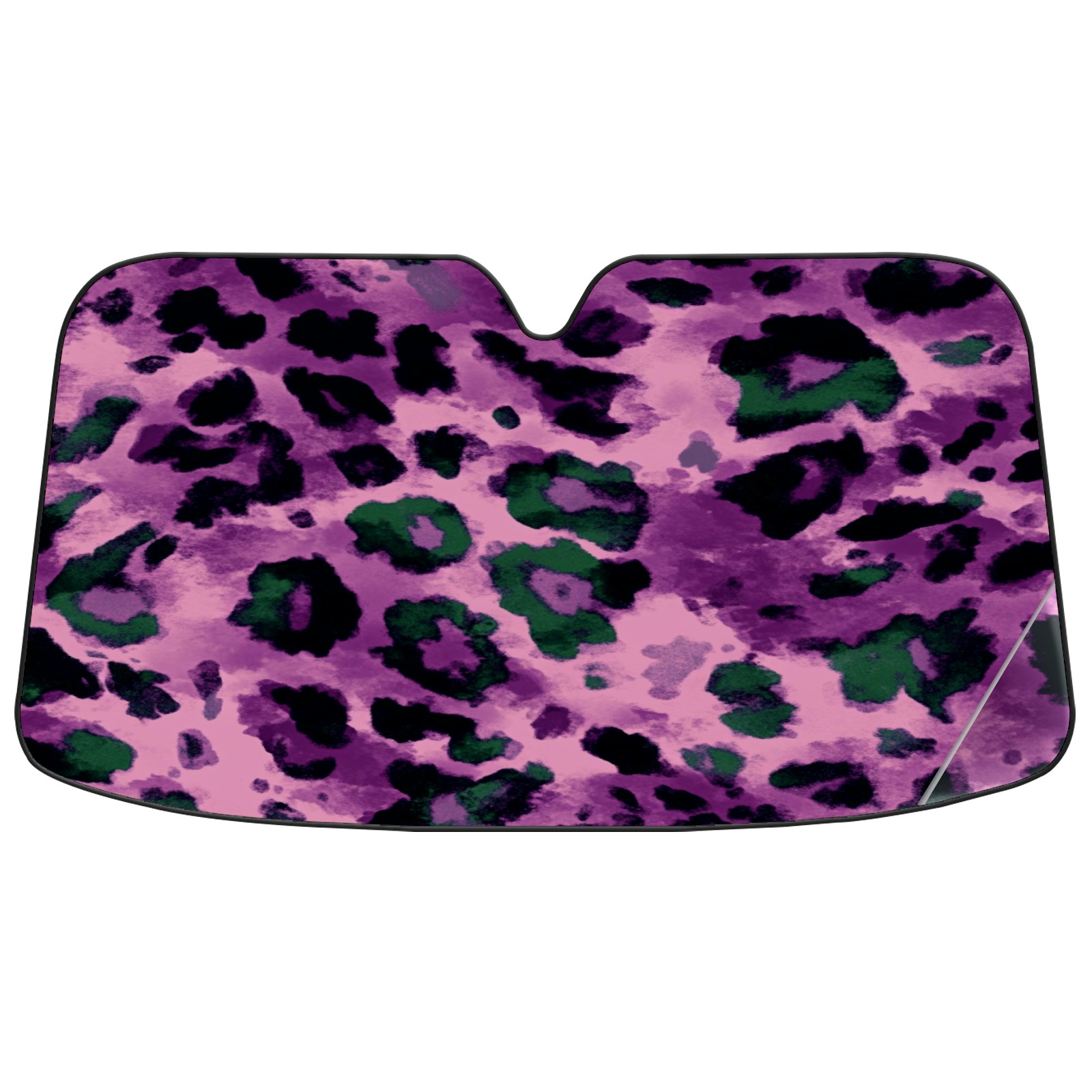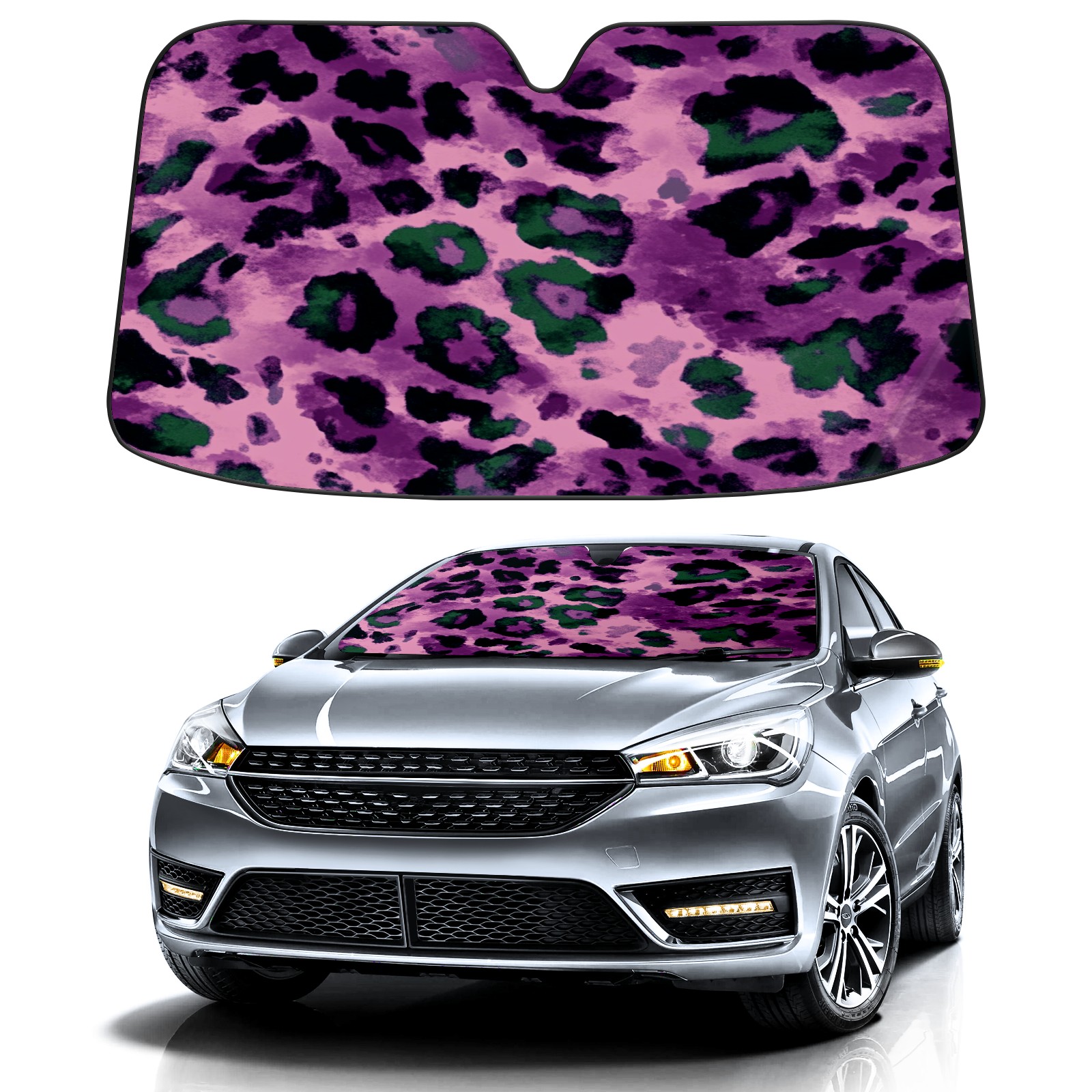 Car Windshield Sun Shade Foldable-Universal Fit Sunshade for Front Windows, UV Protection Heat Shield for Most Vehicles (55x30in)-Sun Visor Extender, Dashboard Cover(Purple And Green Leopard Print)