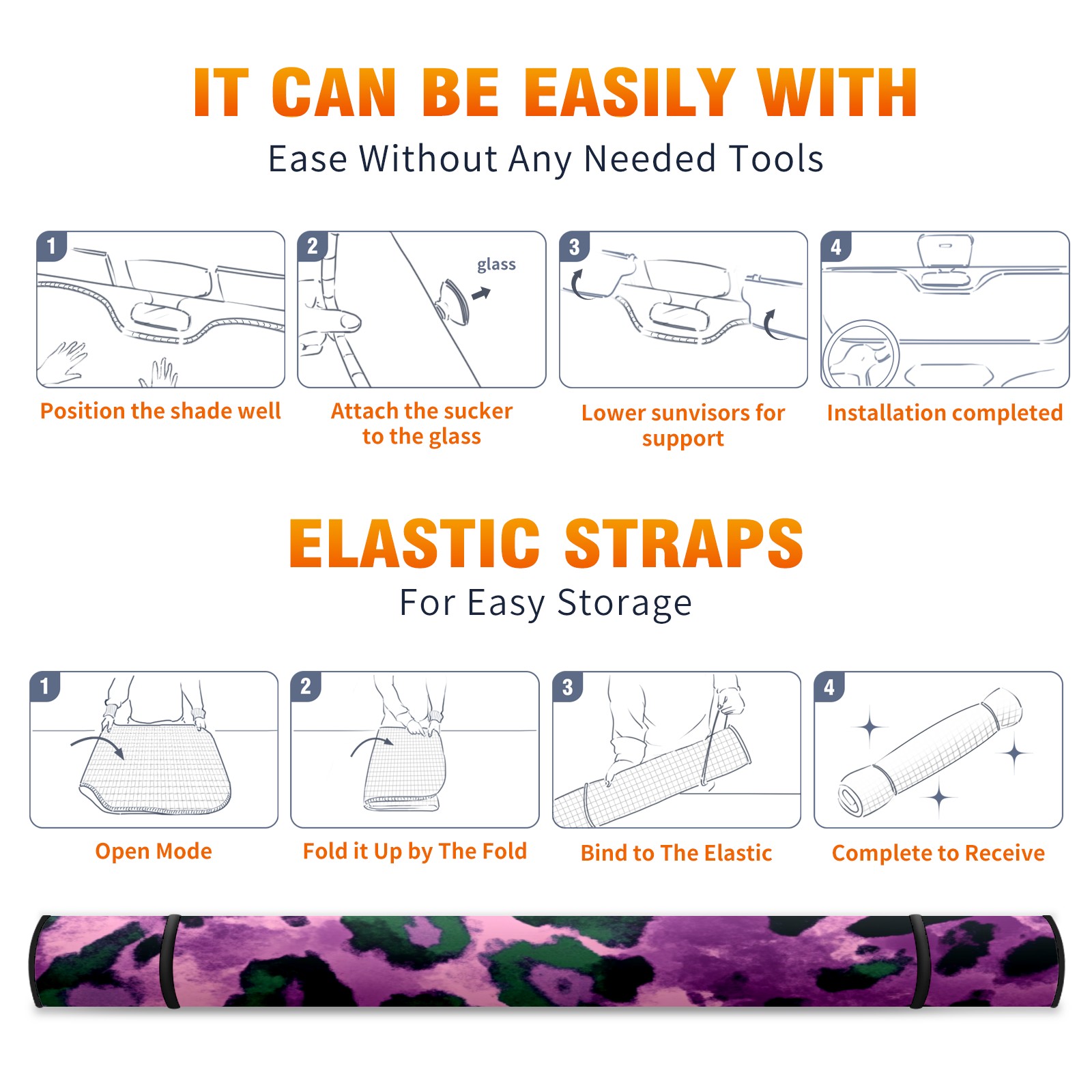 • <p>Stay cool and protect your car’s interior with our&nbsp;<strong>universal-fit windshield sun shade</strong>, designed to block&nbsp;<strong>99% of harmful UV rays</strong>&nbsp;and reduce cabin heat by up to&nbsp;<strong>60°F</strong>. Perfect for sedans, SUVs, and trucks, this&nbsp;<strong>foldable sunshade</strong>&nbsp;features a&nbsp;<strong>heavy-duty reflective surface</strong>&nbsp;that ensures maximum coverage for your&nbsp;<strong>car windshield</strong>.<br></p>