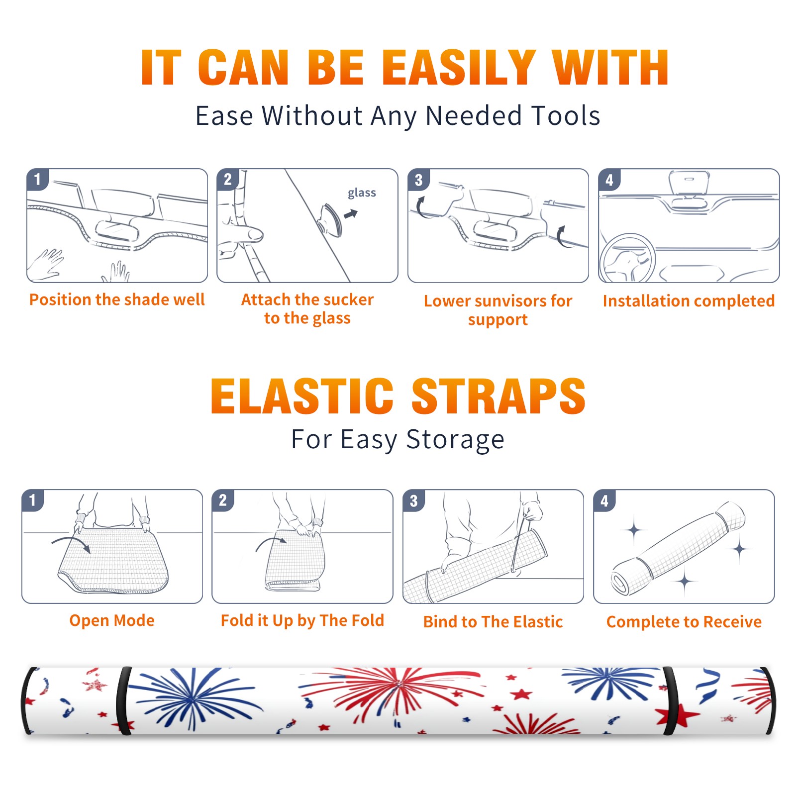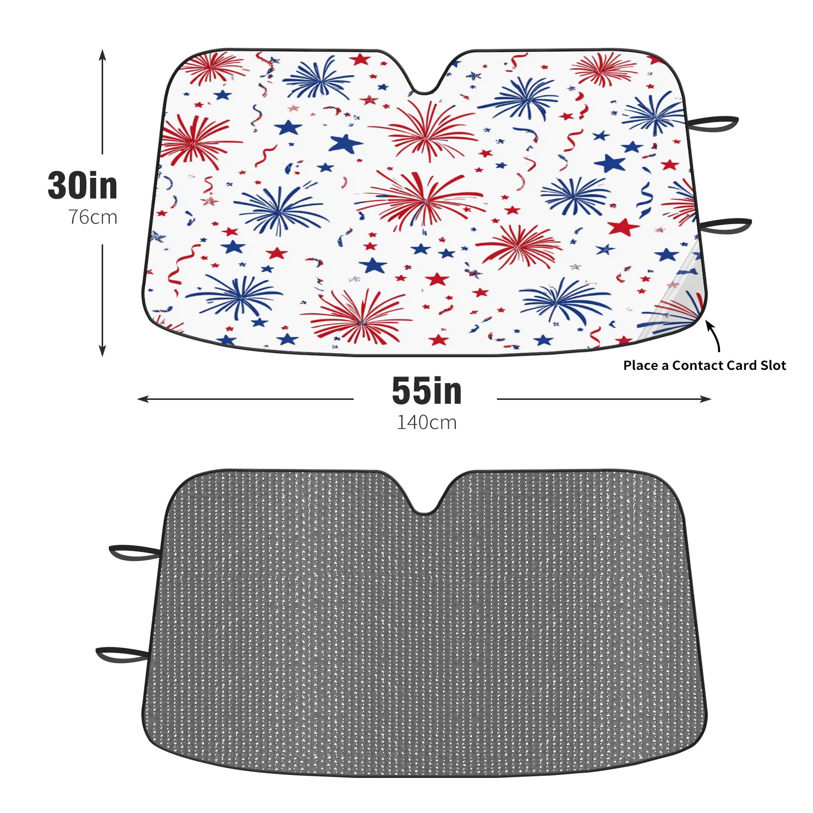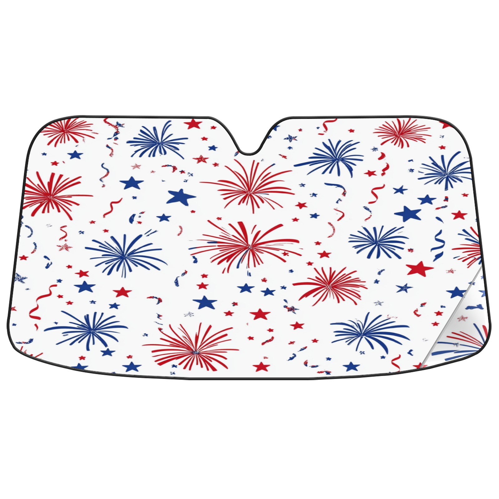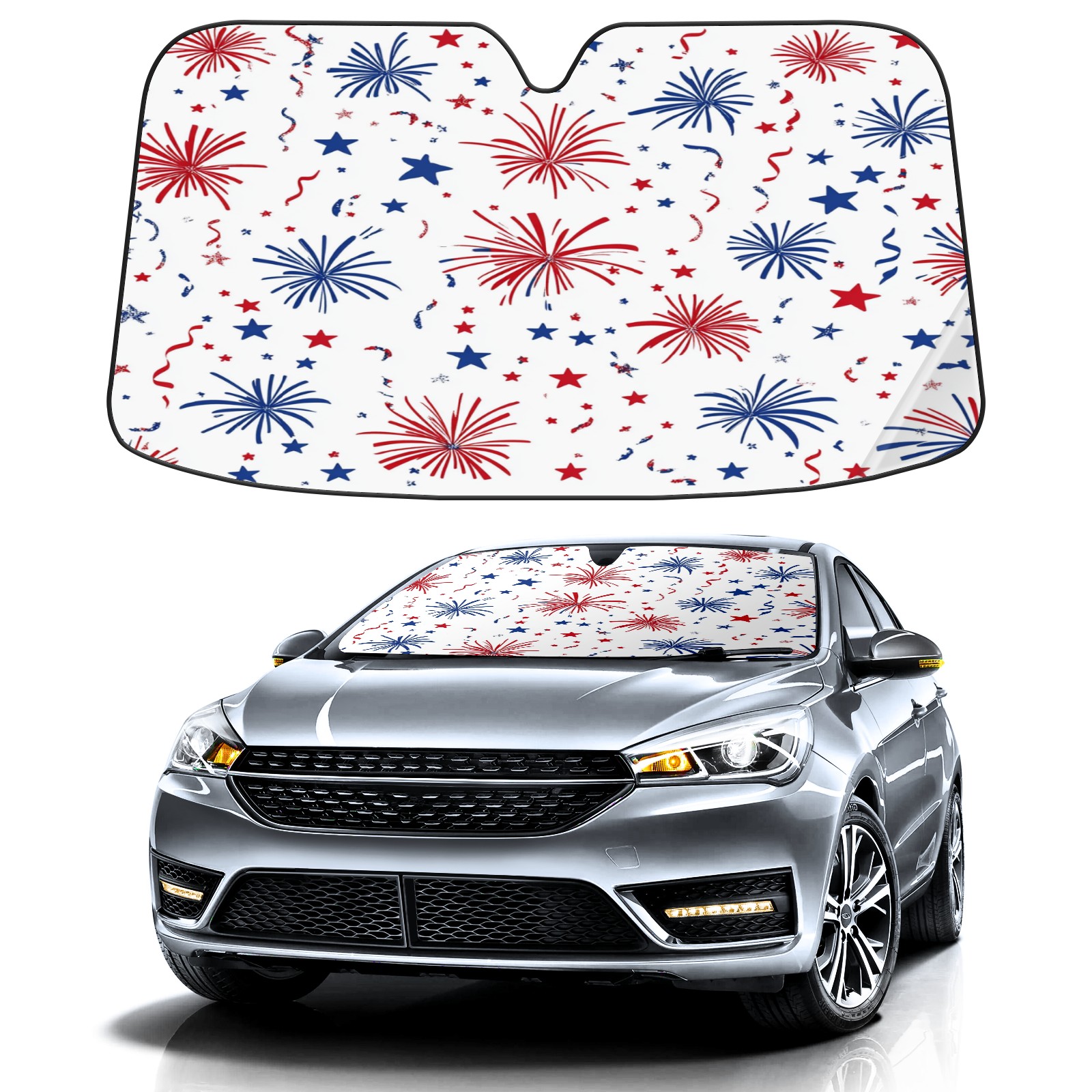 Car Windshield Sun Shade Foldable-Universal Fit Sunshade for Front Windows, UV Protection Heat Shield for Most Vehicles (55x30in)-Sun Visor Extender, Dashboard Cover(Red And Blue Firework)