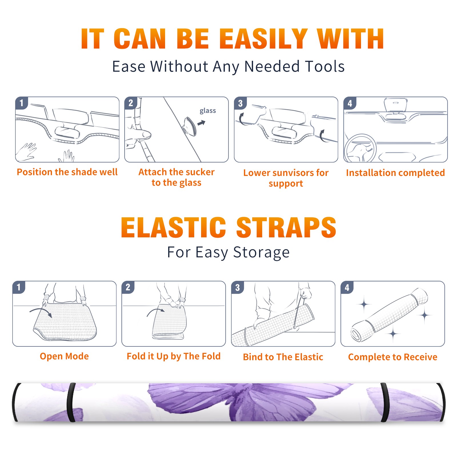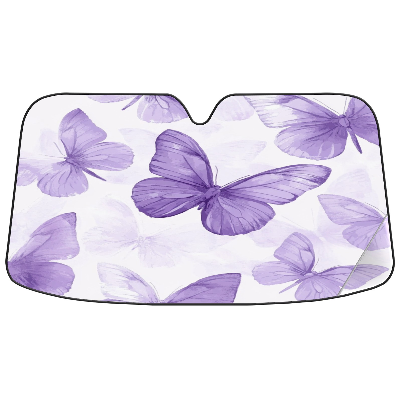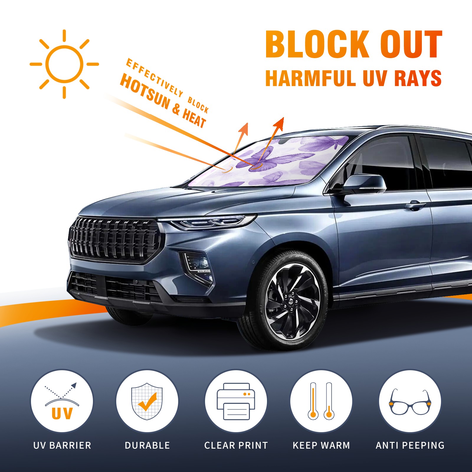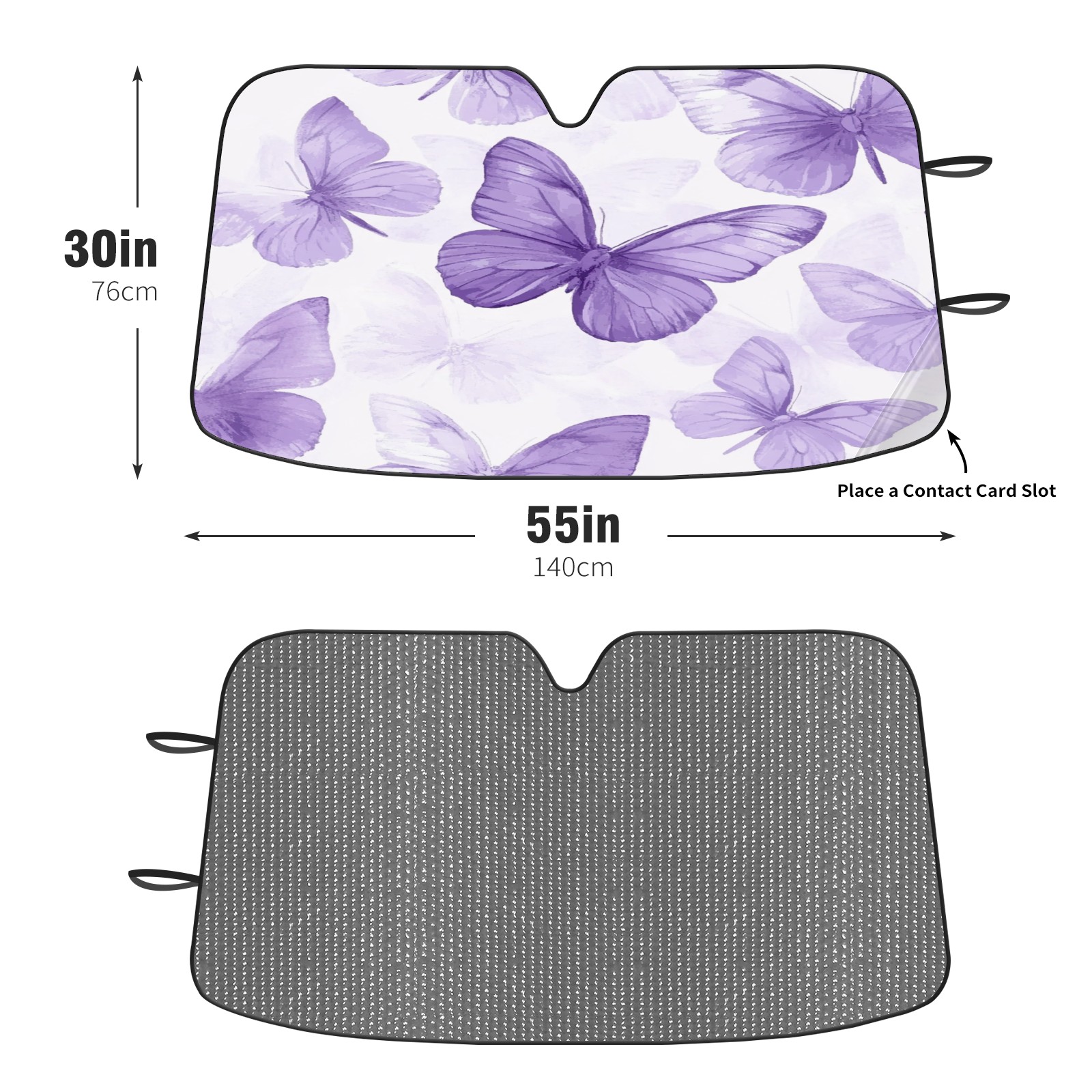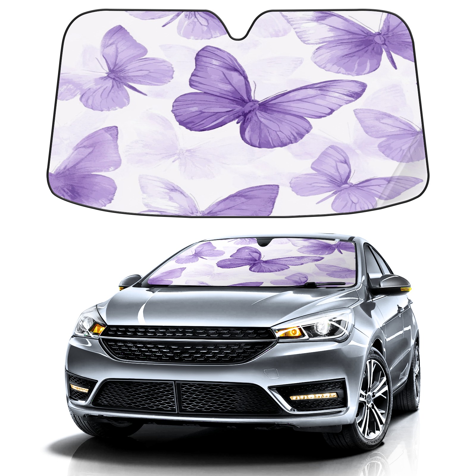 Car Windshield Sun Shade Foldable-Universal Fit Sunshade for Front Windows, UV Protection Heat Shield for Most Vehicles (55x30in)-Sun Visor Extender, Dashboard Cover(Purple Butterflies)