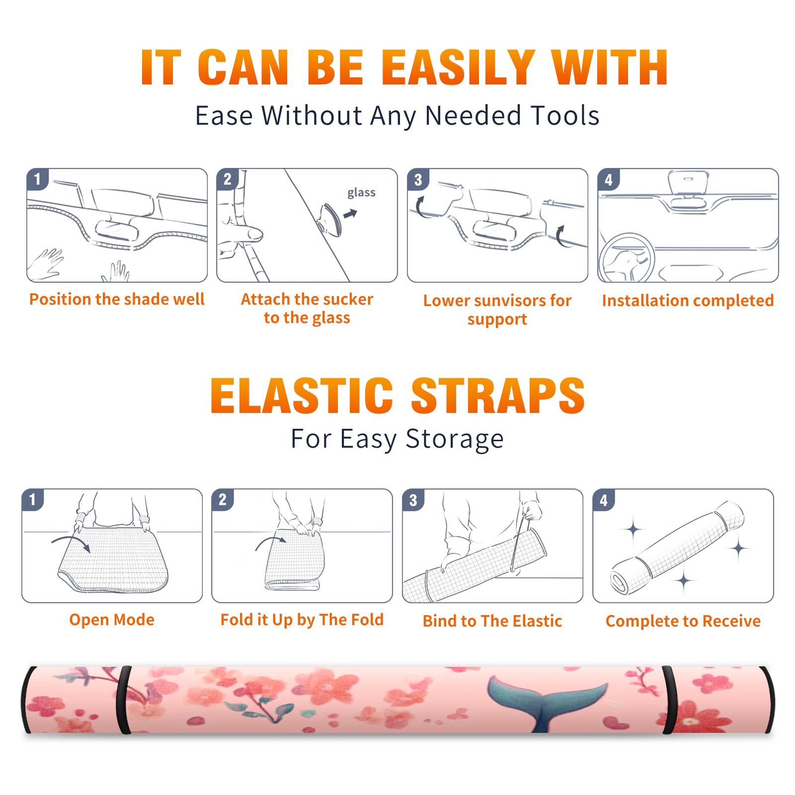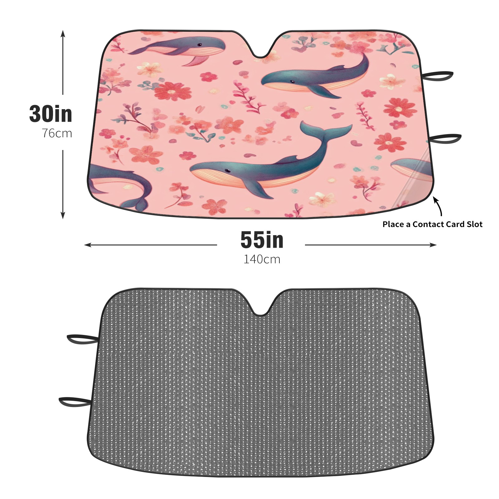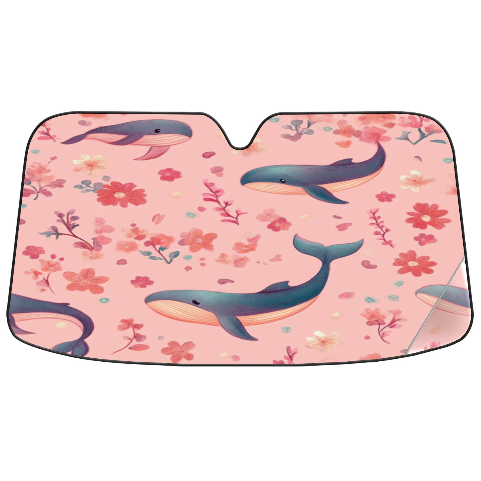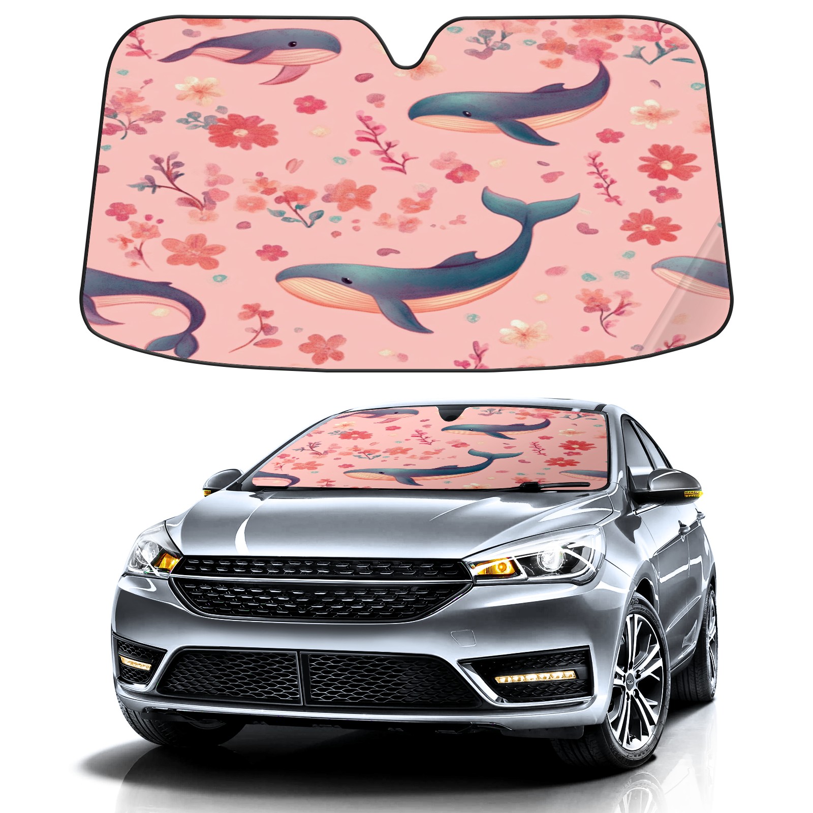 Car Windshield Sun Shade Foldable-Universal Fit Sunshade for Front Windows, UV Protection Heat Shield for Most Vehicles (55x30in)-Sun Visor Extender, Dashboard Cover(Pastel-pink Whale)