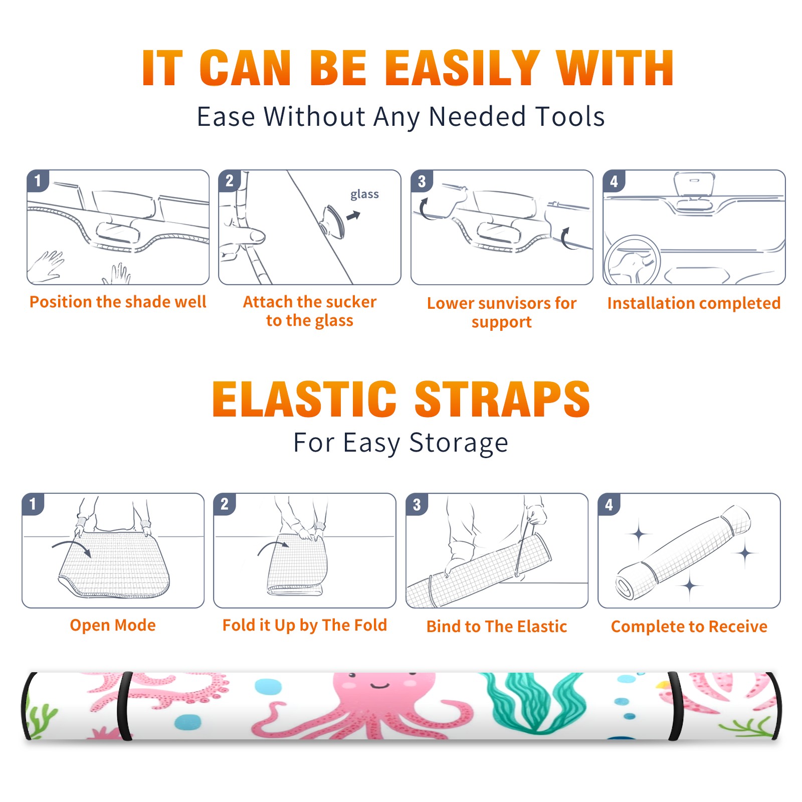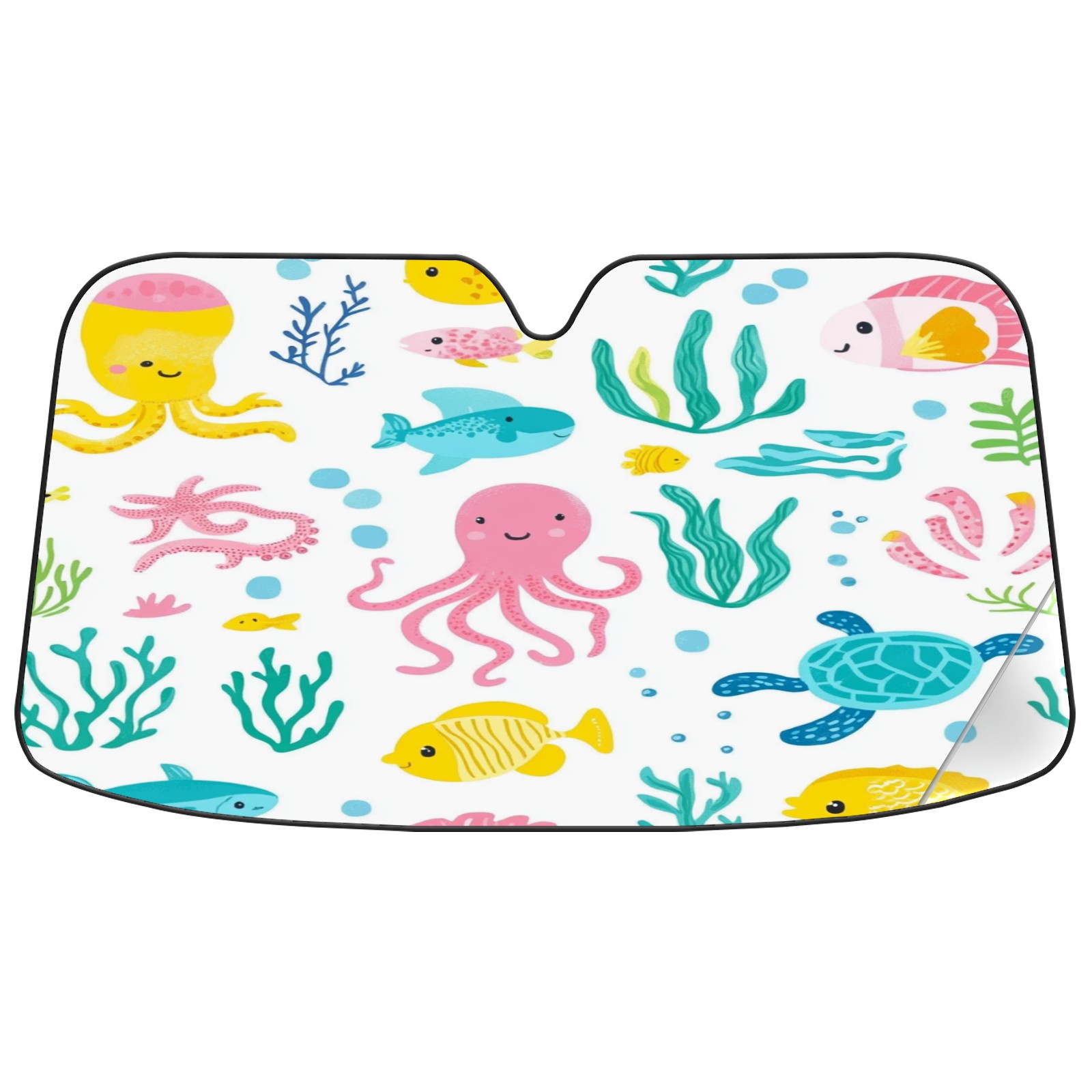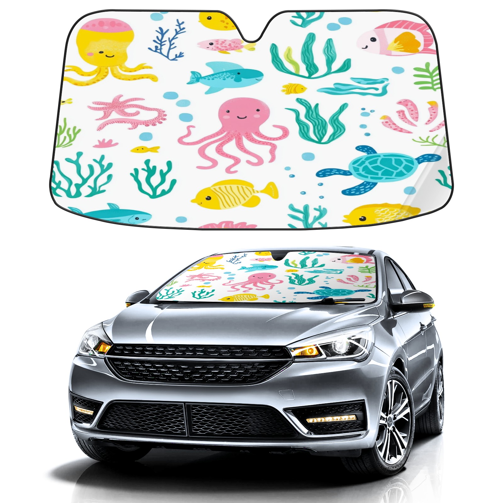 Car Windshield Sun Shade Foldable-Universal Fit Sunshade for Front Windows, UV Protection Heat Shield for Most Vehicles (55x30in)-Sun Visor Extender, Dashboard Cover(Sea Elements)
