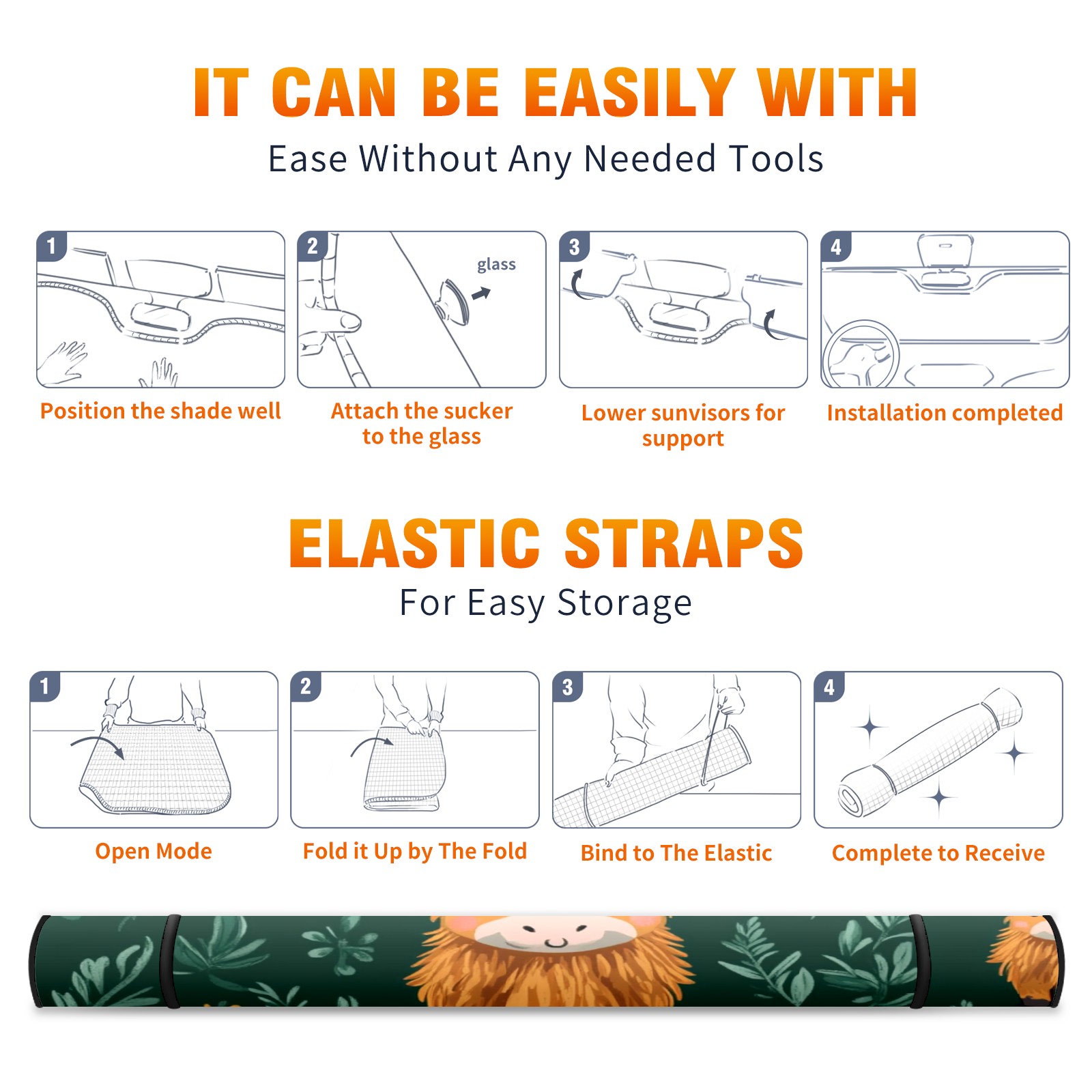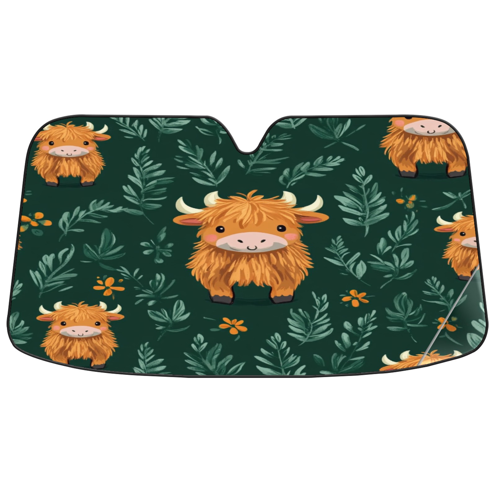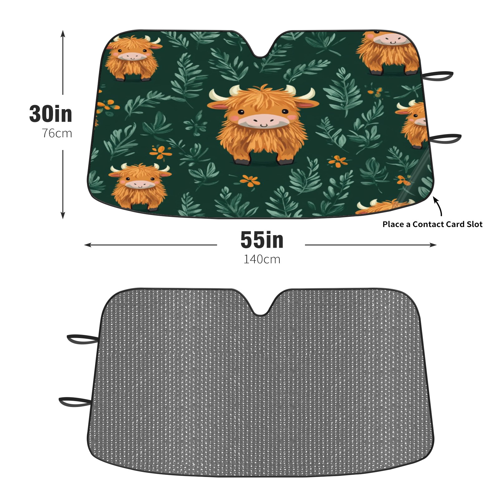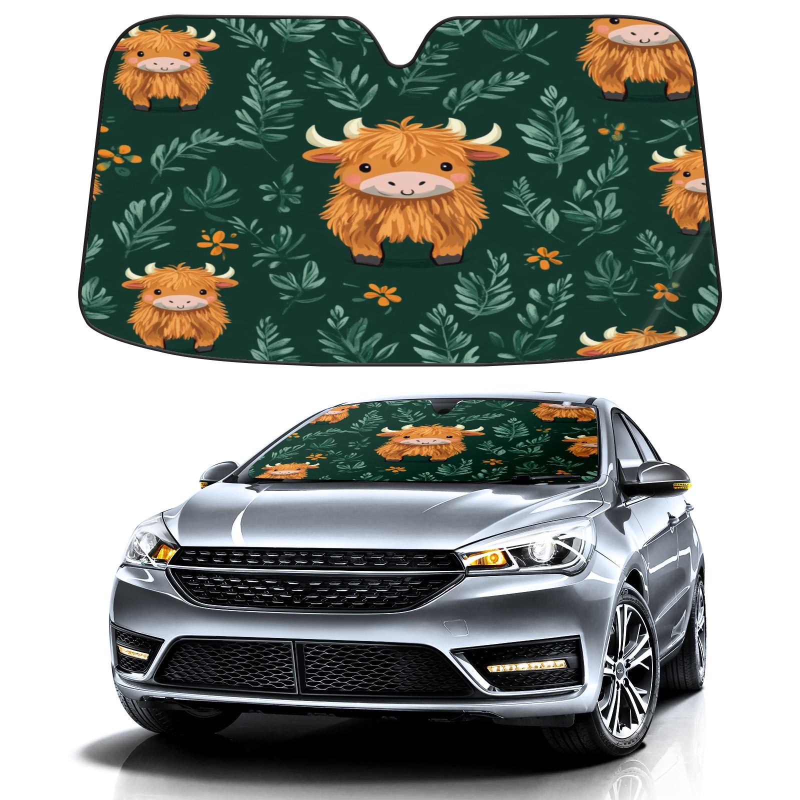 Car Windshield Sun Shade Foldable-Universal Fit Sunshade for Front Windows, UV Protection Heat Shield for Most Vehicles (55x30in)-Sun Visor Extender, Dashboard Cover(Highland Cow)