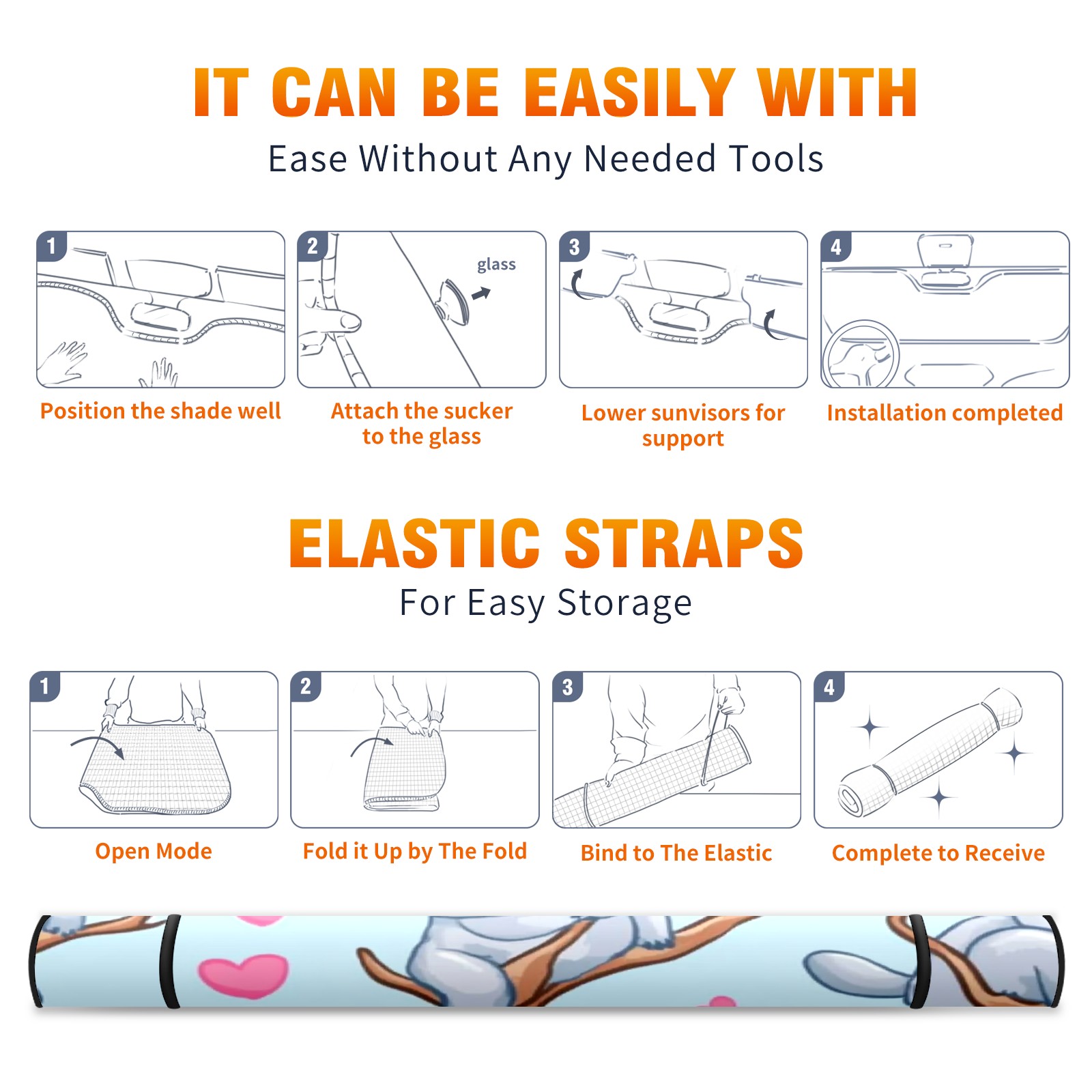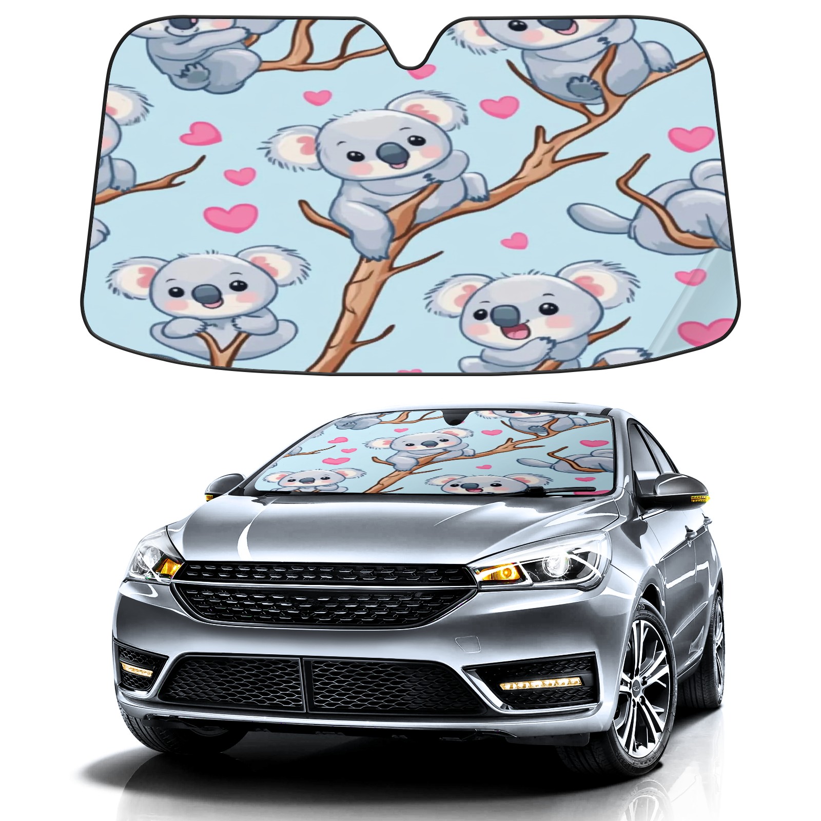 Car Windshield Sun Shade Foldable-Universal Fit Sunshade for Front Windows, UV Protection Heat Shield for Most Vehicles (55x30in)-Sun Visor Extender, Dashboard Cover(Koala)