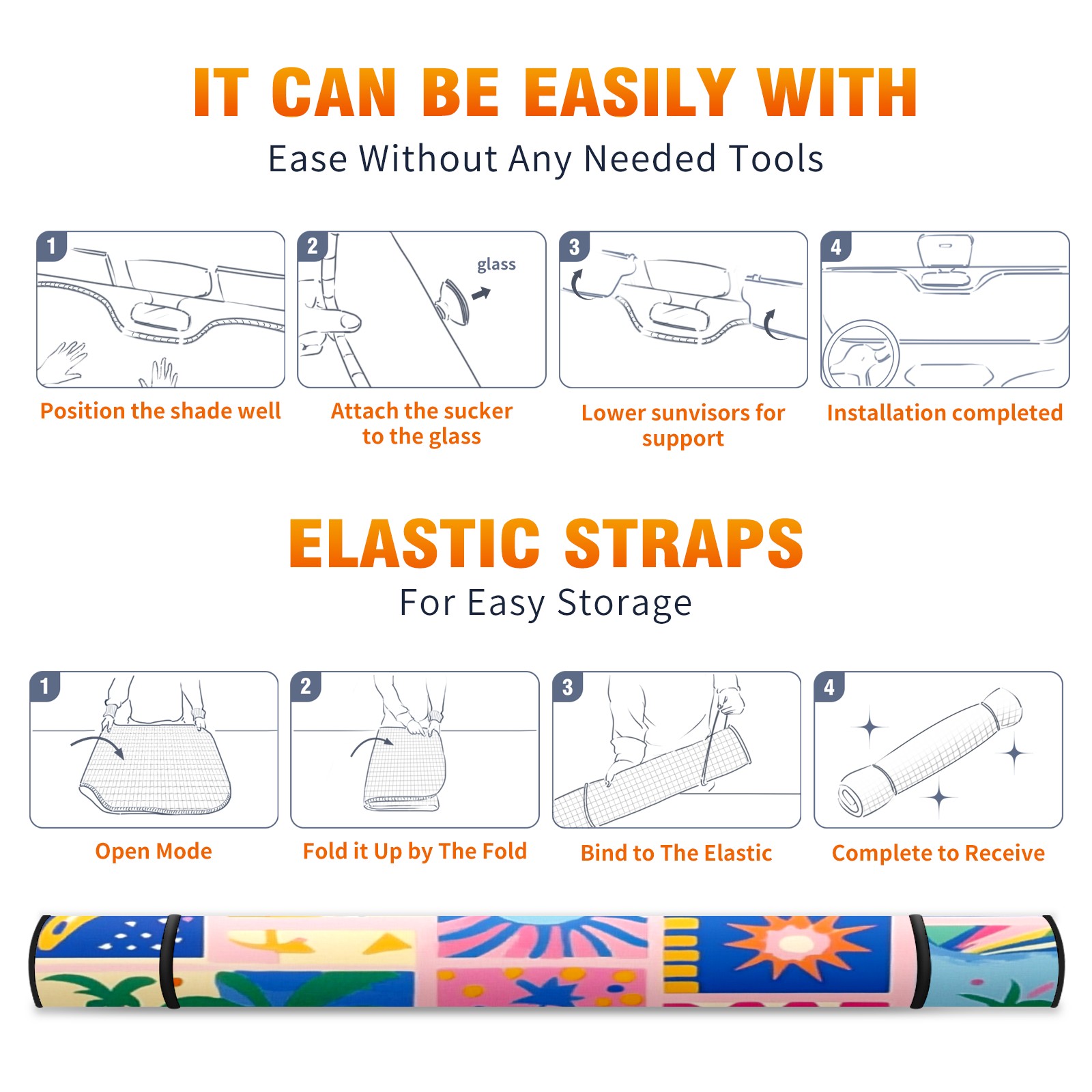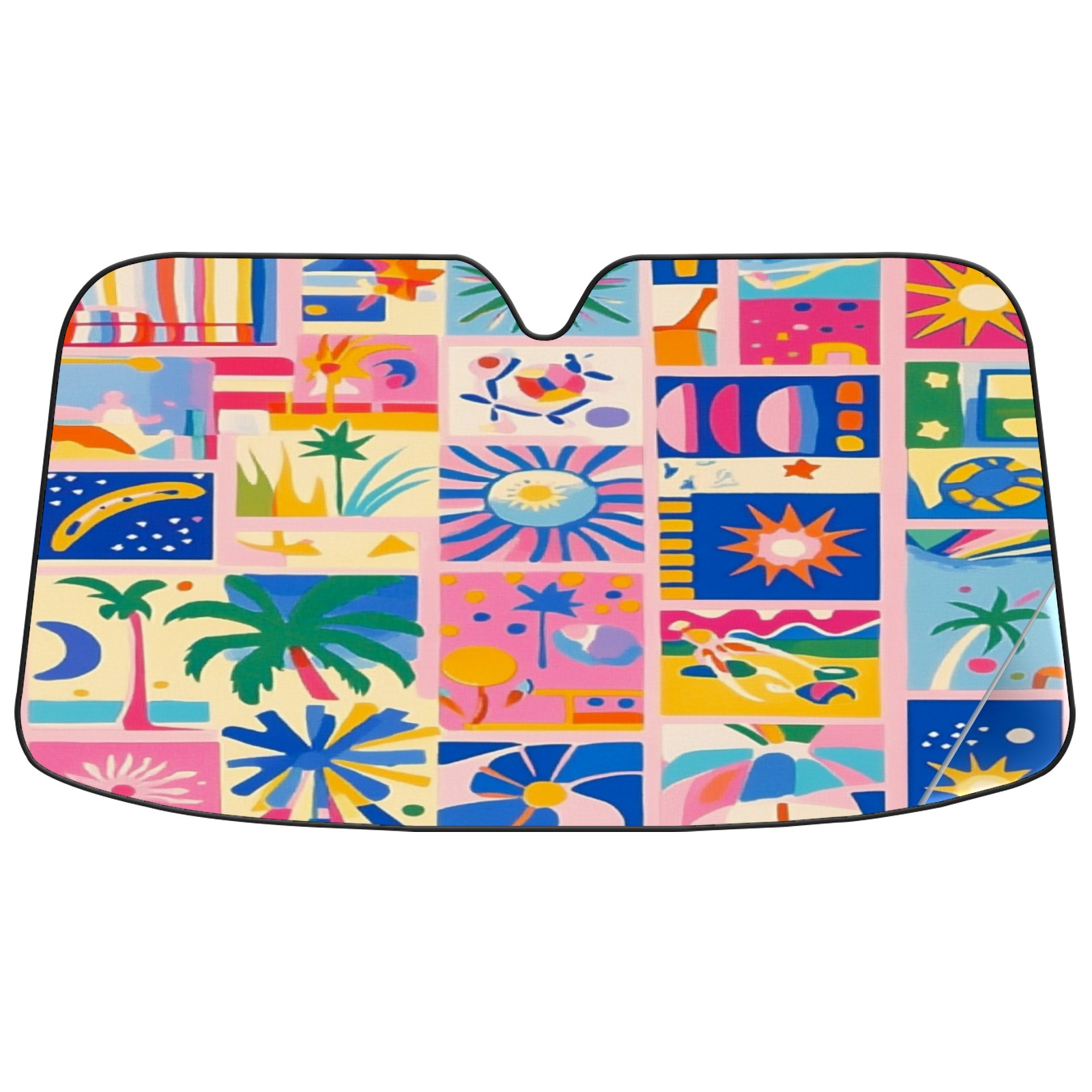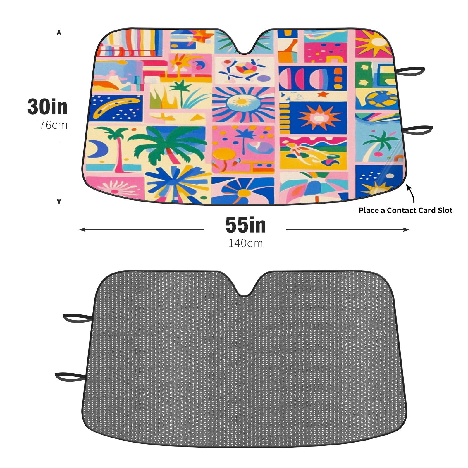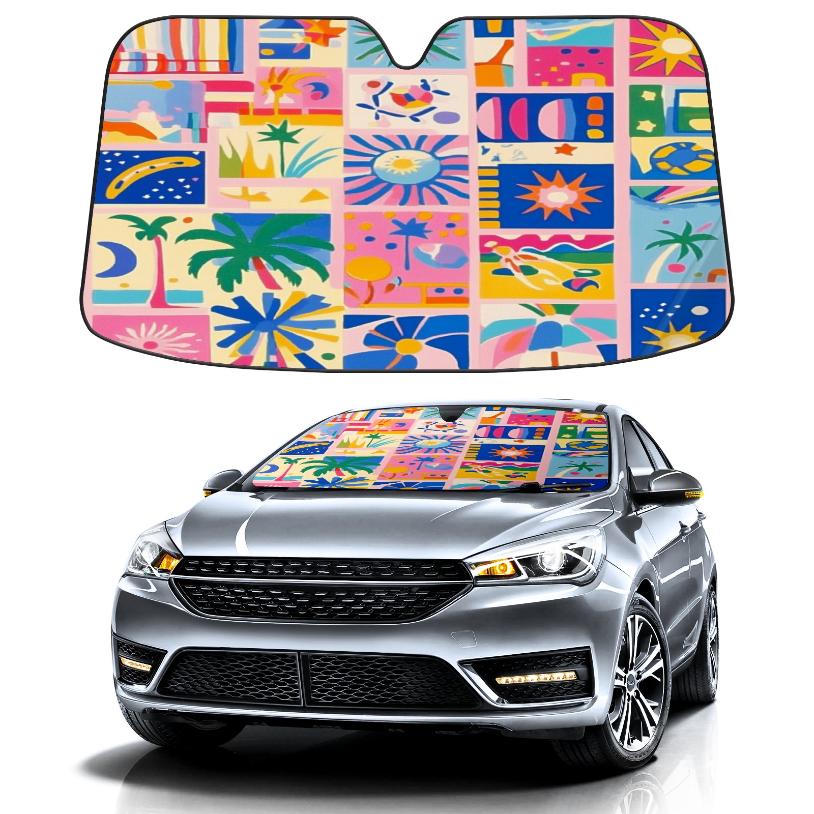 Car Windshield Sun Shade Foldable-Universal Fit Sunshade for Front Windows, UV Protection Heat Shield for Most Vehicles (55x30in)-Sun Visor Extender, Dashboard Cover(Vibrant Pattern)