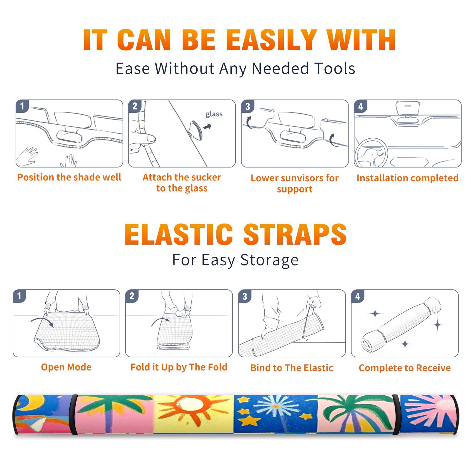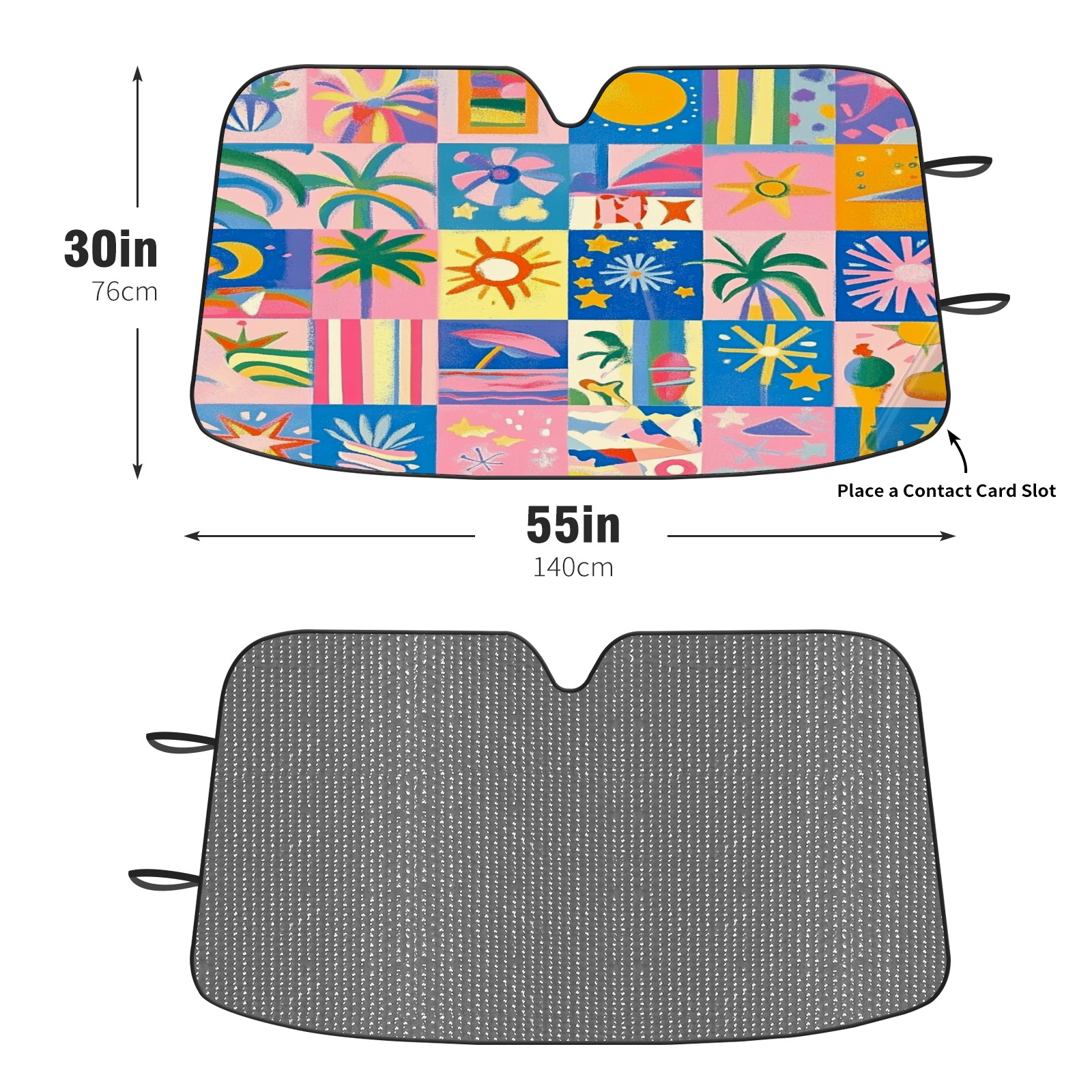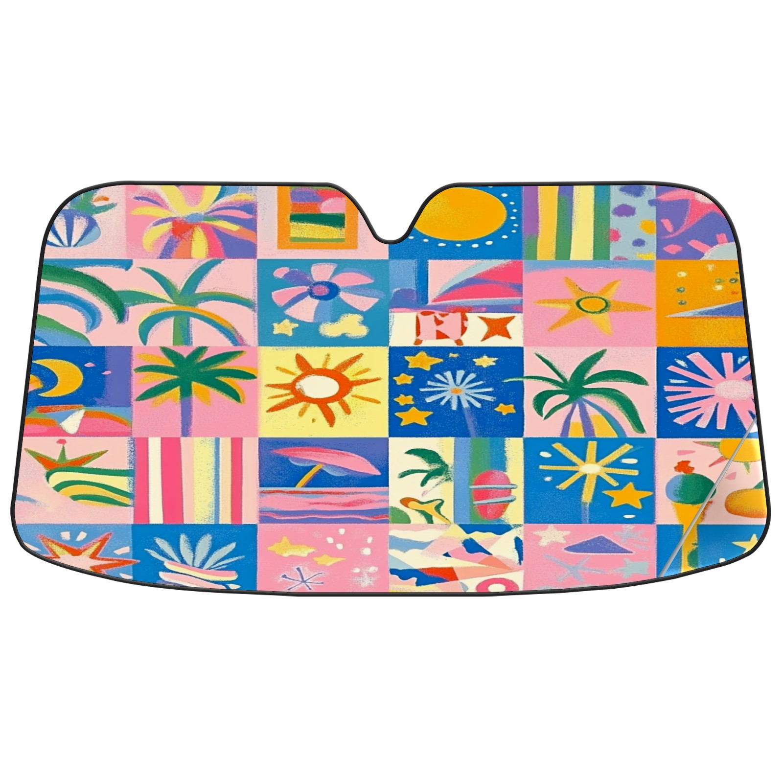 Car Windshield Sun Shade Foldable-Universal Fit Sunshade for Front Windows, UV Protection Heat Shield for Most Vehicles (55x30in)-Sun Visor Extender, Dashboard Cover(Vibrant And Colorful)