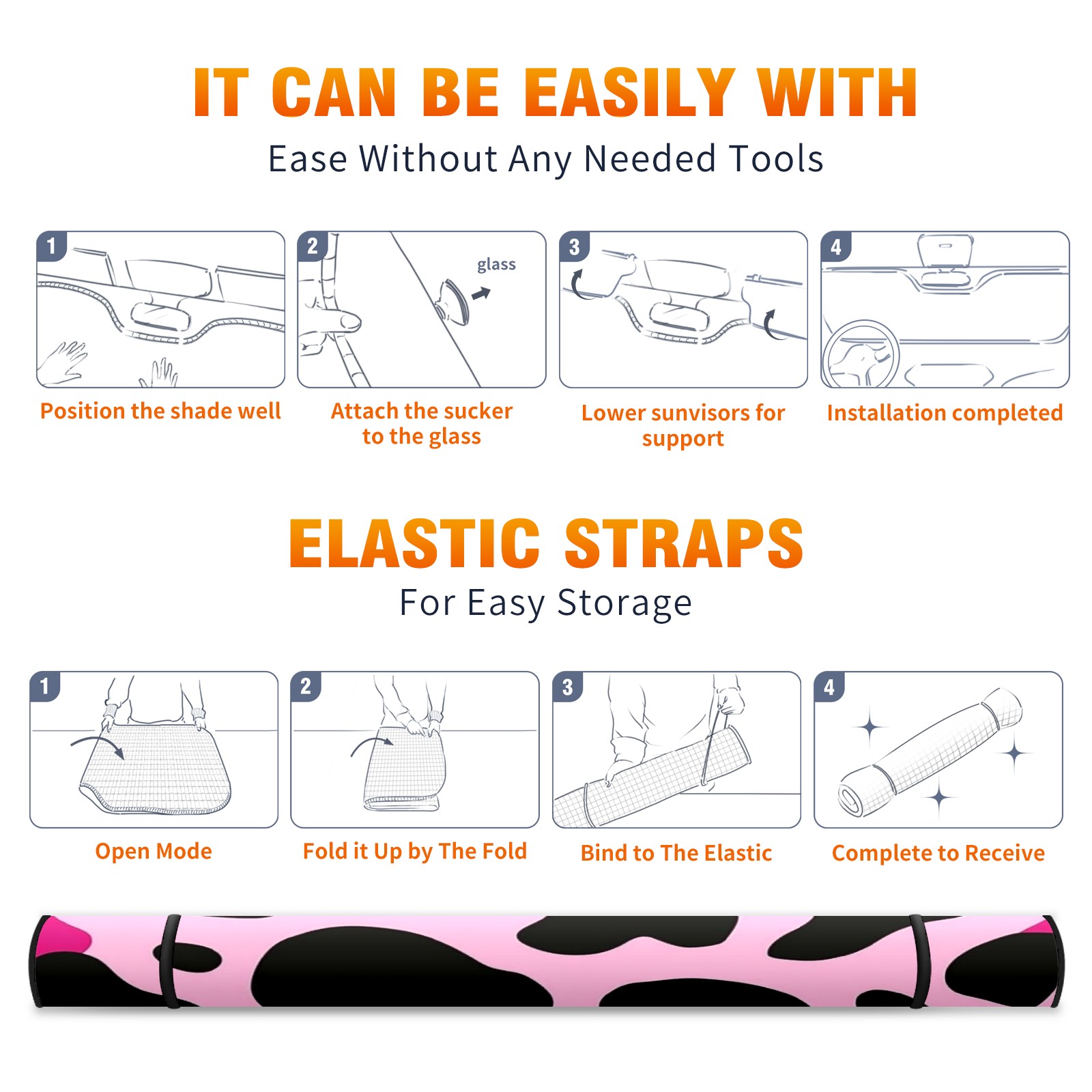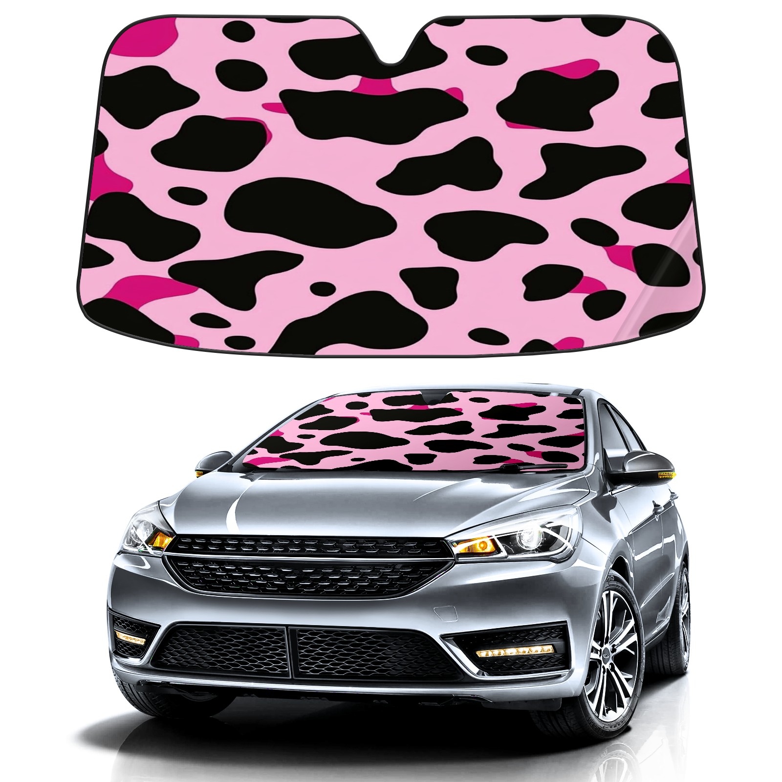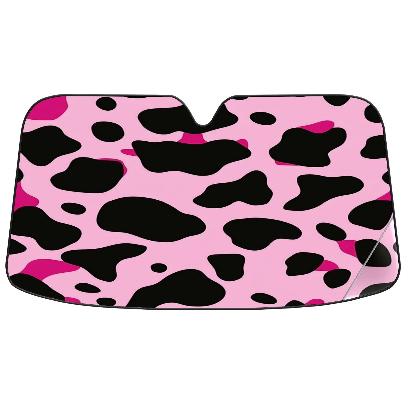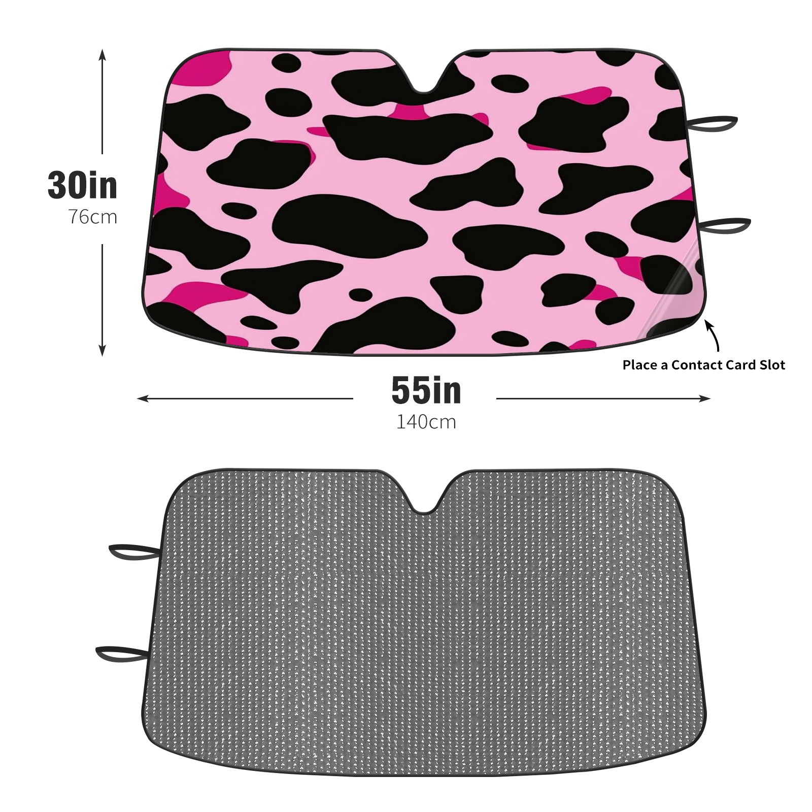 Car Windshield Sun Shade Foldable-Universal Fit Sunshade for Front Windows, UV Protection Heat Shield for Most Vehicles (55x30in)-Sun Visor Extender, Dashboard Cover(Pink And Black Cow Print Pattern)