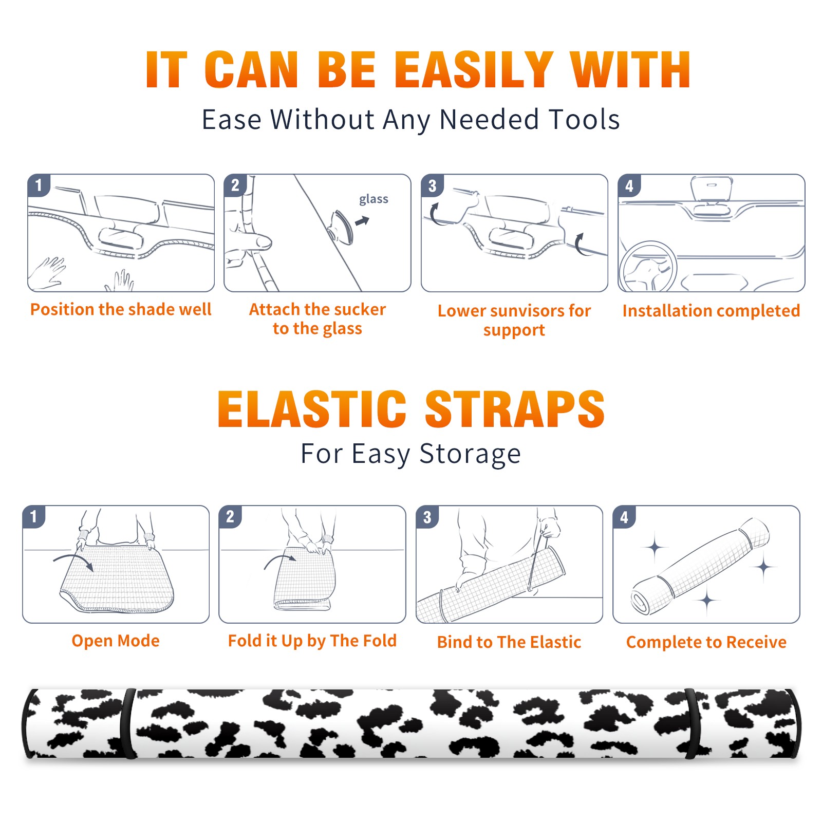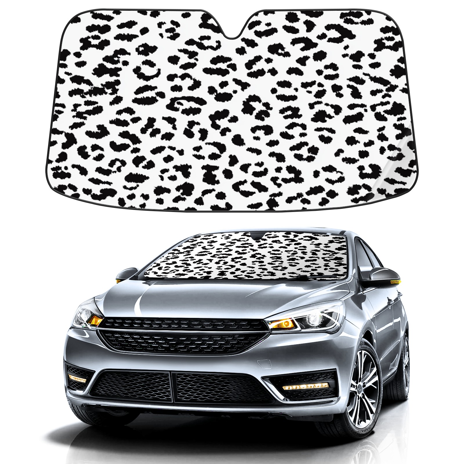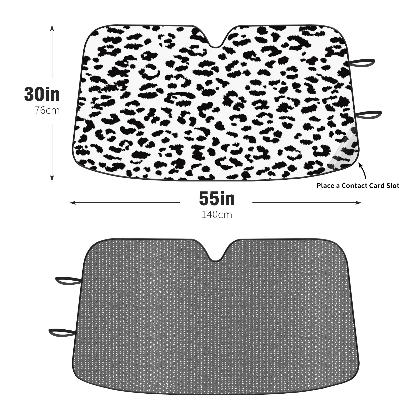 Car Windshield Sun Shade Foldable-Universal Fit Sunshade for Front Windows, UV Protection Heat Shield for Most Vehicles (55x30in)-Sun Visor Extender, Dashboard Cover(Leopard Print Pattern)