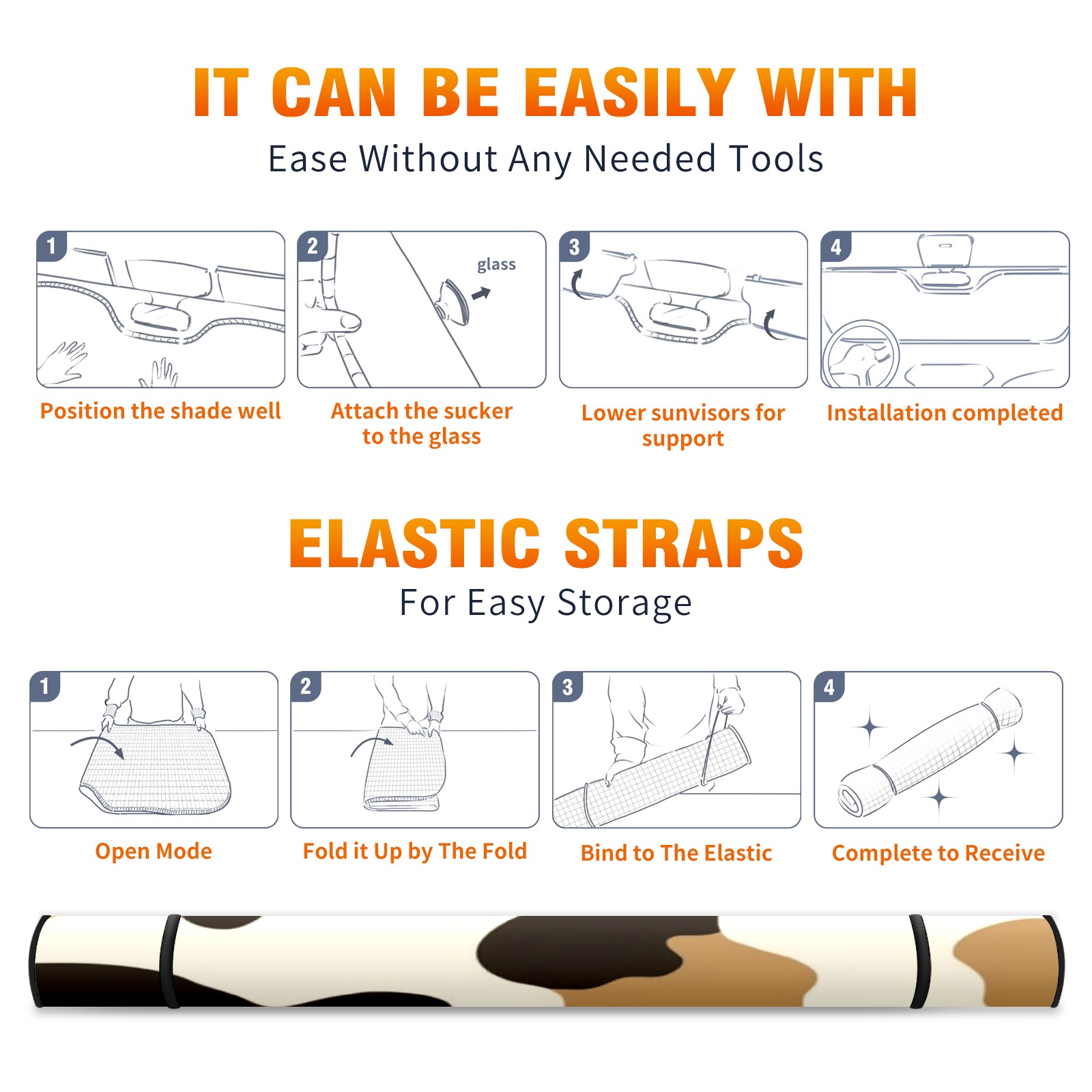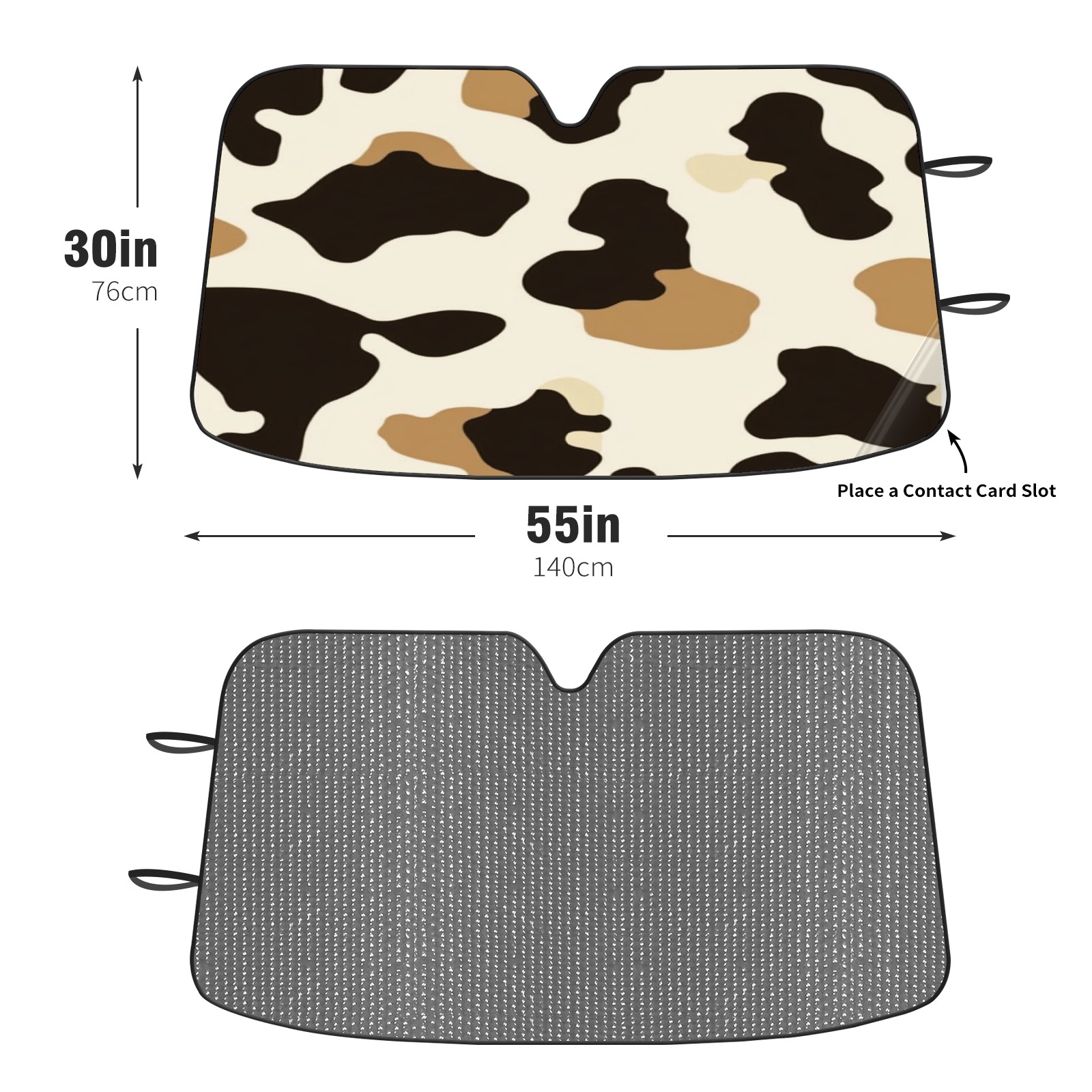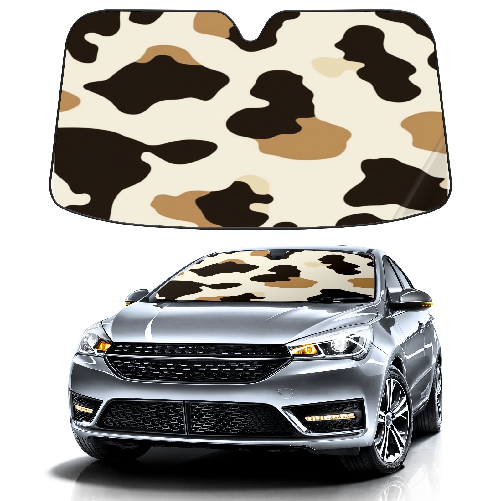 Car Windshield Sun Shade Foldable-Universal Fit Sunshade for Front Windows, UV Protection Heat Shield for Most Vehicles (55x30in)-Sun Visor Extender, Dashboard Cover(Cow Print)