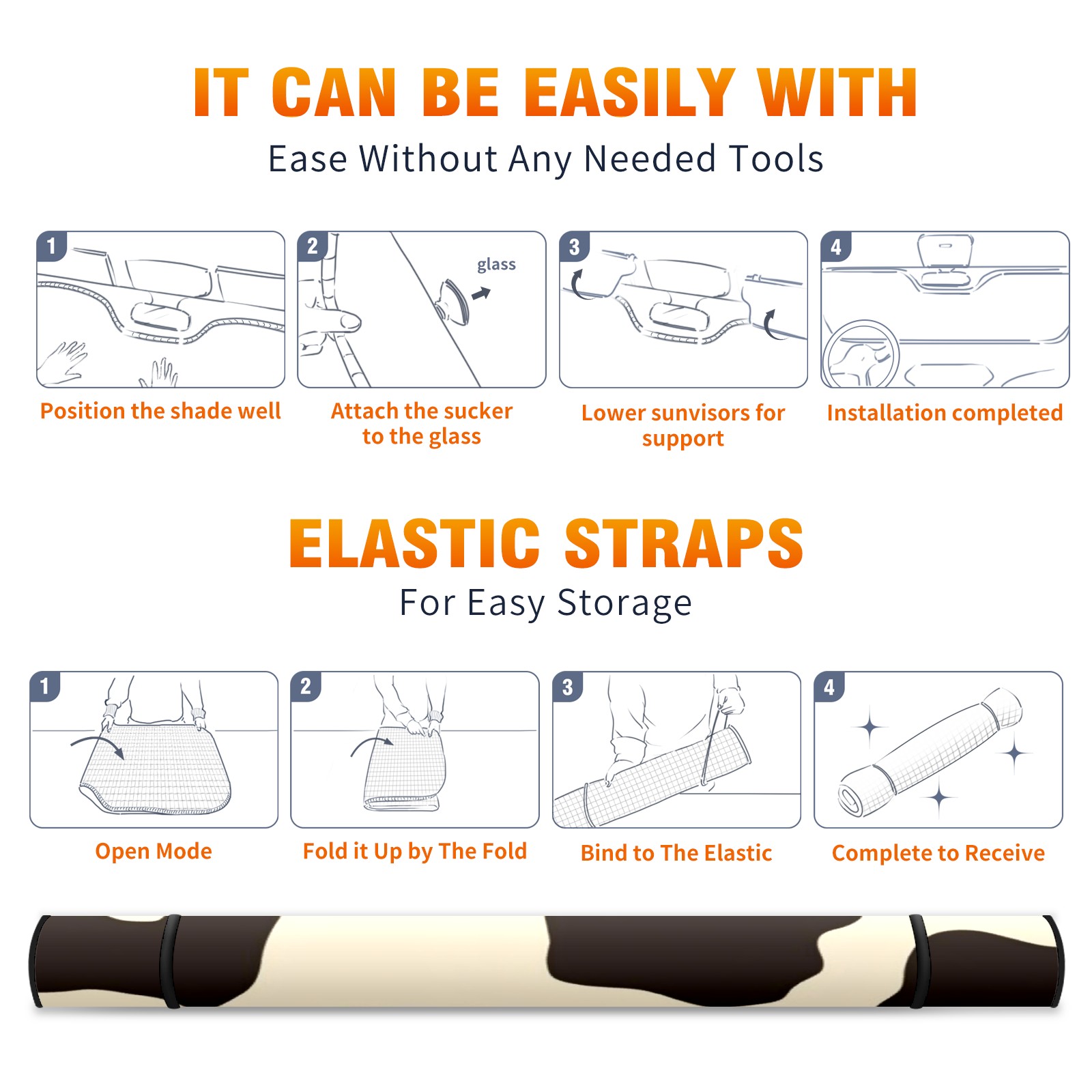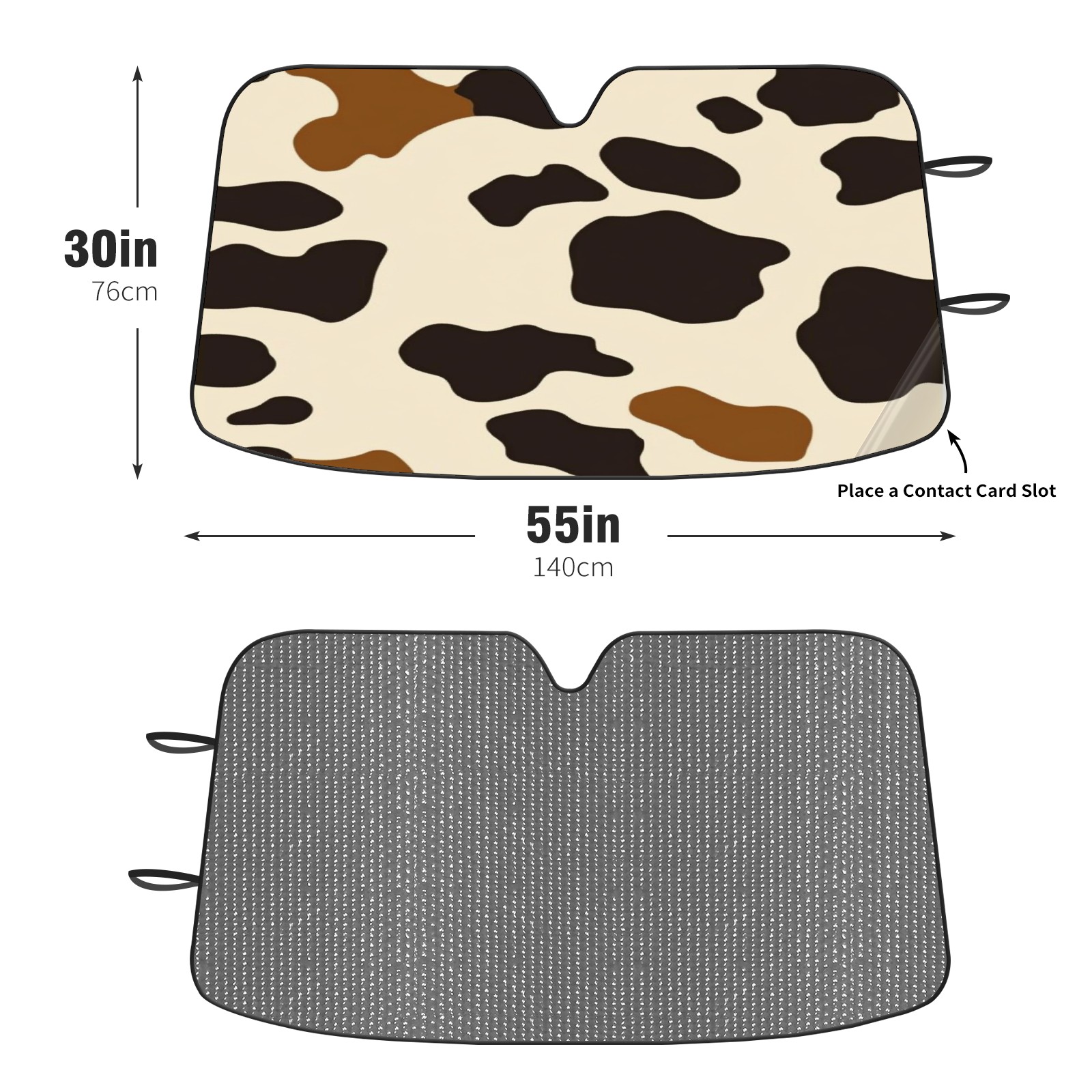 Car Windshield Sun Shade Foldable-Universal Fit Sunshade for Front Windows, UV Protection Heat Shield for Most Vehicles (55x30in)-Sun Visor Extender, Dashboard Cover(Cow Print Pattern)