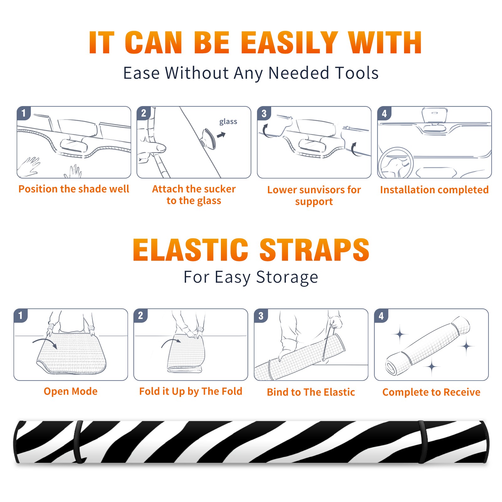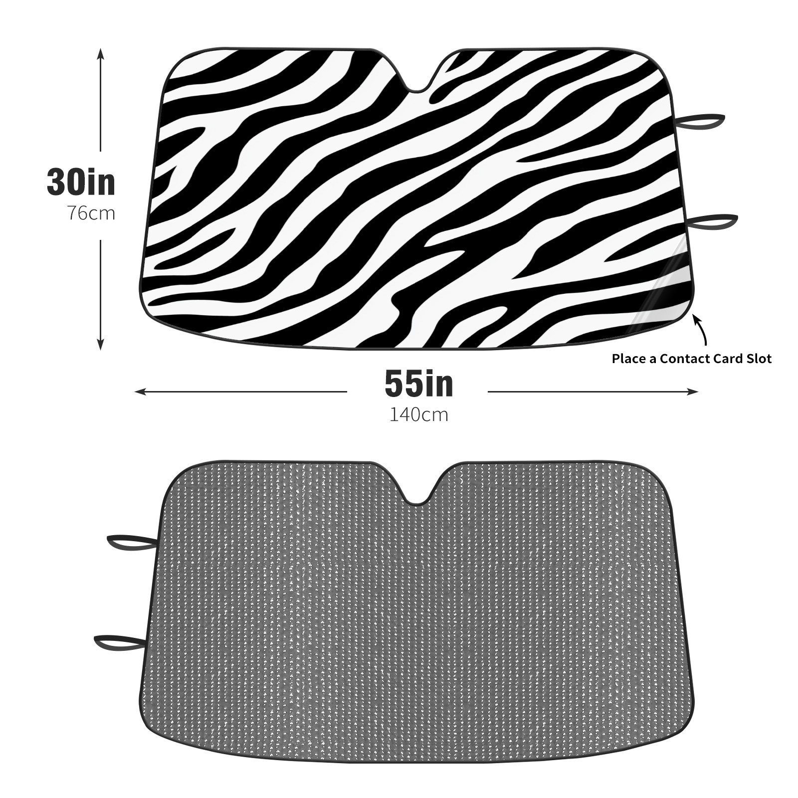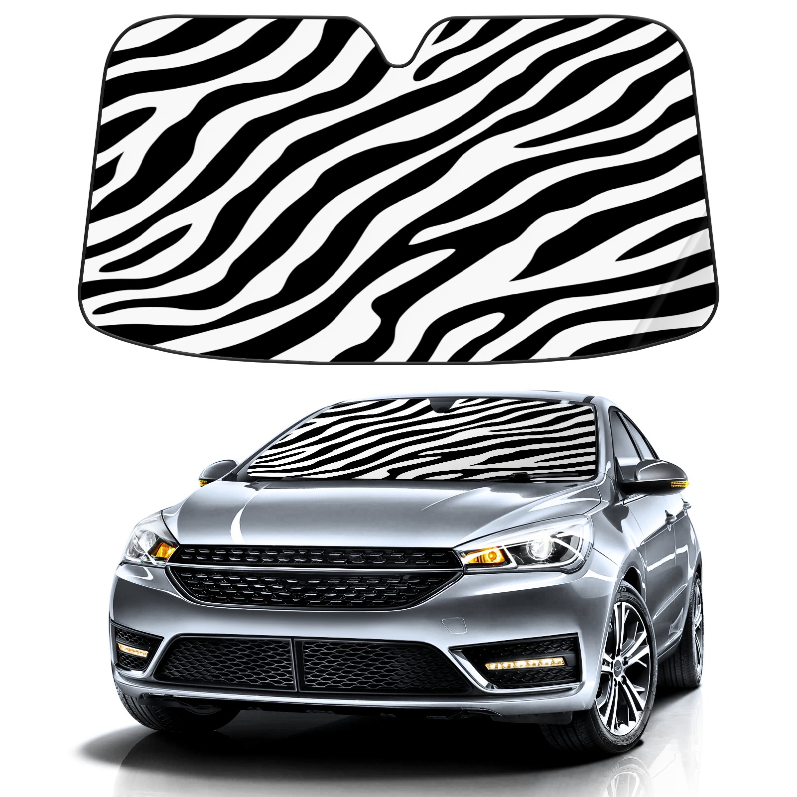Car Windshield Sun Shade Foldable-Universal Fit Sunshade for Front Windows, UV Protection Heat Shield for Most Vehicles (55x30in)-Sun Visor Extender, Dashboard Cover(Black And White Zebra Print)