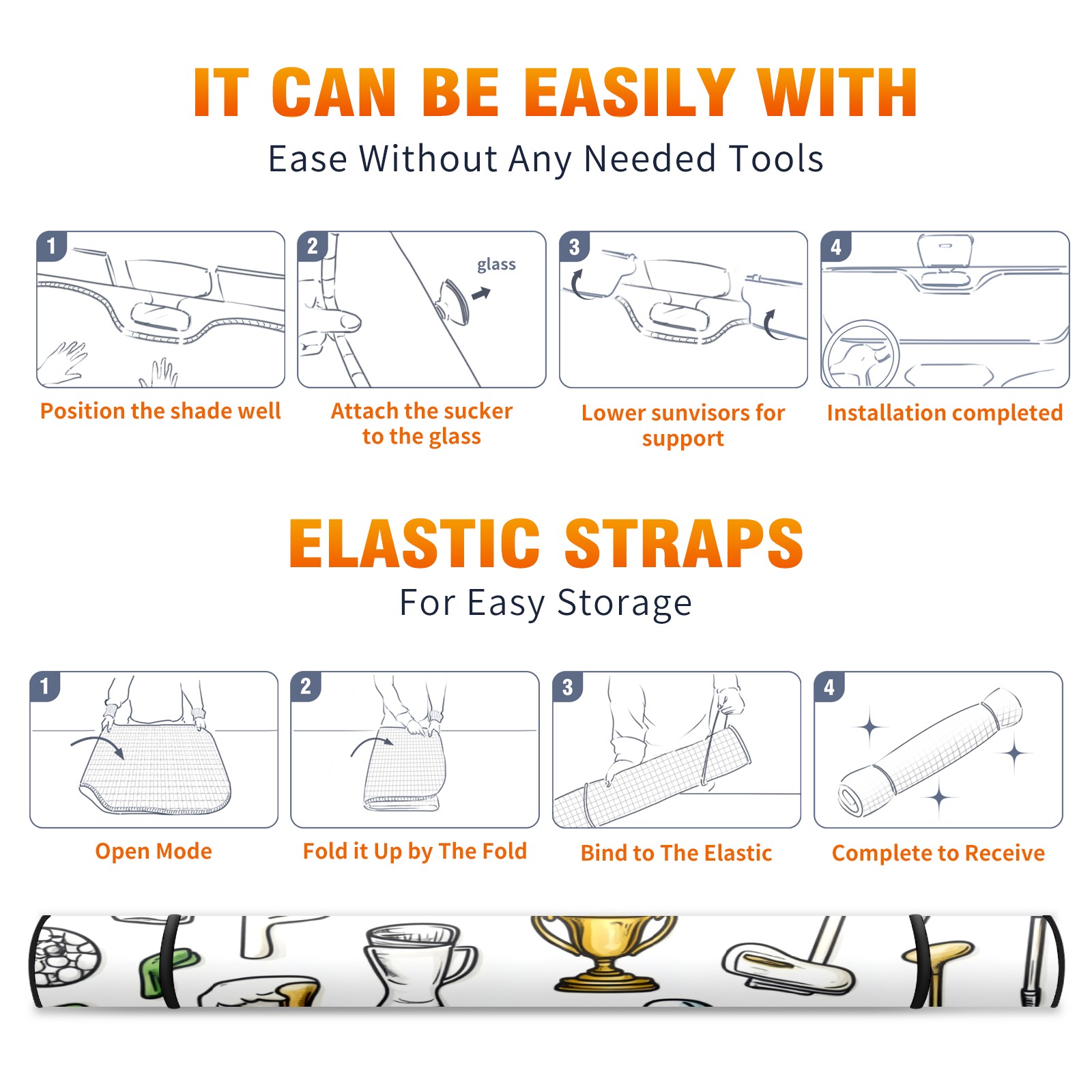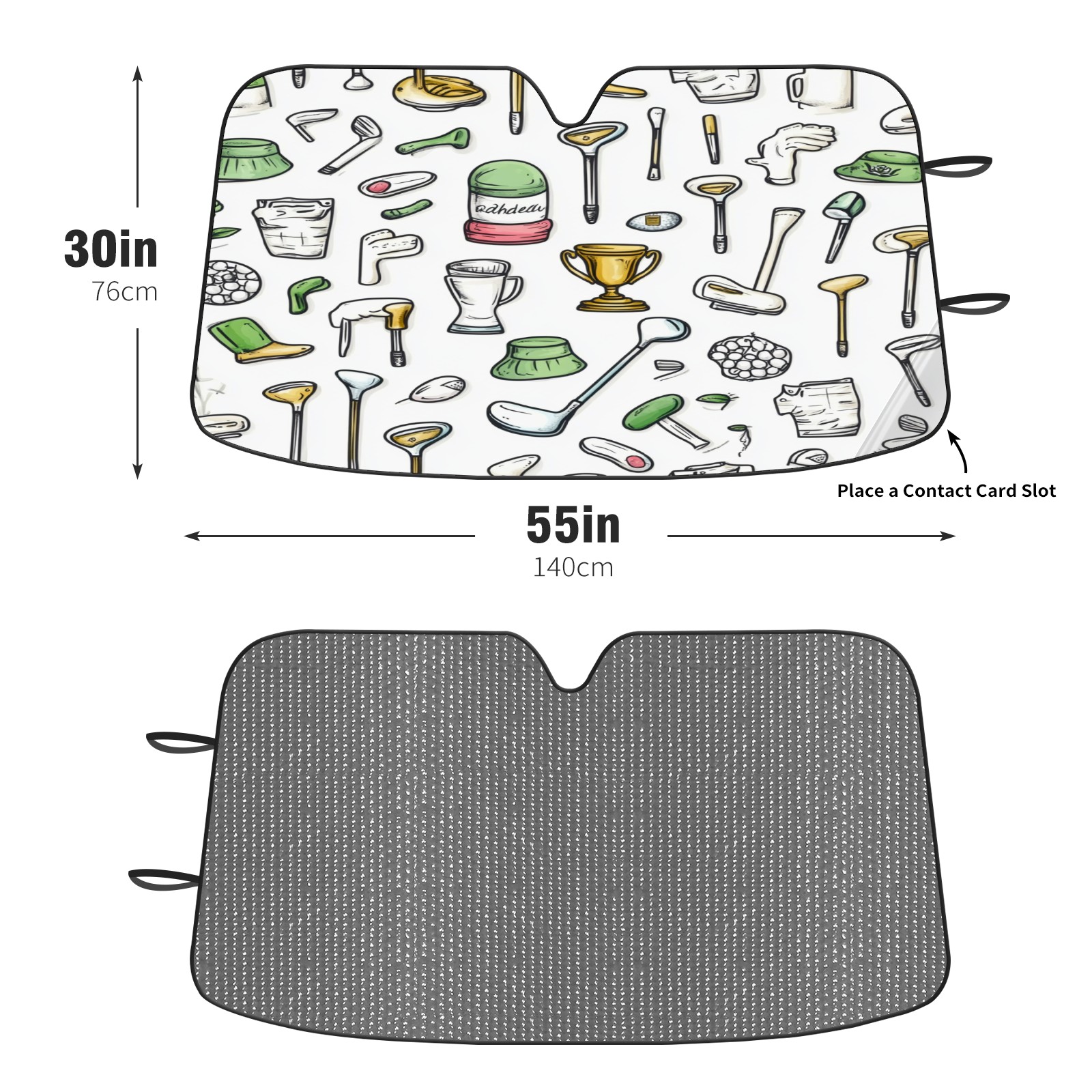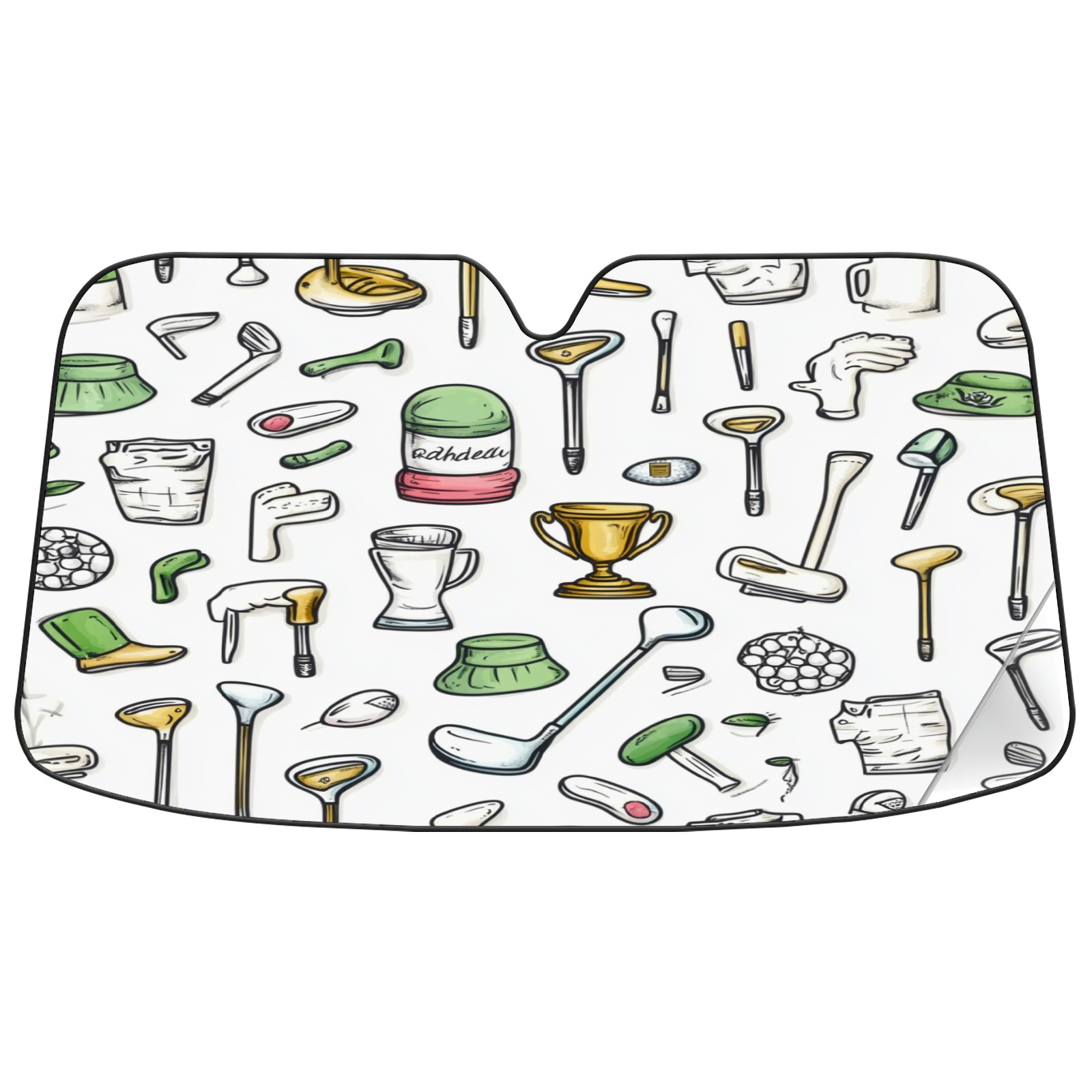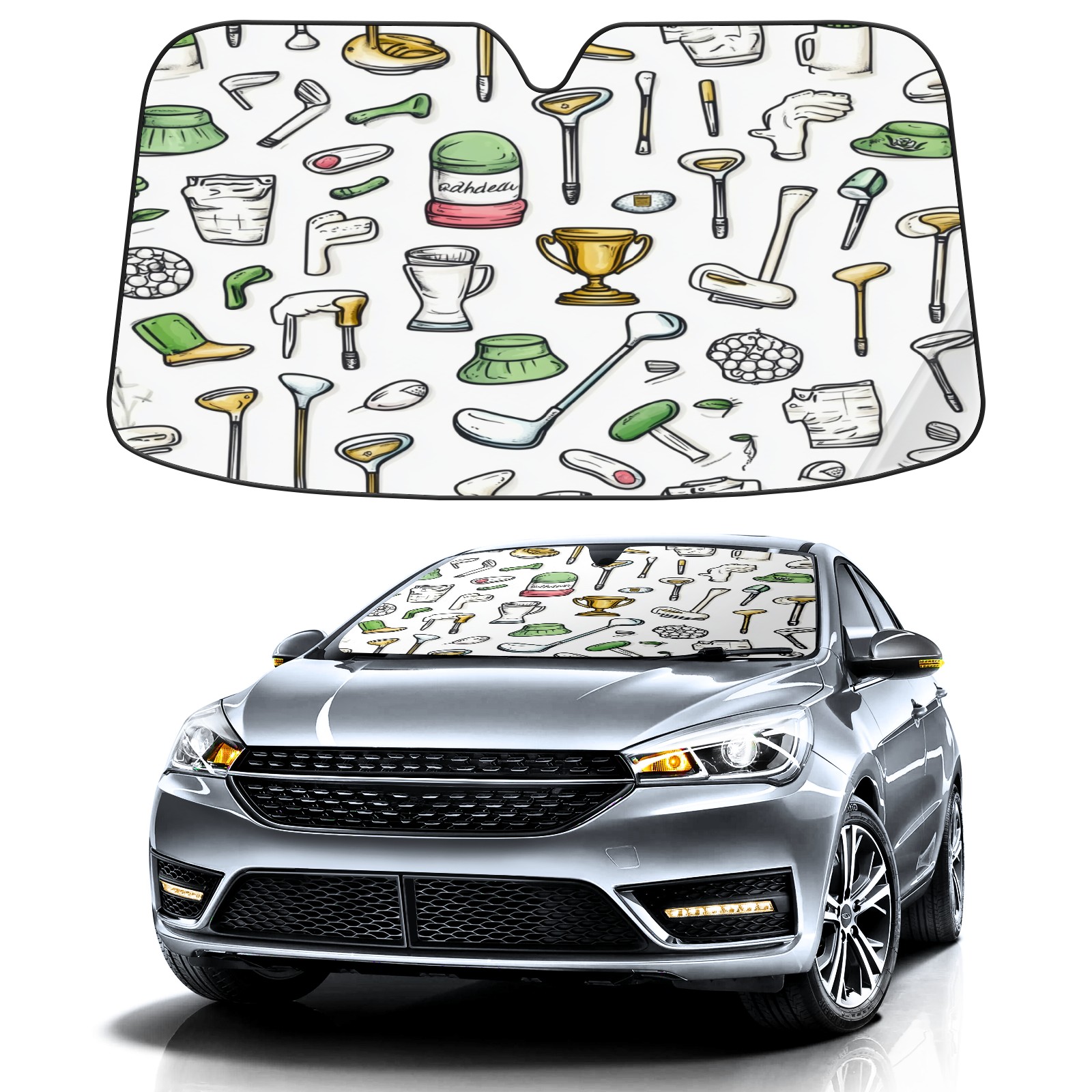 Car Windshield Sun Shade Foldable-Universal Fit Sunshade for Front Windows, UV Protection Heat Shield for Most Vehicles (55x30in)-Sun Visor Extender, Dashboard Cover(Hand-drawn Golf Elements)