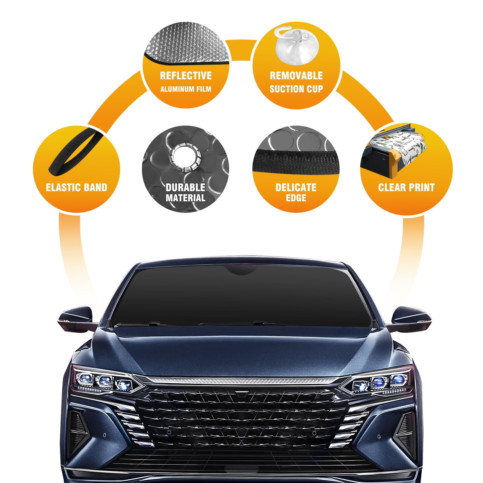 • <p>Stay cool and protect your car’s interior with our&nbsp;<strong>universal-fit windshield sun shade</strong>, designed to block&nbsp;<strong>99% of harmful UV rays</strong>&nbsp;and reduce cabin heat by up to&nbsp;<strong>60°F</strong>. Perfect for sedans, SUVs, and trucks, this&nbsp;<strong>foldable sunshade</strong>&nbsp;features a&nbsp;<strong>heavy-duty reflective surface</strong>&nbsp;that ensures maximum coverage for your&nbsp;<strong>car windshield</strong>.<br></p>