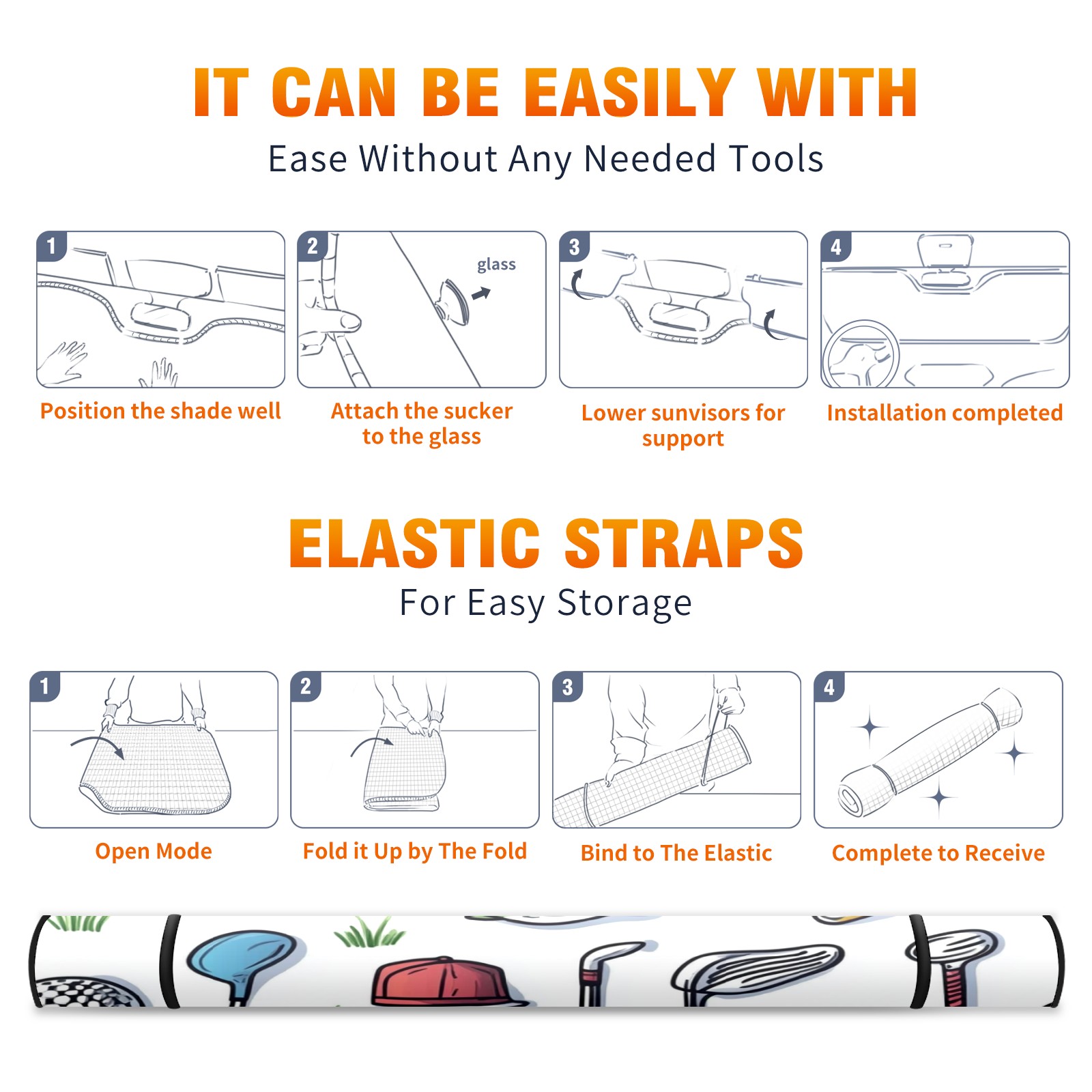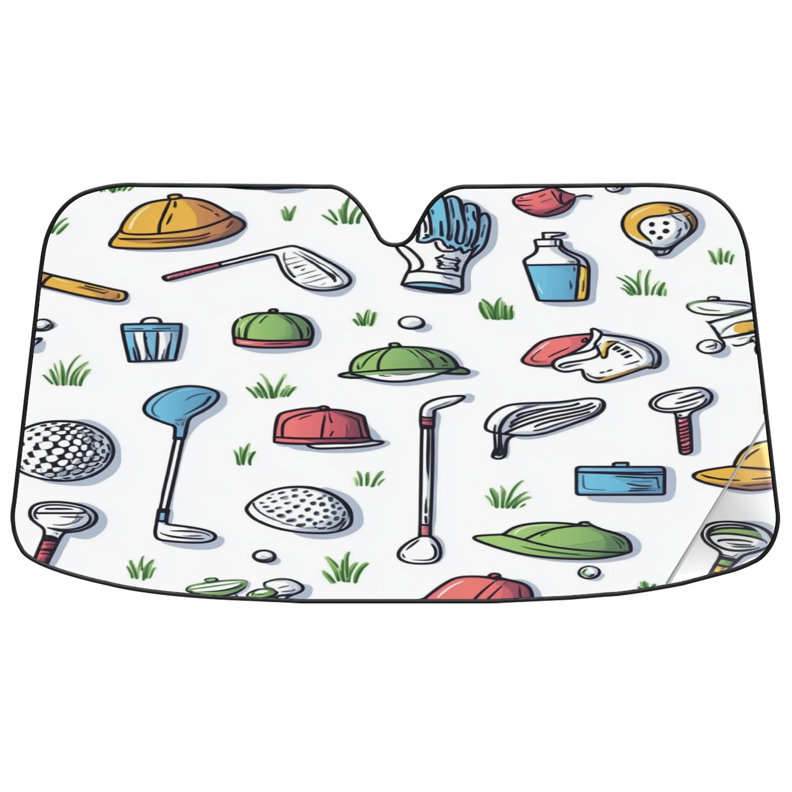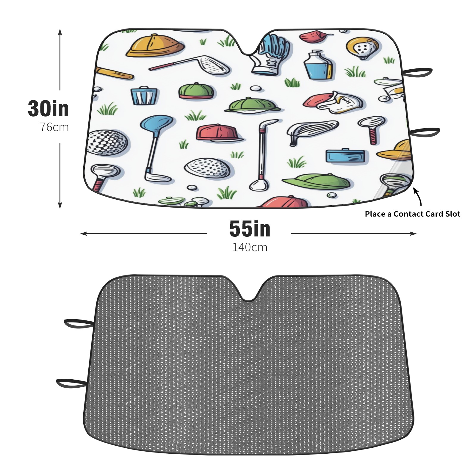 Car Windshield Sun Shade Foldable-Universal Fit Sunshade for Front Windows, UV Protection Heat Shield for Most Vehicles (55x30in)-Sun Visor Extender, Dashboard Cover(Golf Elements)