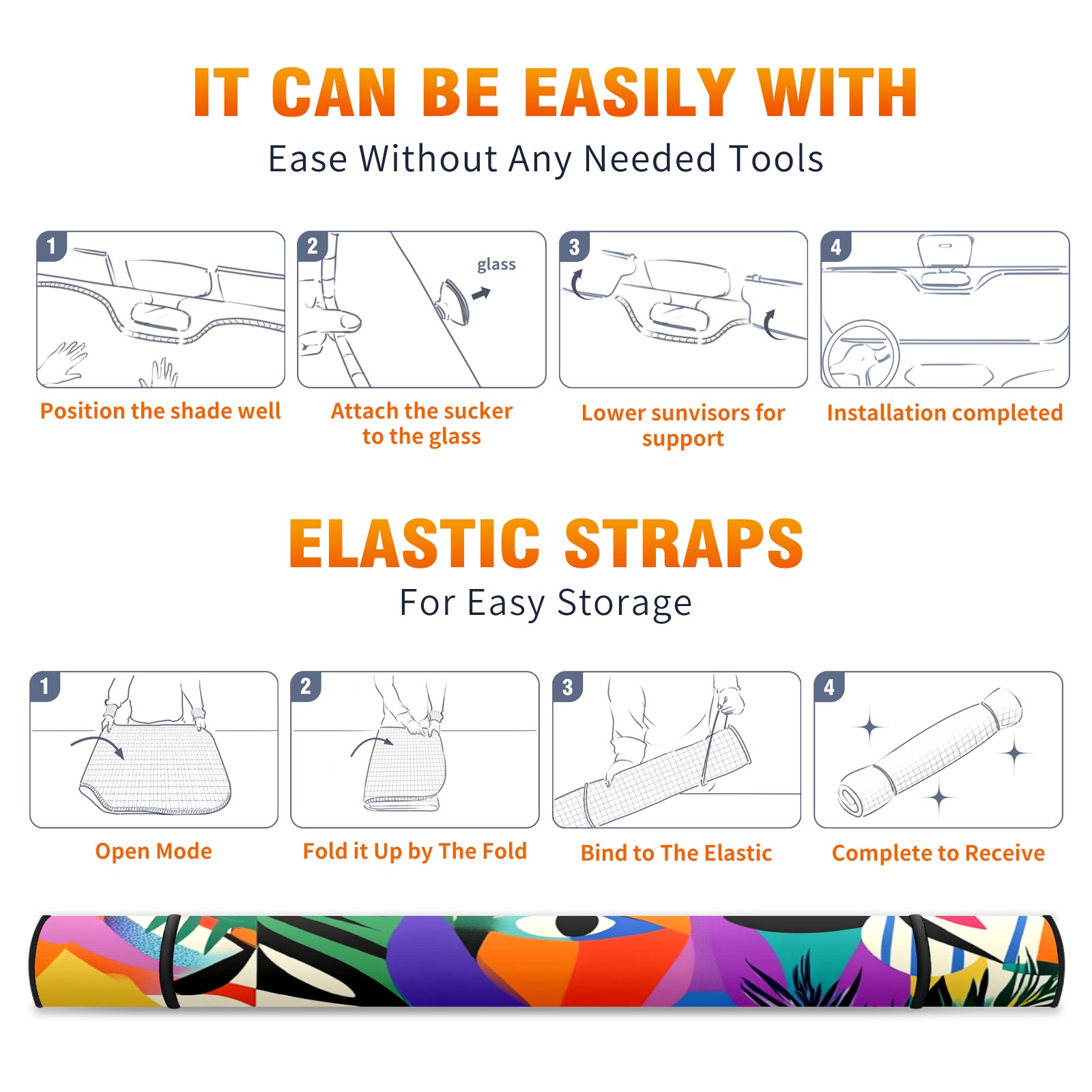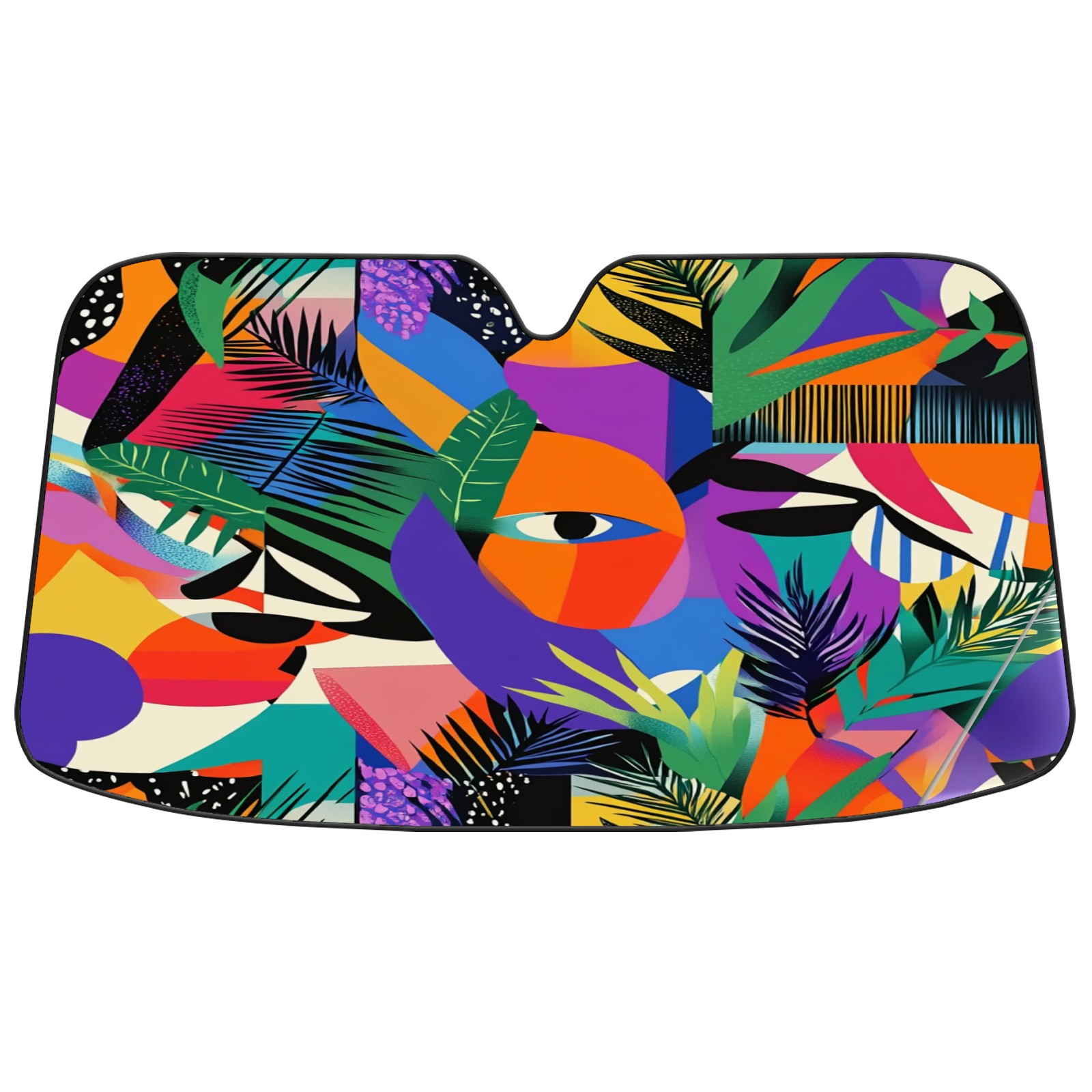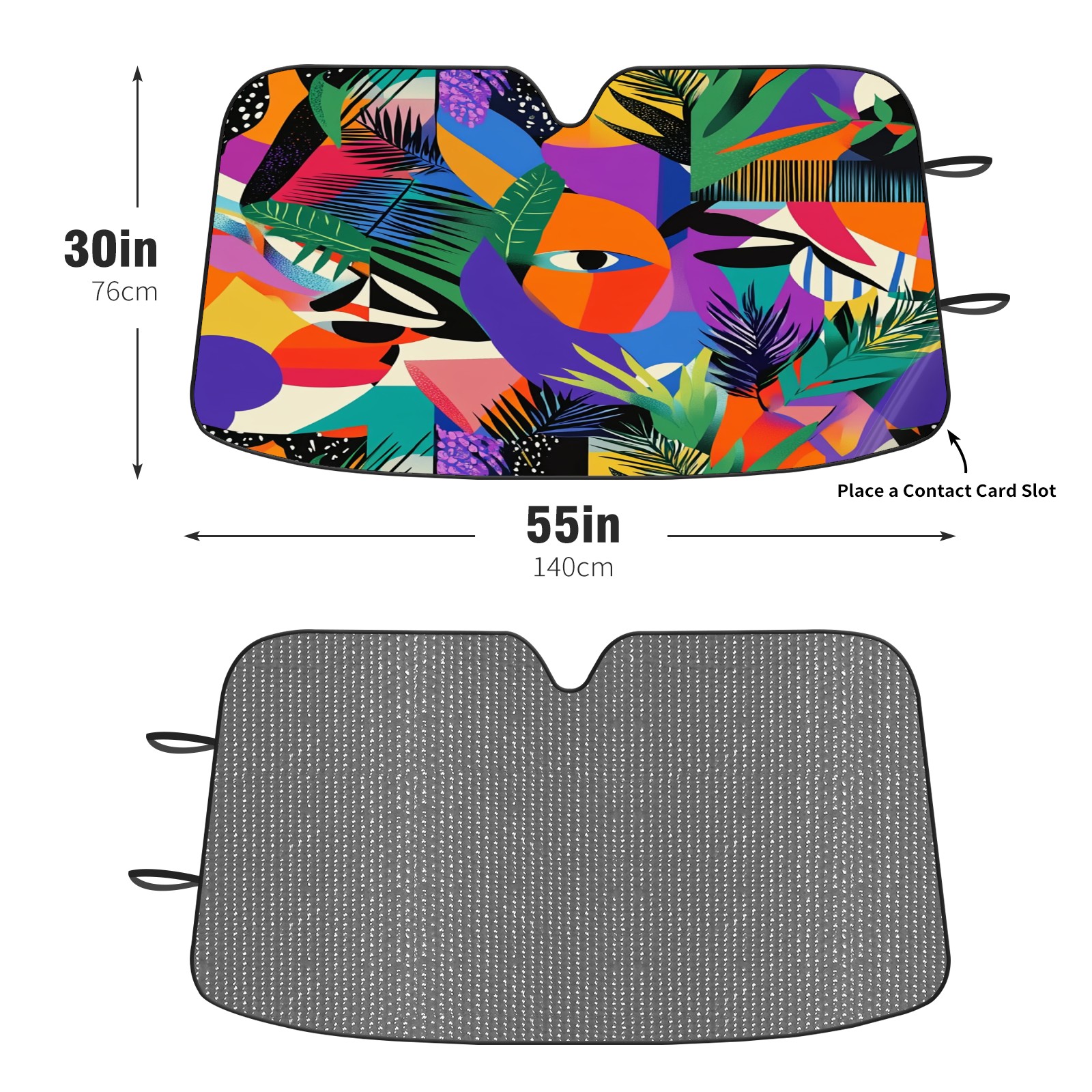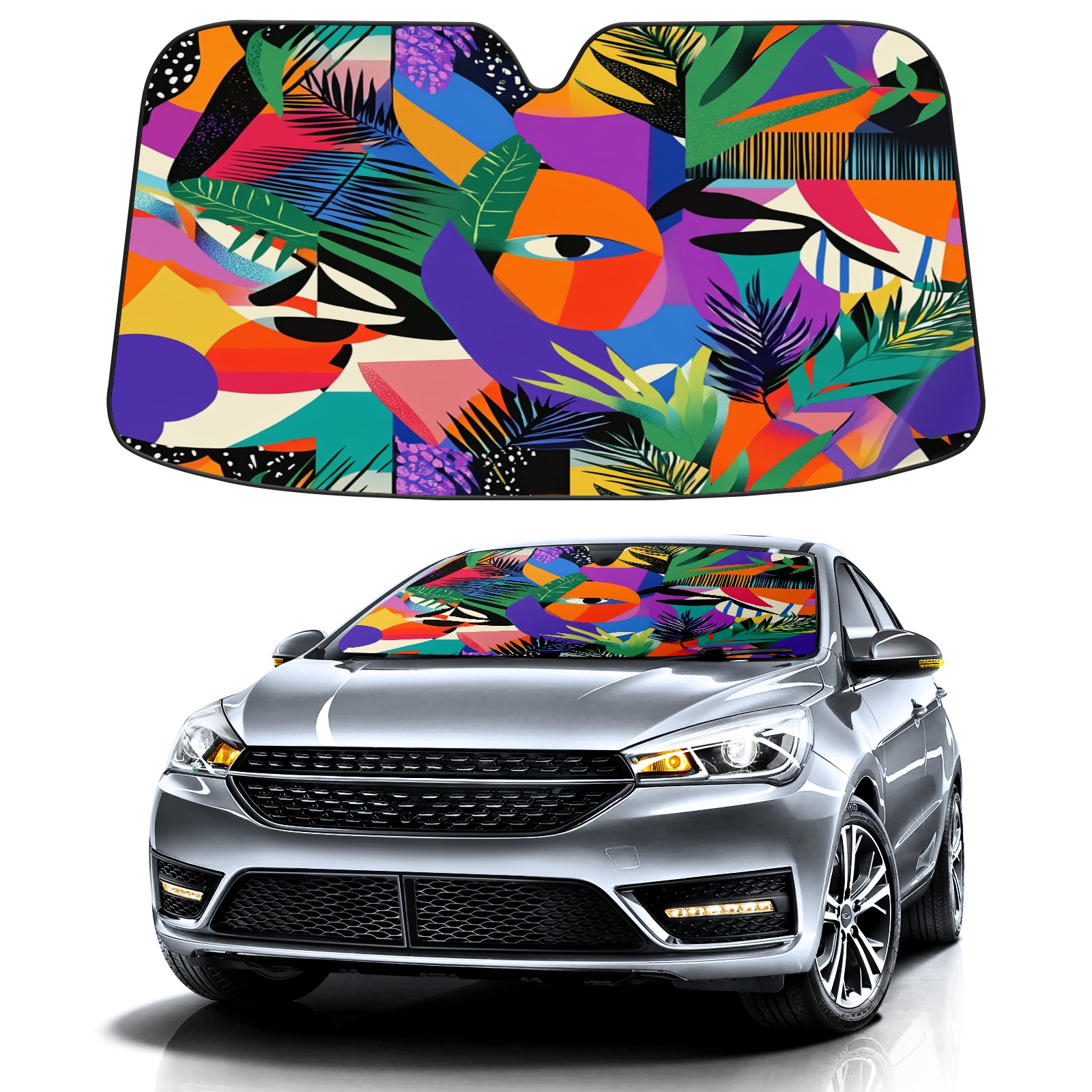 Car Windshield Sun Shade Foldable-Universal Fit Sunshade for Front Windows, UV Protection Heat Shield for Most Vehicles (55x30in)-Sun Visor Extender, Dashboard Cover(Vibrant And Colorful Pattern)