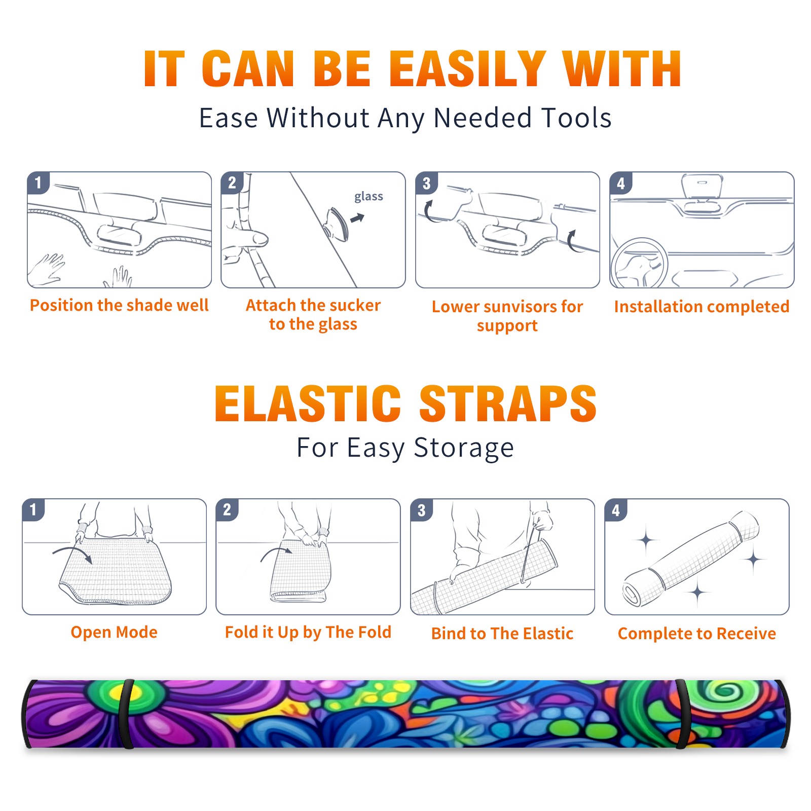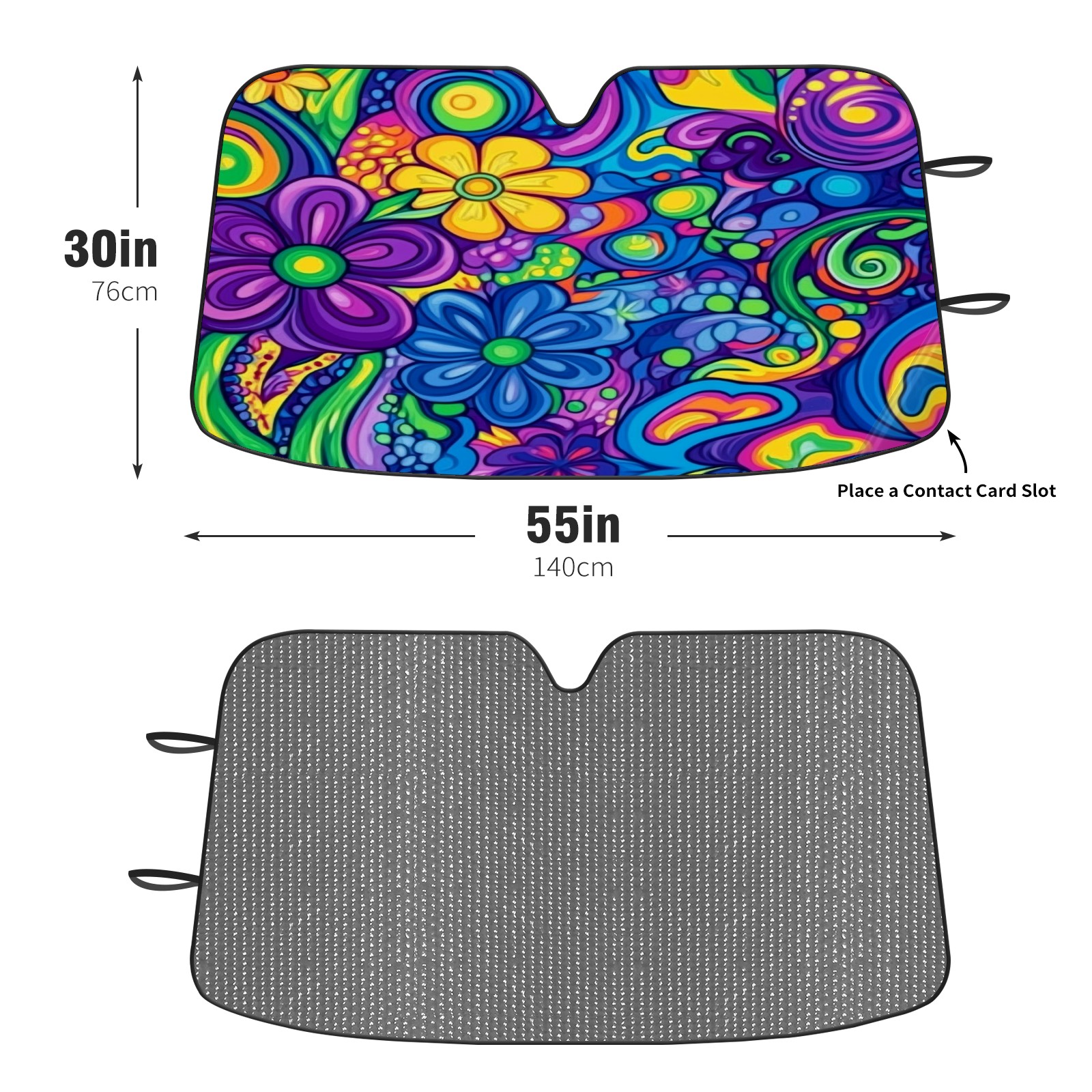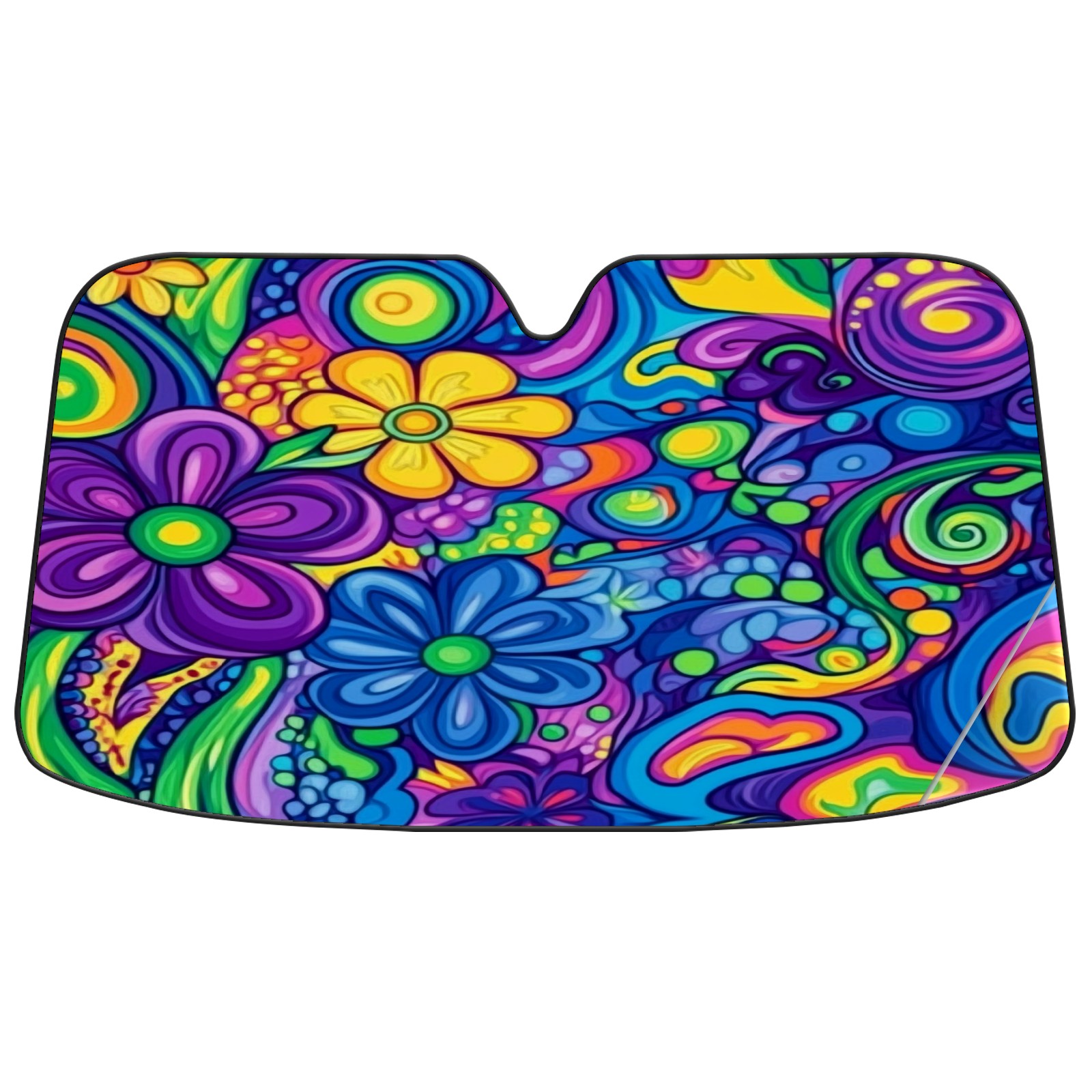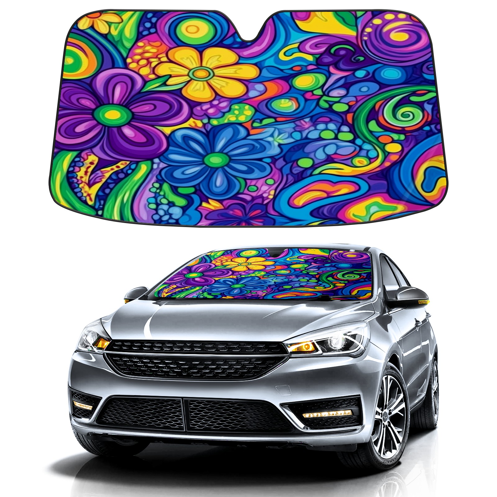 Car Windshield Sun Shade Foldable-Universal Fit Sunshade for Front Windows, UV Protection Heat Shield for Most Vehicles (55x30in)-Sun Visor Extender, Dashboard Cover(Psychedelic Patterns)