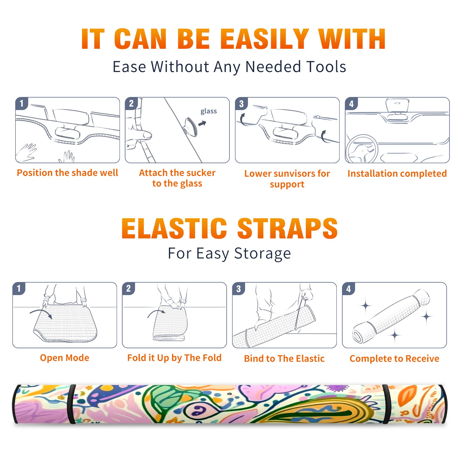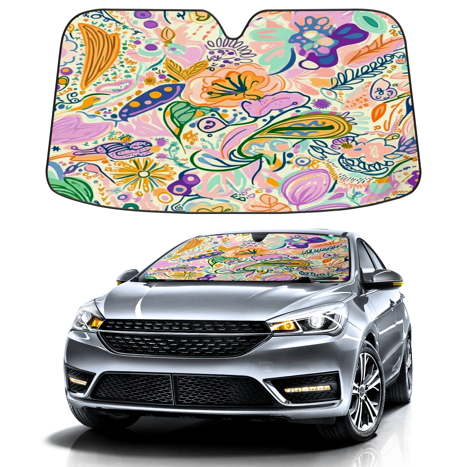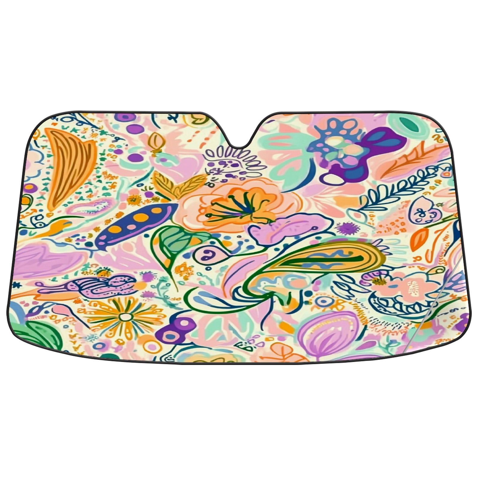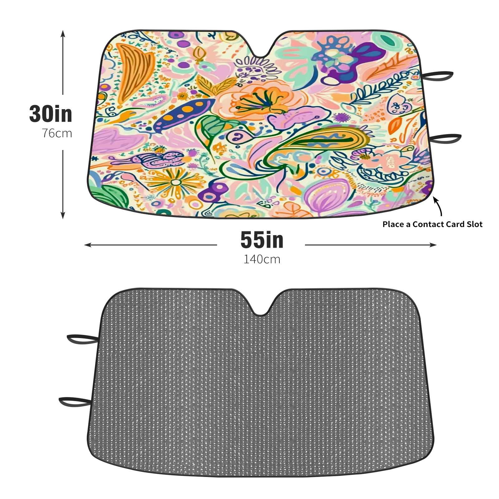 Car Windshield Sun Shade Foldable-Universal Fit Sunshade for Front Windows, UV Protection Heat Shield for Most Vehicles (55x30in)-Sun Visor Extender, Dashboard Cover(Intricate Doodle Pattern)