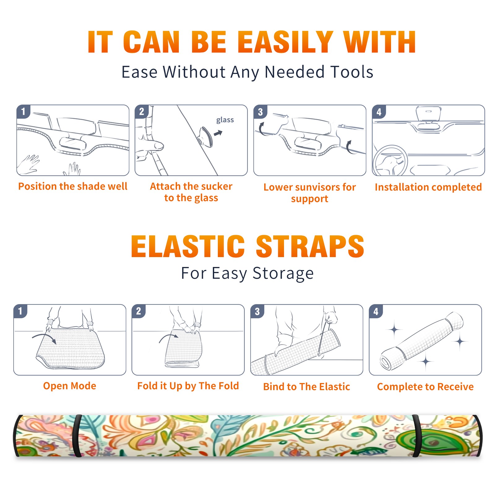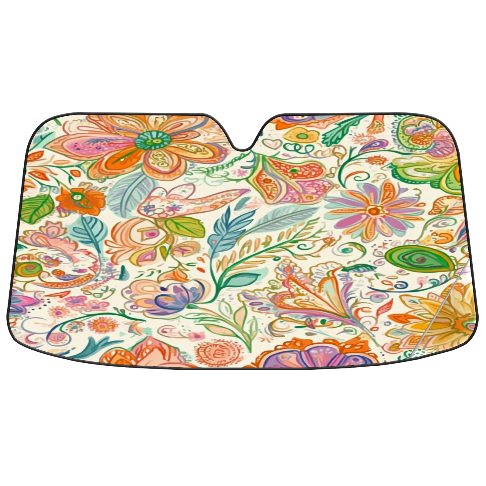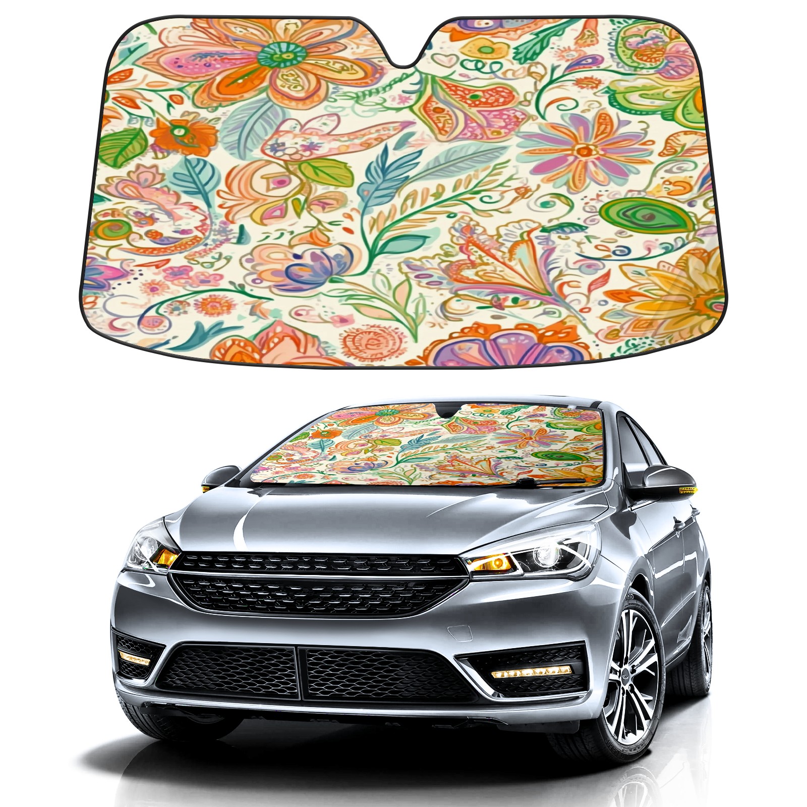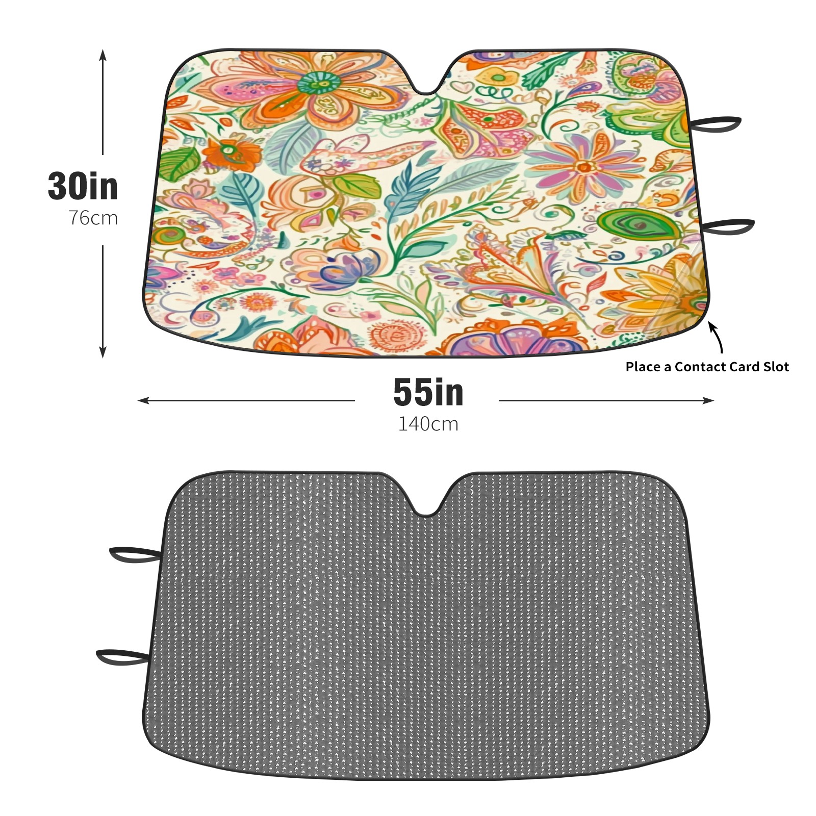 Car Windshield Sun Shade Foldable-Universal Fit Sunshade for Front Windows, UV Protection Heat Shield for Most Vehicles (55x30in)-Sun Visor Extender, Dashboard Cover(Intricate Doodle)