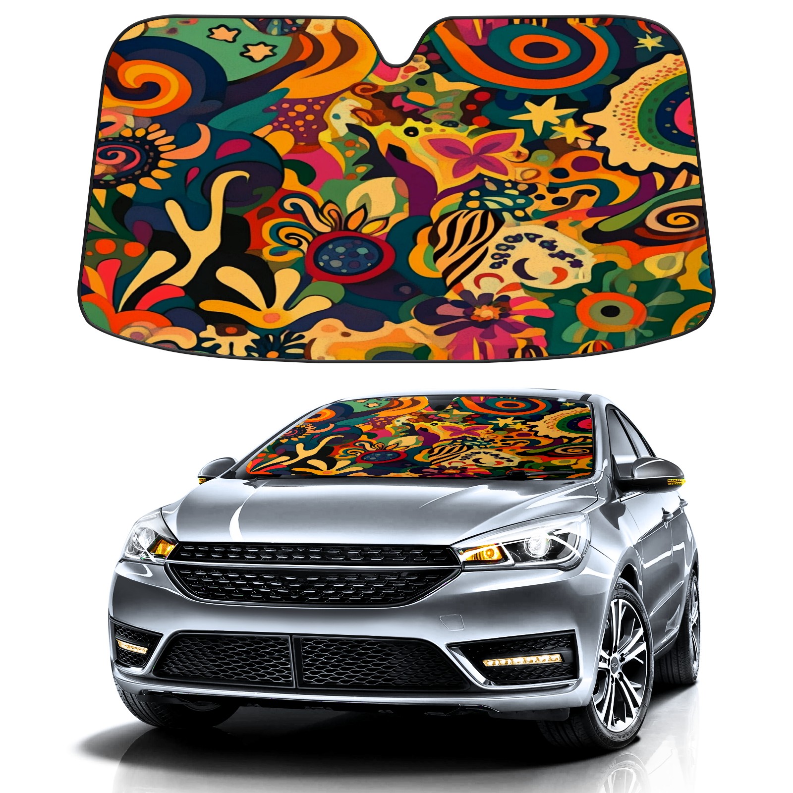 Car Windshield Sun Shade Foldable-Universal Fit Sunshade for Front Windows, UV Protection Heat Shield for Most Vehicles (55x30in)-Sun Visor Extender, Dashboard Cover(Abstract Pattern)