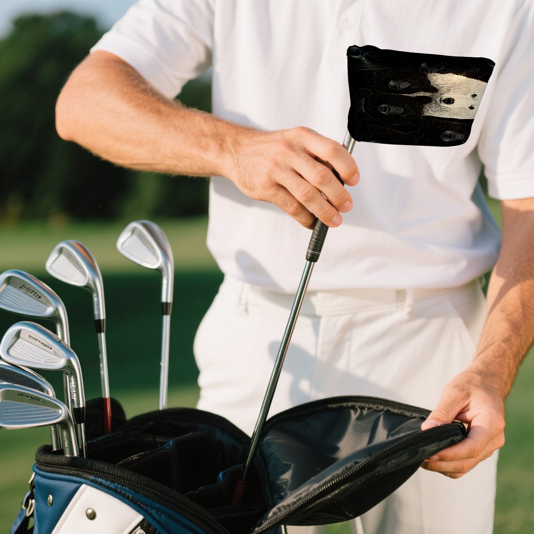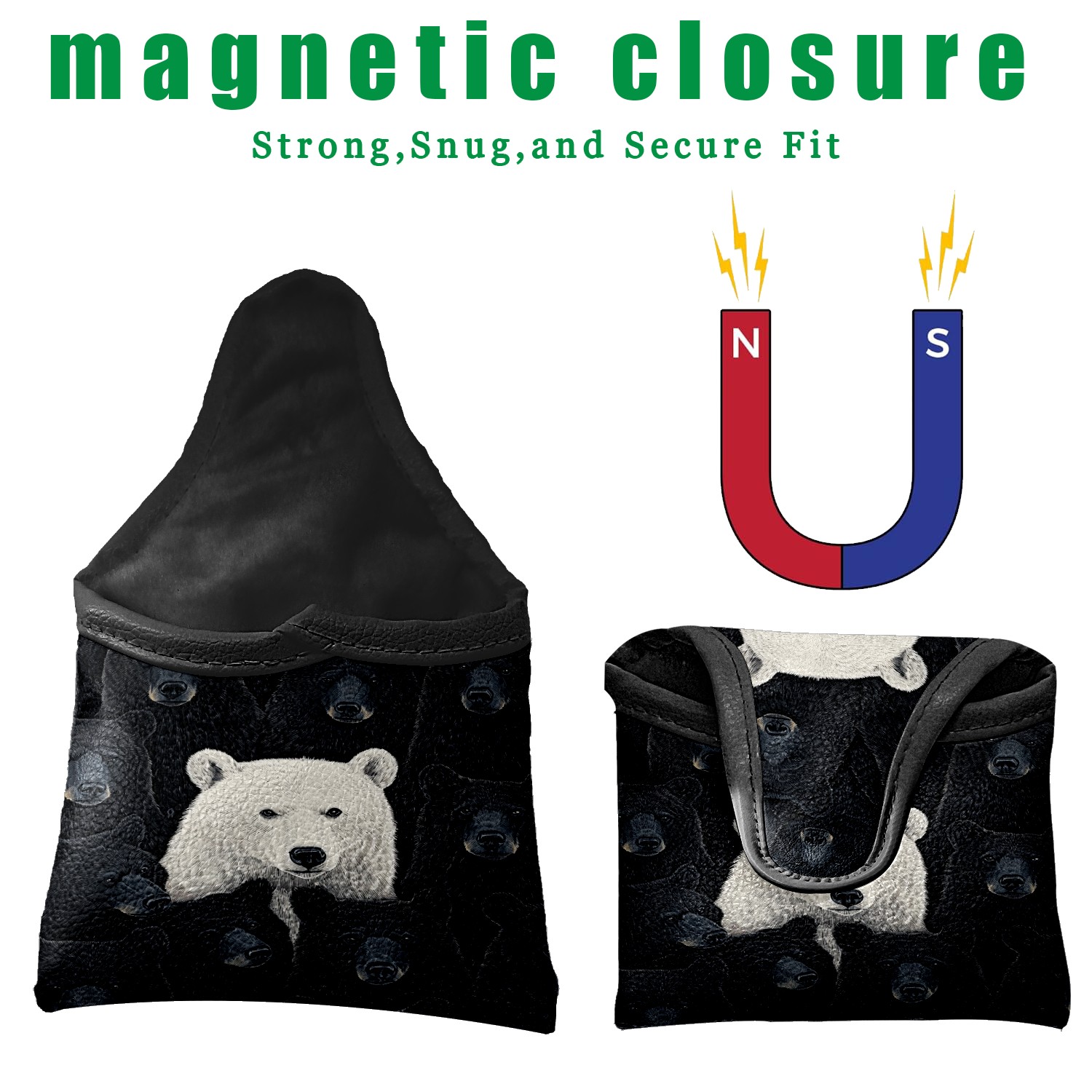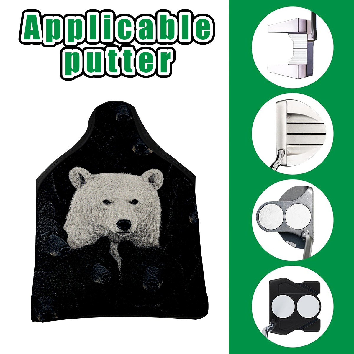 Mallet Putter Cover Magnetic PU Leather Golf Putter Headcover with Plush Lining, Mallet Putter Head Cover for Men Women Golf Club Covers (Bears)