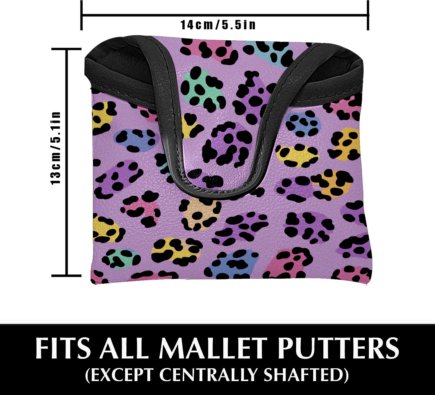 Mallet Putter Cover Magnetic PU Leather Golf Putter Headcover with Plush Lining, Mallet Putter Head Cover for Men Women Golf Club Covers (Colorful Leopard Print)