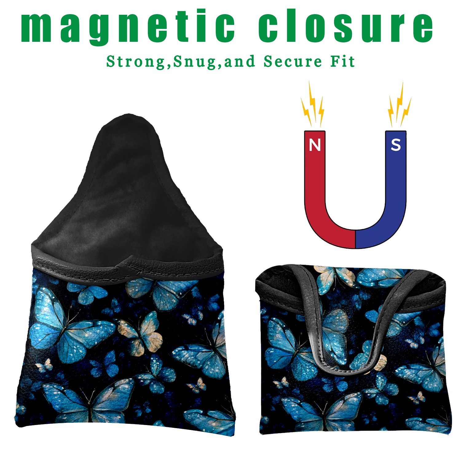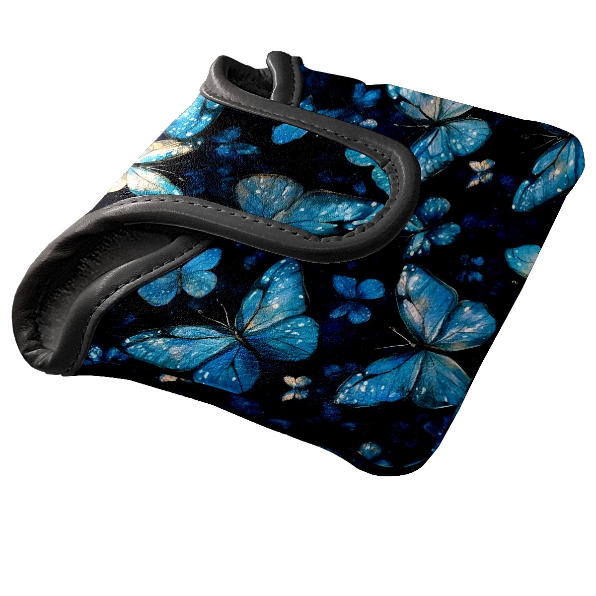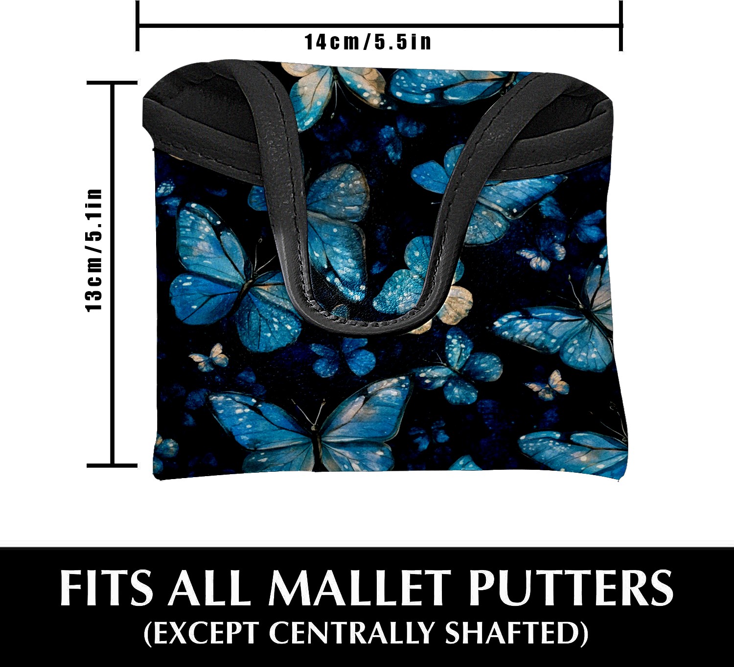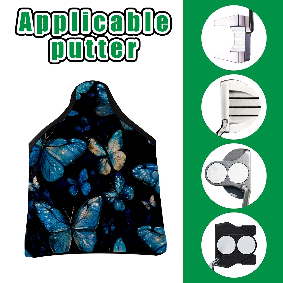 Mallet Putter Cover Magnetic PU Leather Golf Putter Headcover with Plush Lining, Mallet Putter Head Cover for Men Women Golf Club Covers (Turquoise Blue Butterflies)