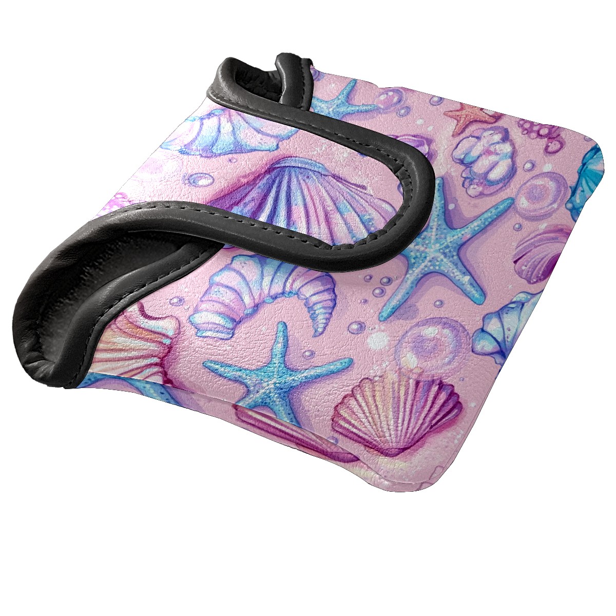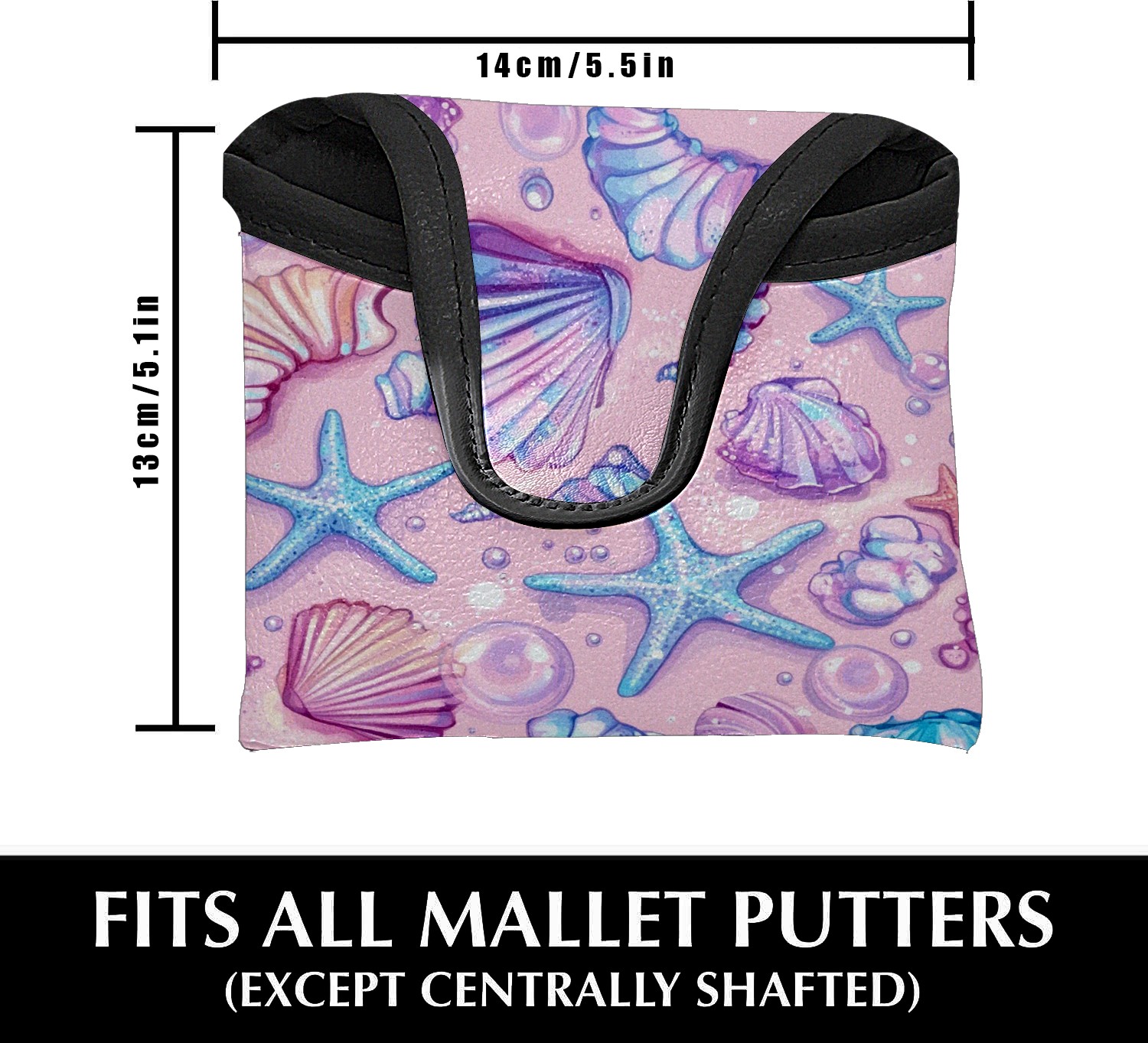 Mallet Putter Cover Magnetic PU Leather Golf Putter Headcover with Plush Lining, Mallet Putter Head Cover for Men Women Golf Club Covers (Seashells Starfish Pink)