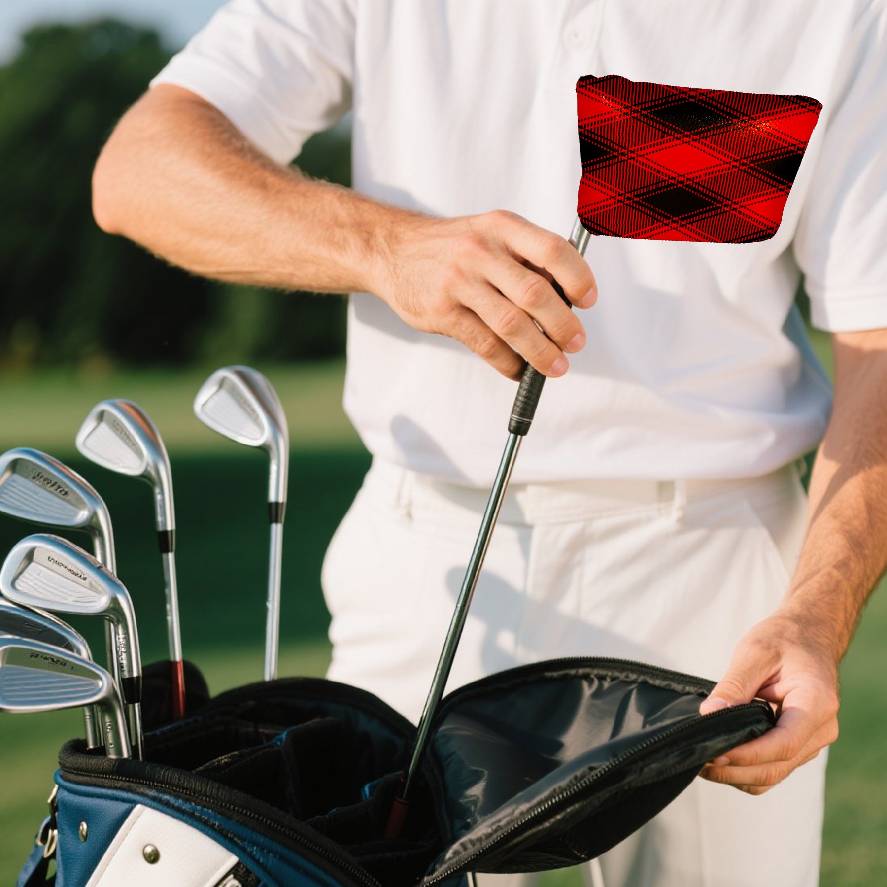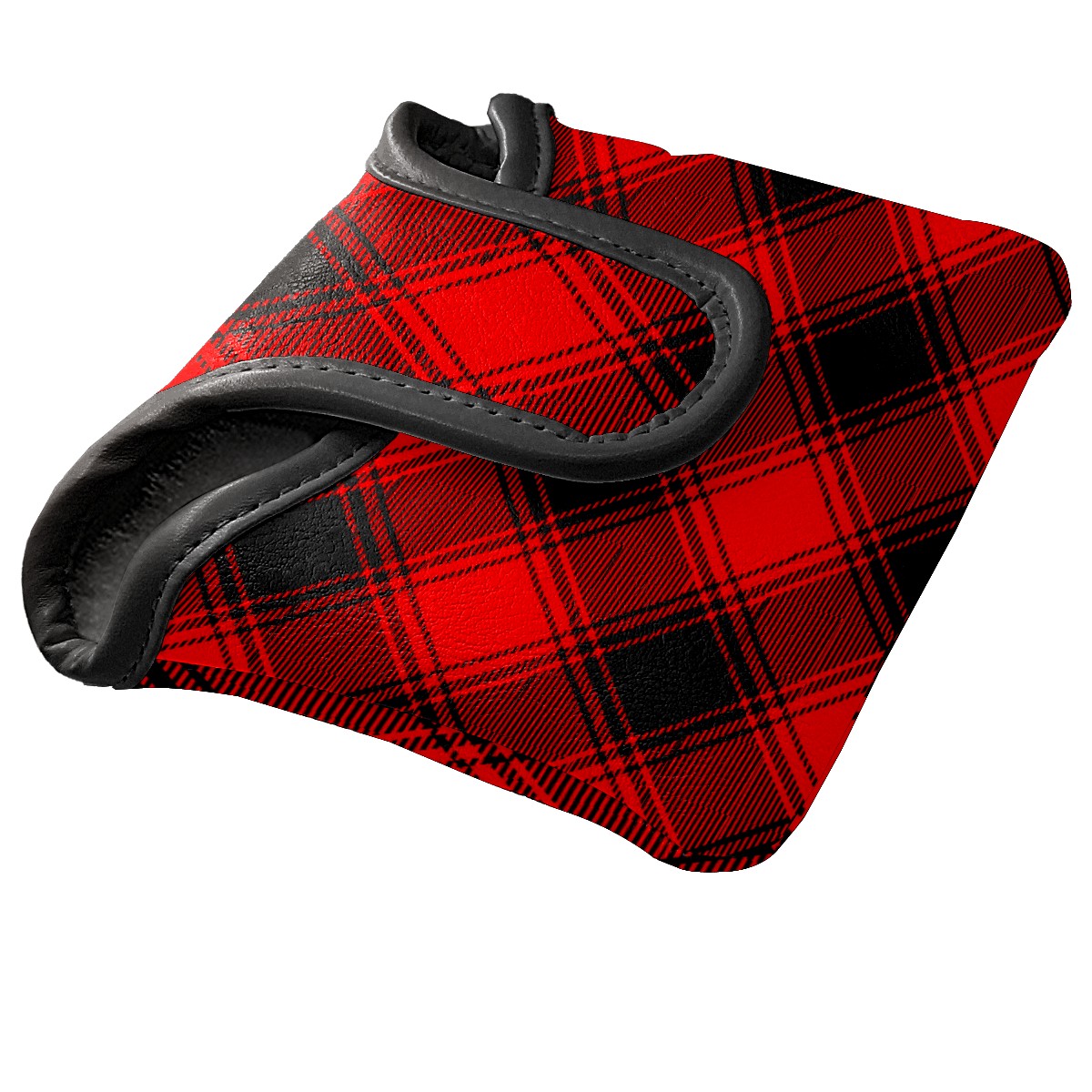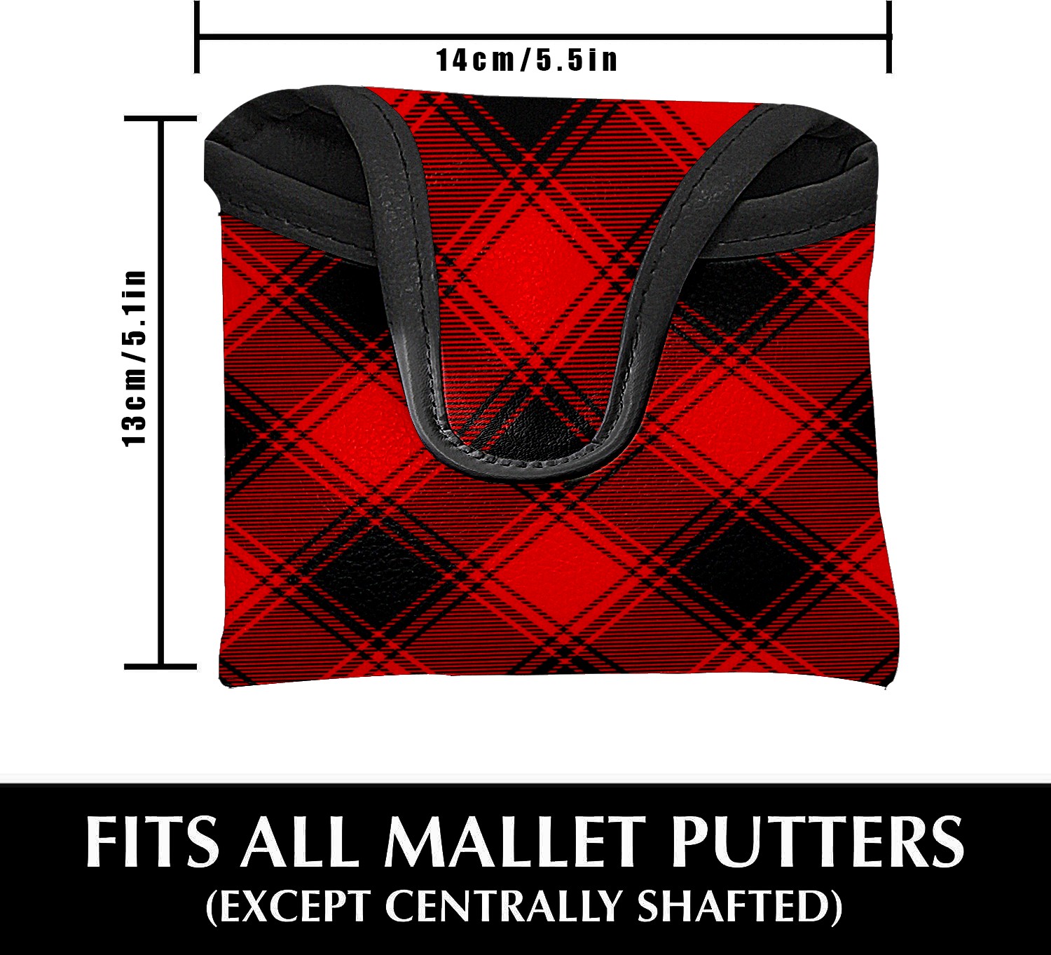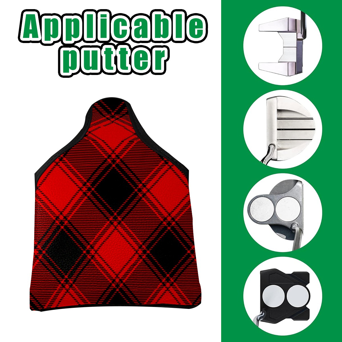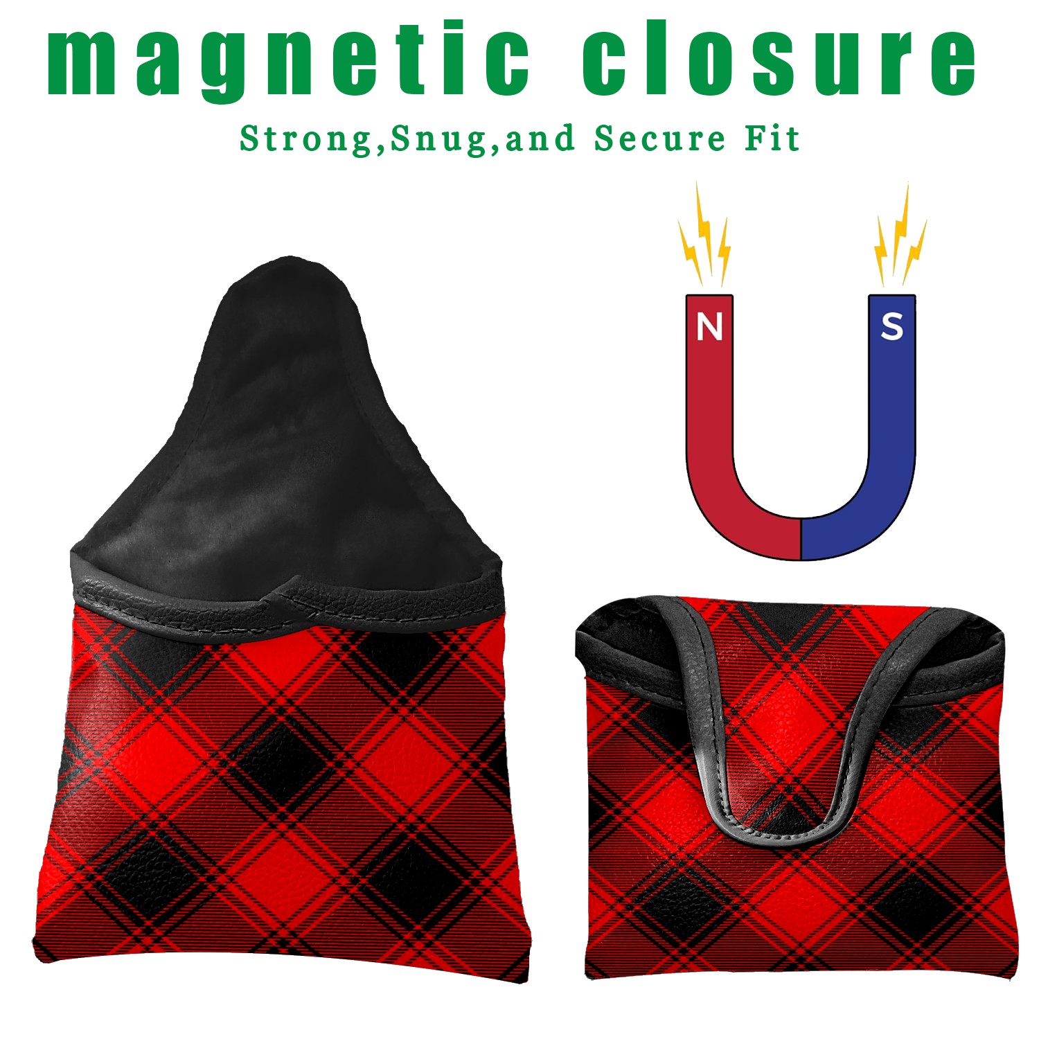 Mallet Putter Cover Magnetic PU Leather Golf Putter Headcover with Plush Lining, Mallet Putter Head Cover for Men Women Golf Club Covers (Buffalo Plaid Red Black)