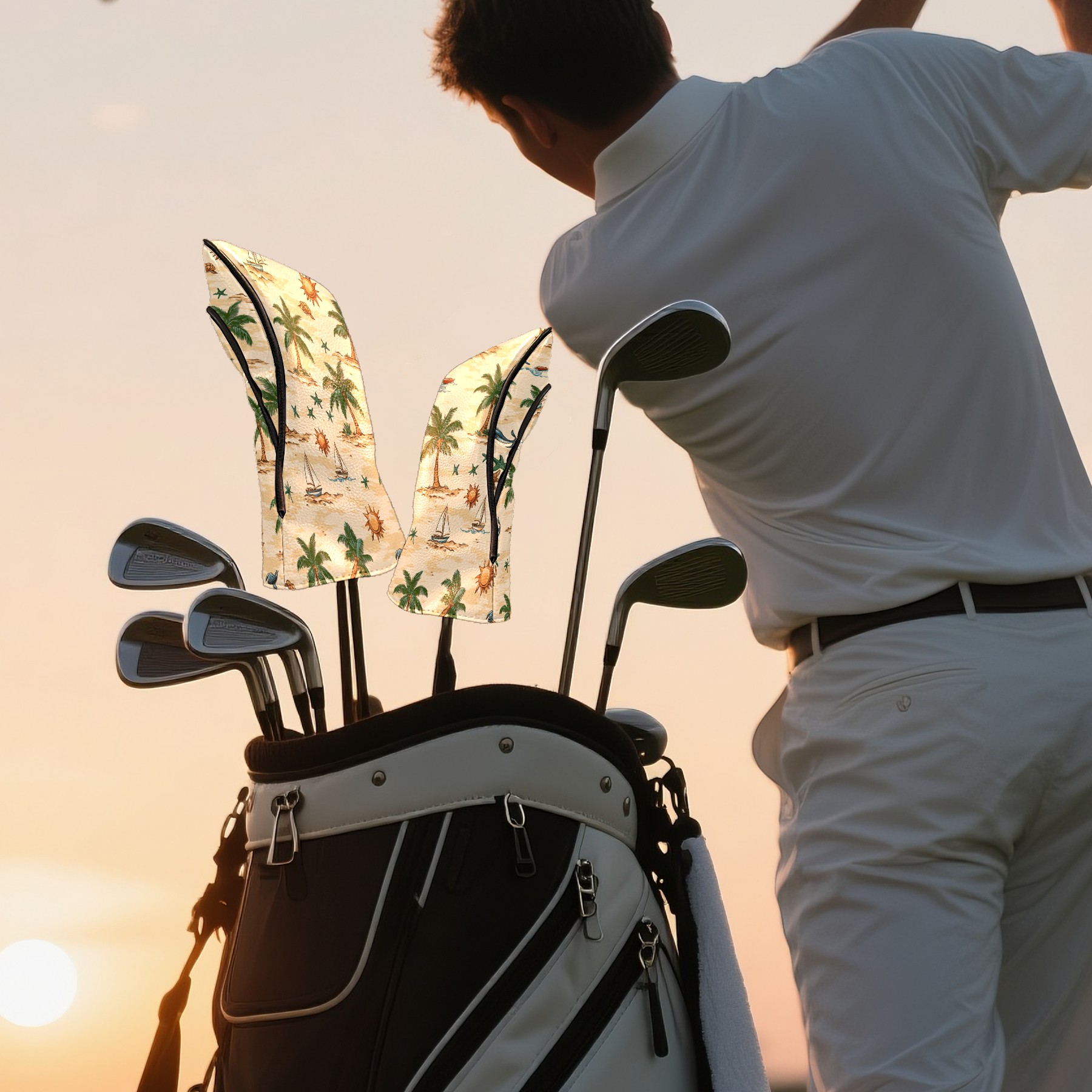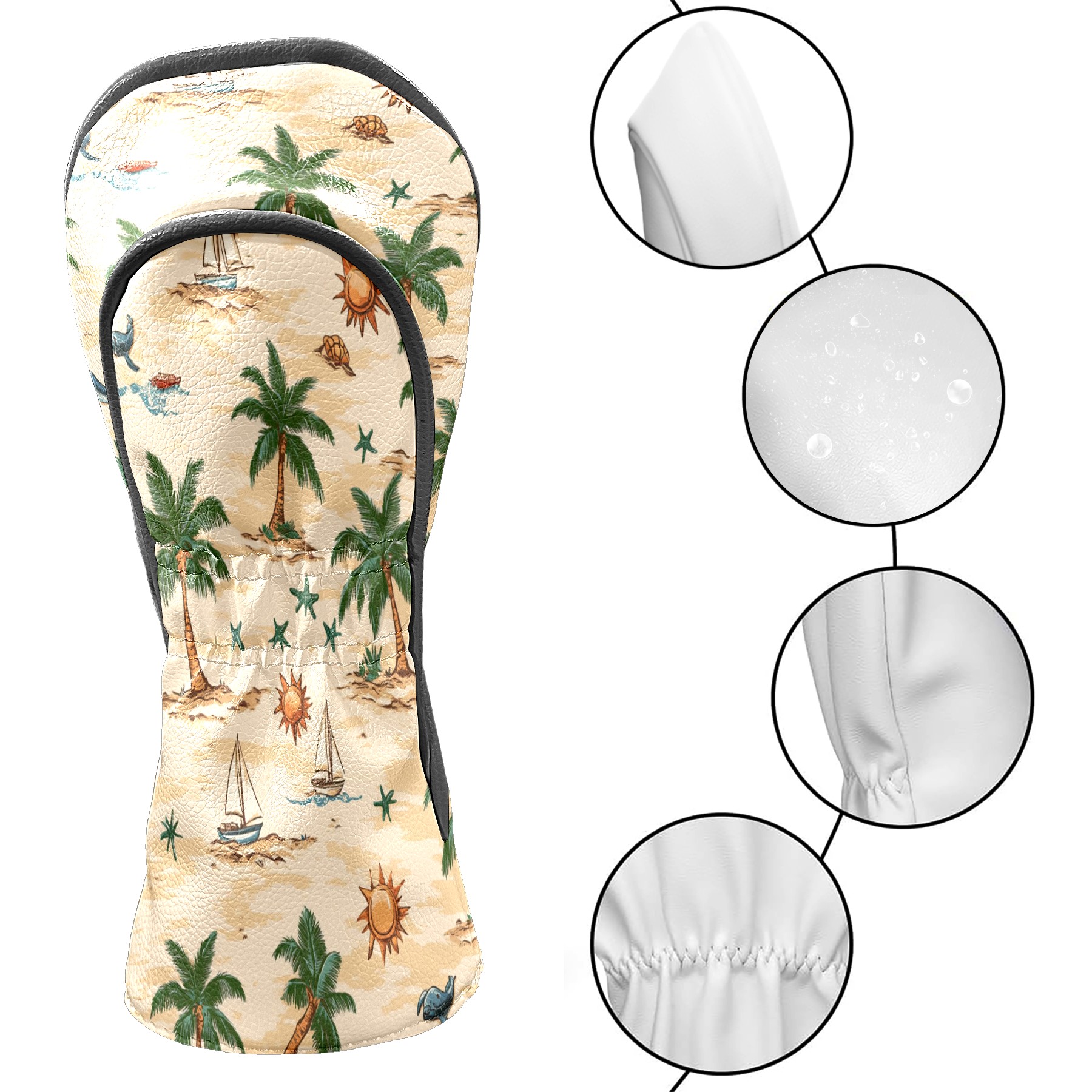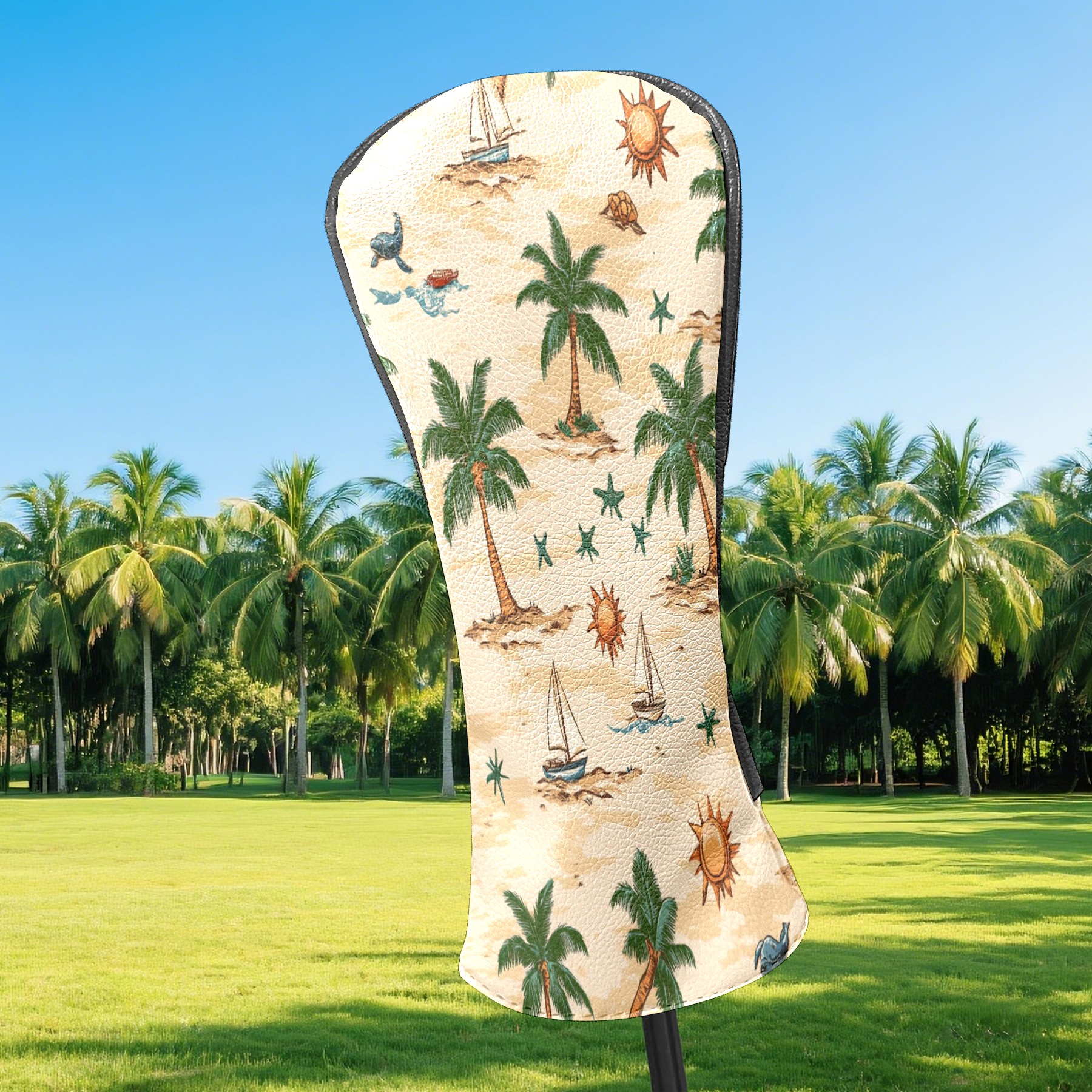 Golf Club Head Covers for Driver and Fairway Woods, Waterproof Leather Headcovers for Golf Clubs, Ideal Golf Accessories Gift for Men Women (Palm Trees Suns And Starfish)