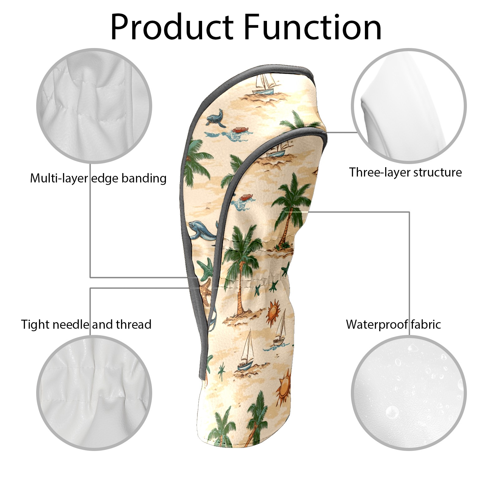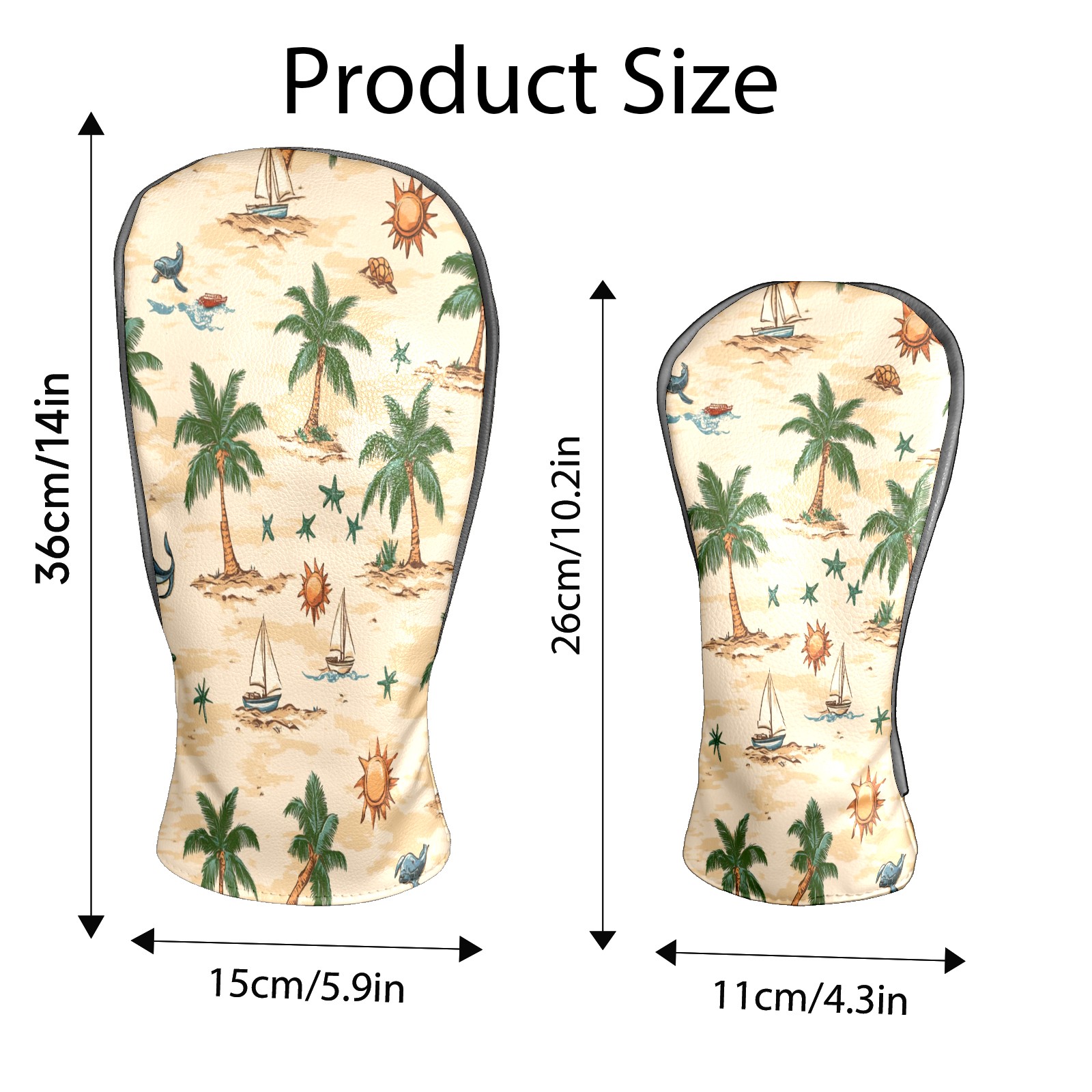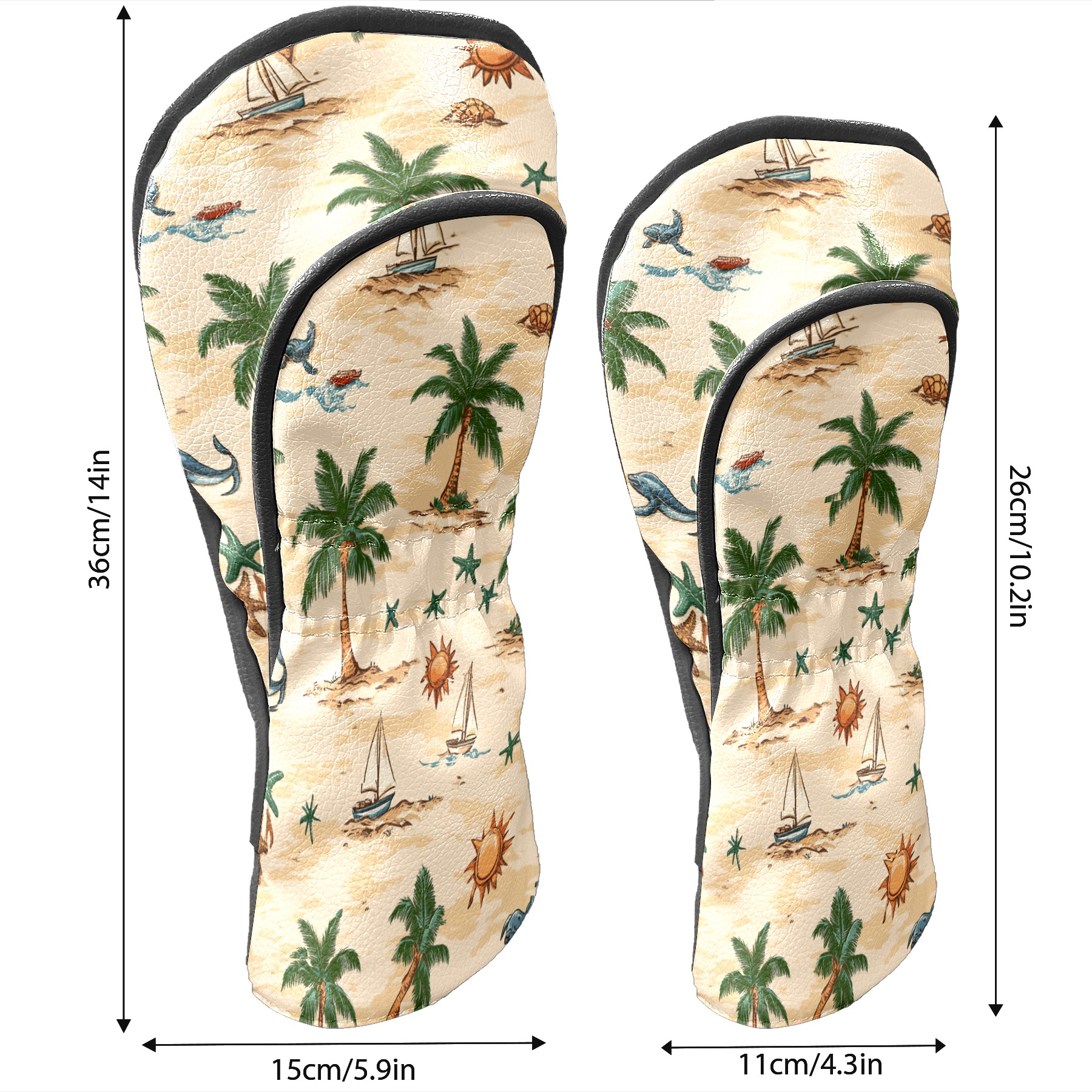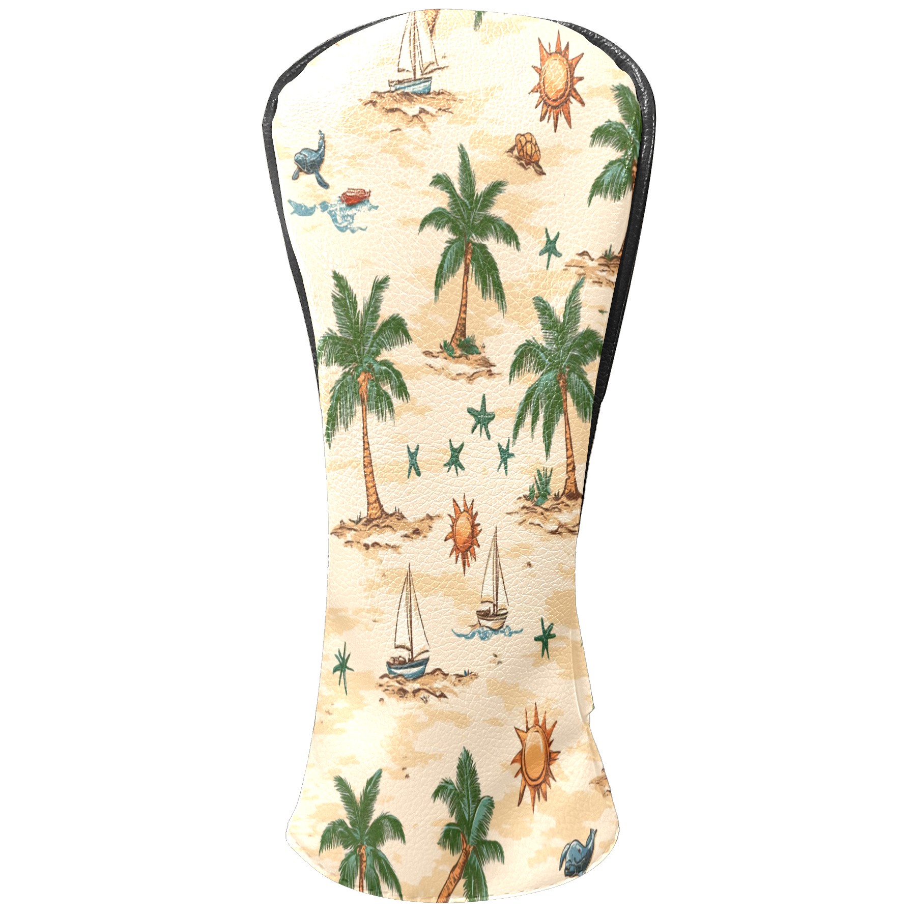 Golf Club Head Covers for Driver and Fairway Woods, Waterproof Leather Headcovers for Golf Clubs, Ideal Golf Accessories Gift for Men Women (Palm Trees Suns And Starfish)