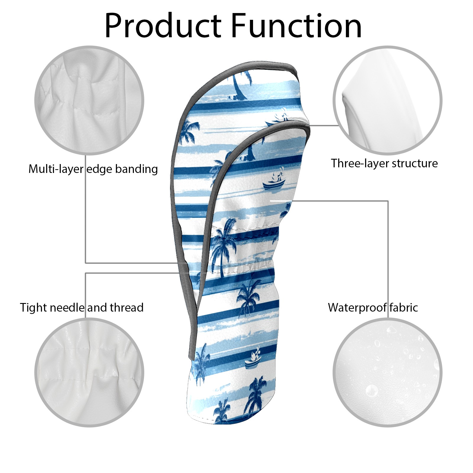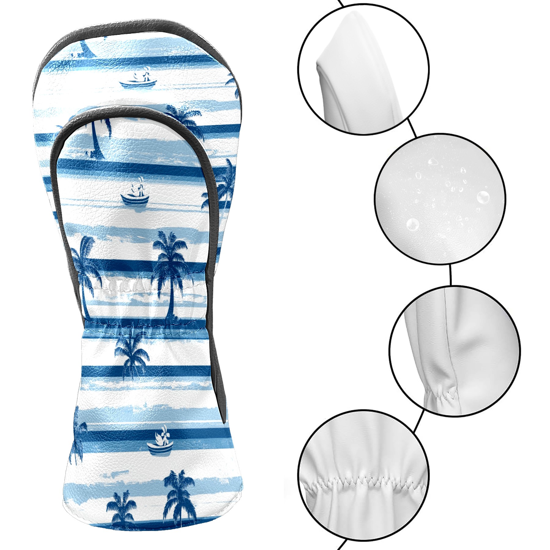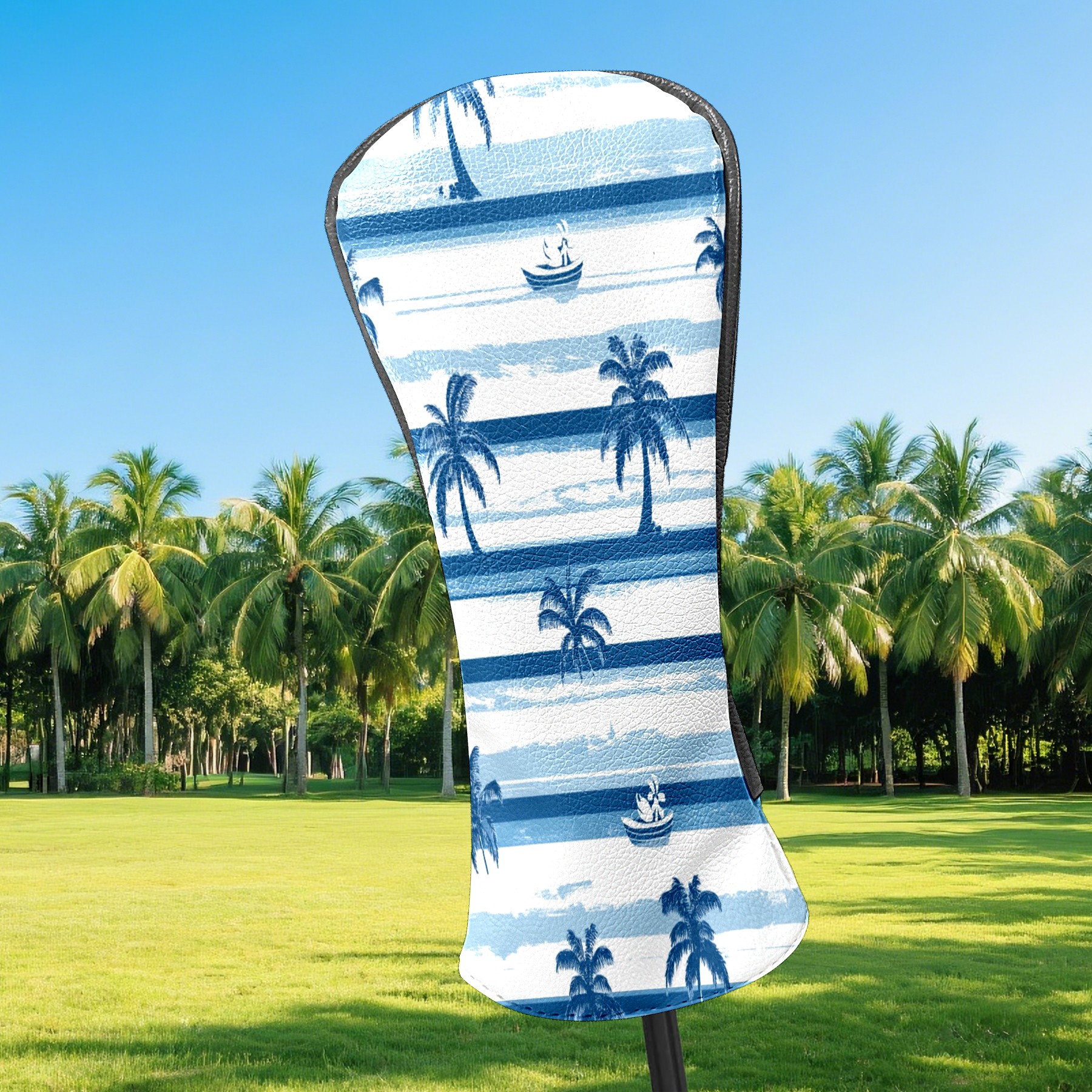 Golf Club Head Covers for Driver and Fairway Woods, Waterproof Leather Headcovers for Golf Clubs, Ideal Golf Accessories Gift for Men Women (Palm Trees And Boats)