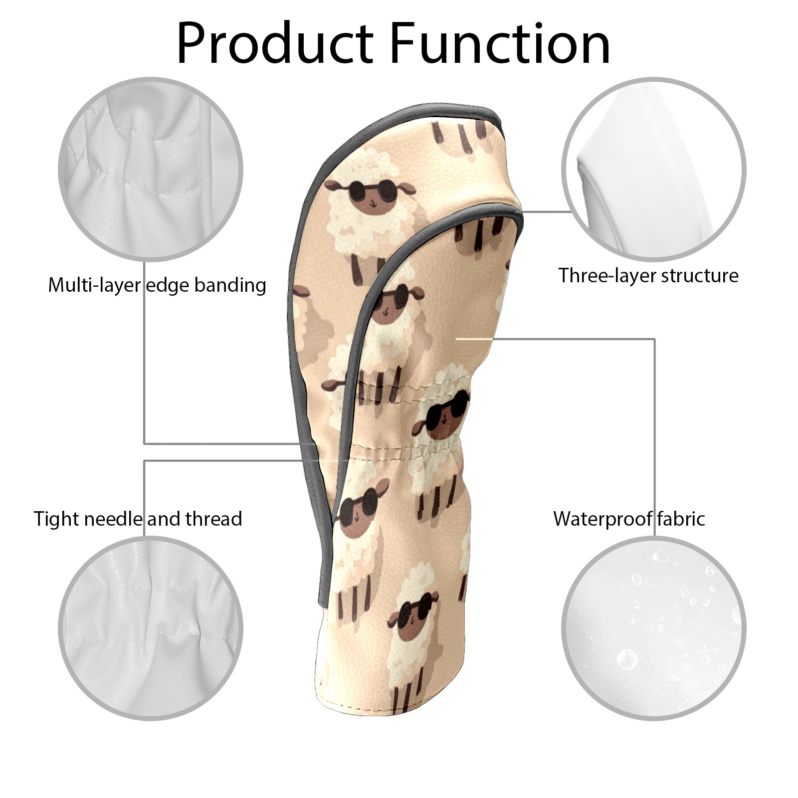 Golf Club Head Covers for Driver and Fairway Woods, Waterproof Leather Headcovers for Golf Clubs, Ideal Golf Accessories Gift for Men Women (Sheep)