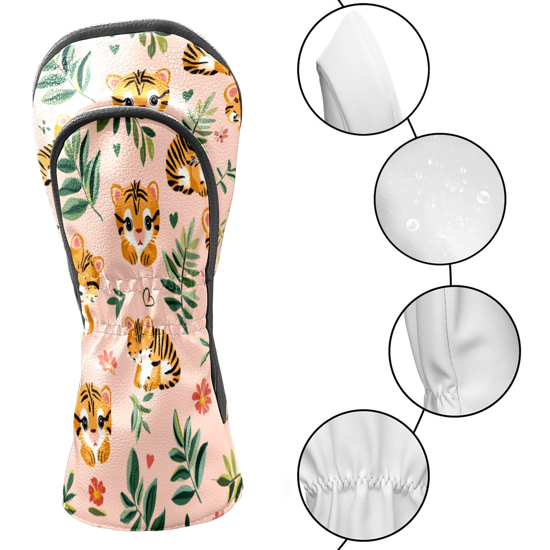 Golf Club Head Covers for Driver and Fairway Woods, Waterproof Leather Headcovers for Golf Clubs, Ideal Golf Accessories Gift for Men Women (Tiger)