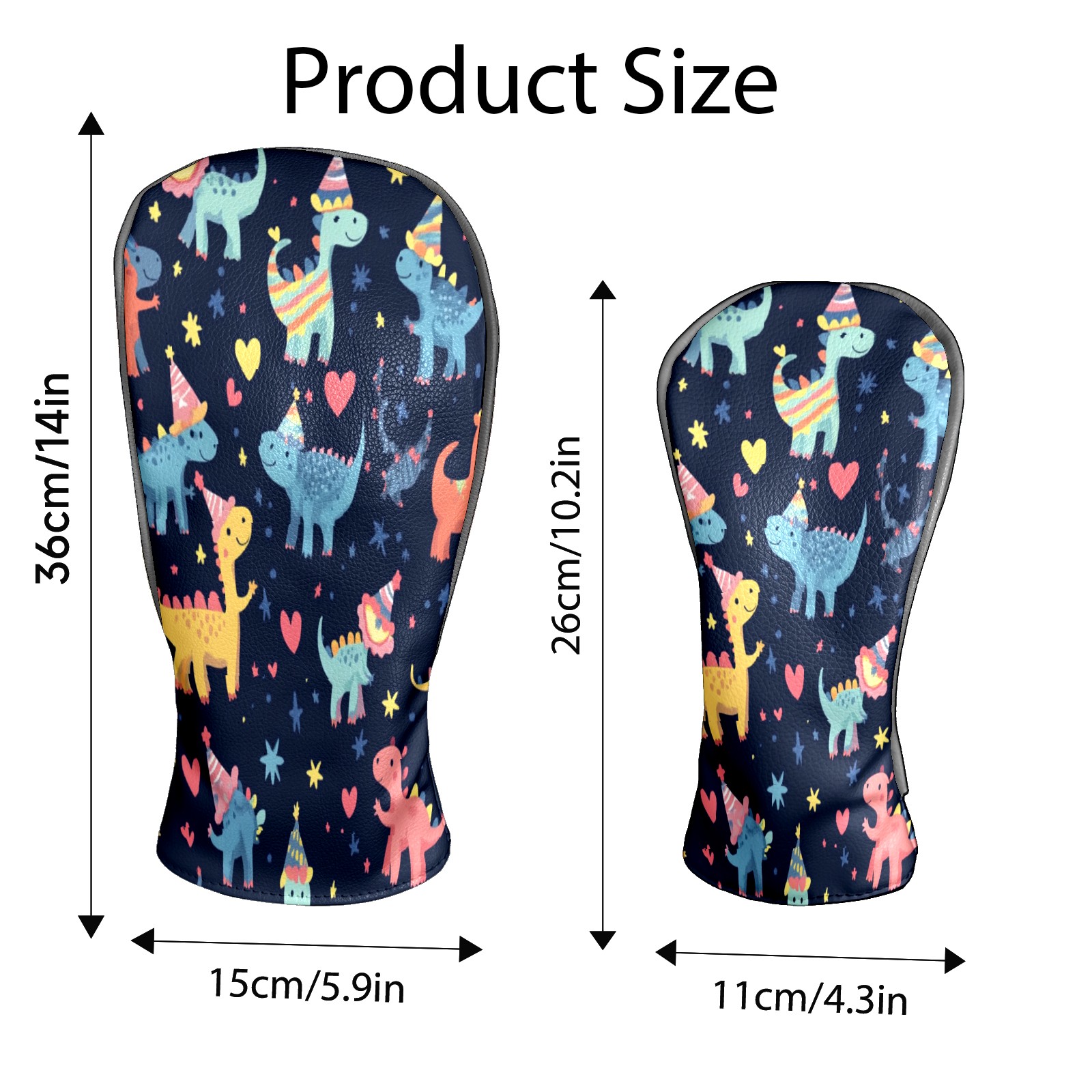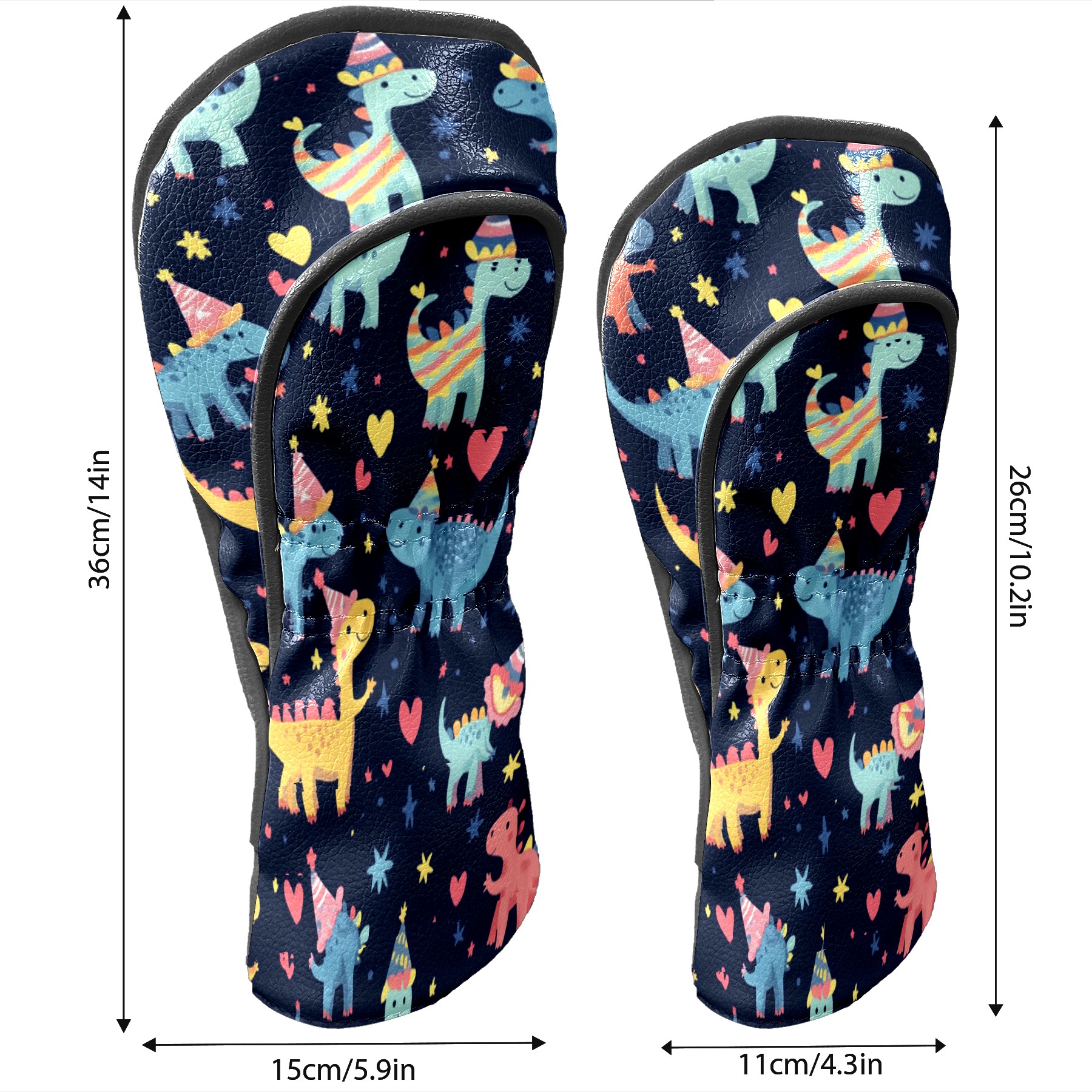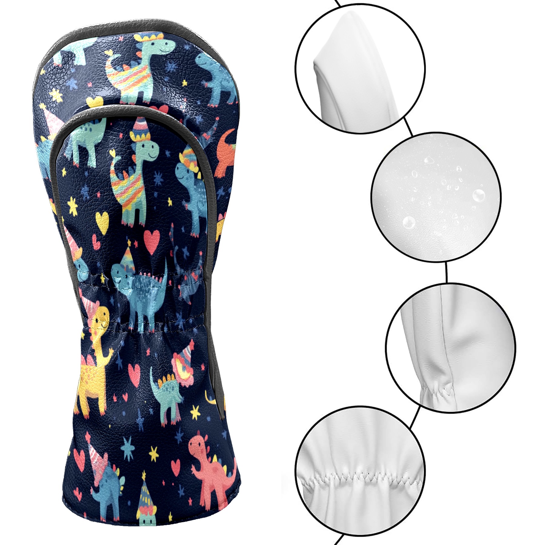 Golf Club Head Covers for Driver and Fairway Woods, Waterproof Leather Headcovers for Golf Clubs, Ideal Golf Accessories Gift for Men Women (Playful Dinosaurs)
