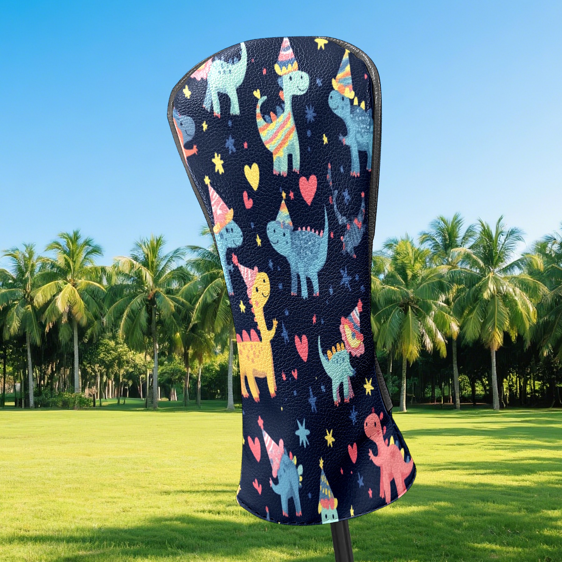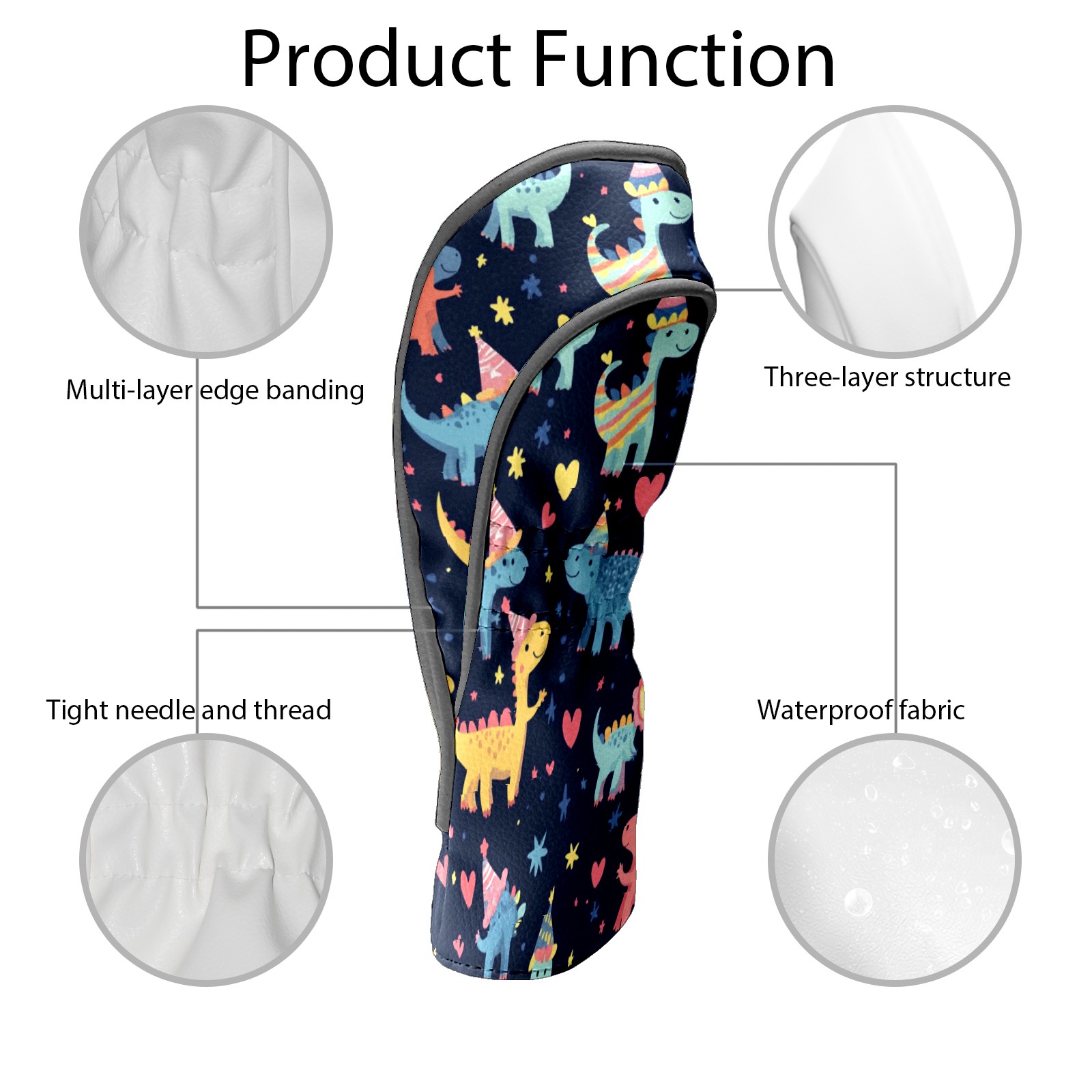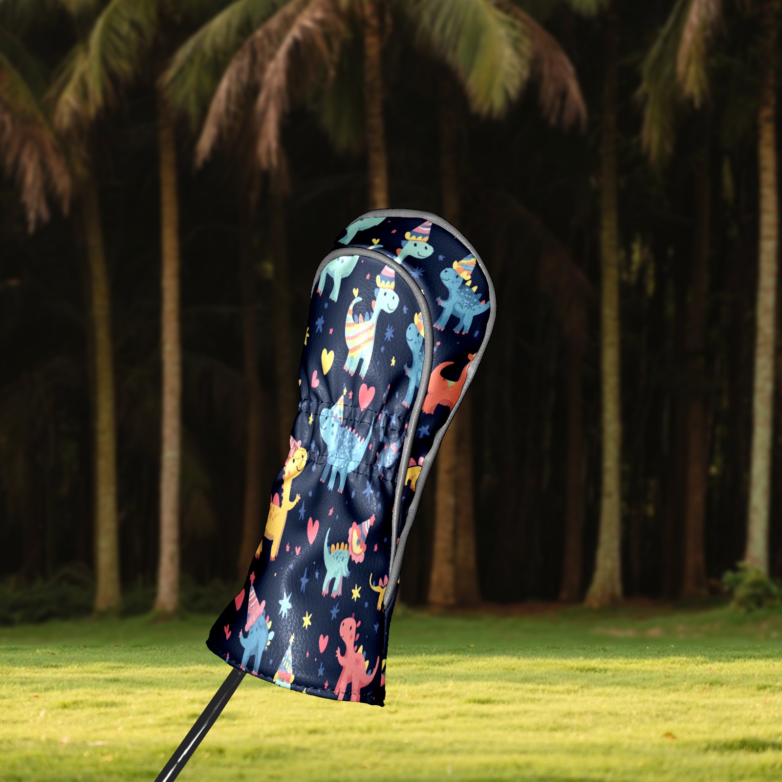 Golf Club Head Covers for Driver and Fairway Woods, Waterproof Leather Headcovers for Golf Clubs, Ideal Golf Accessories Gift for Men Women (Playful Dinosaurs)