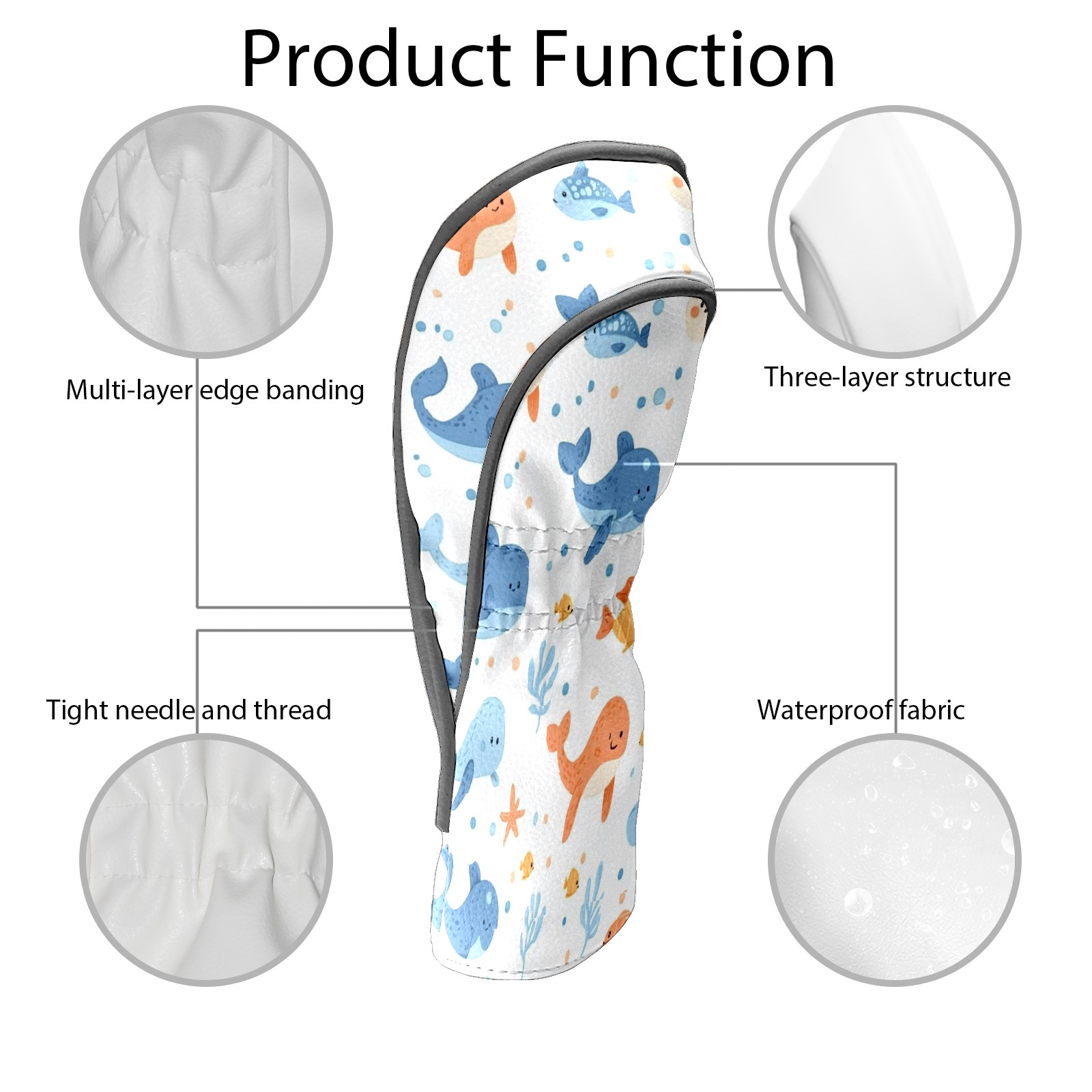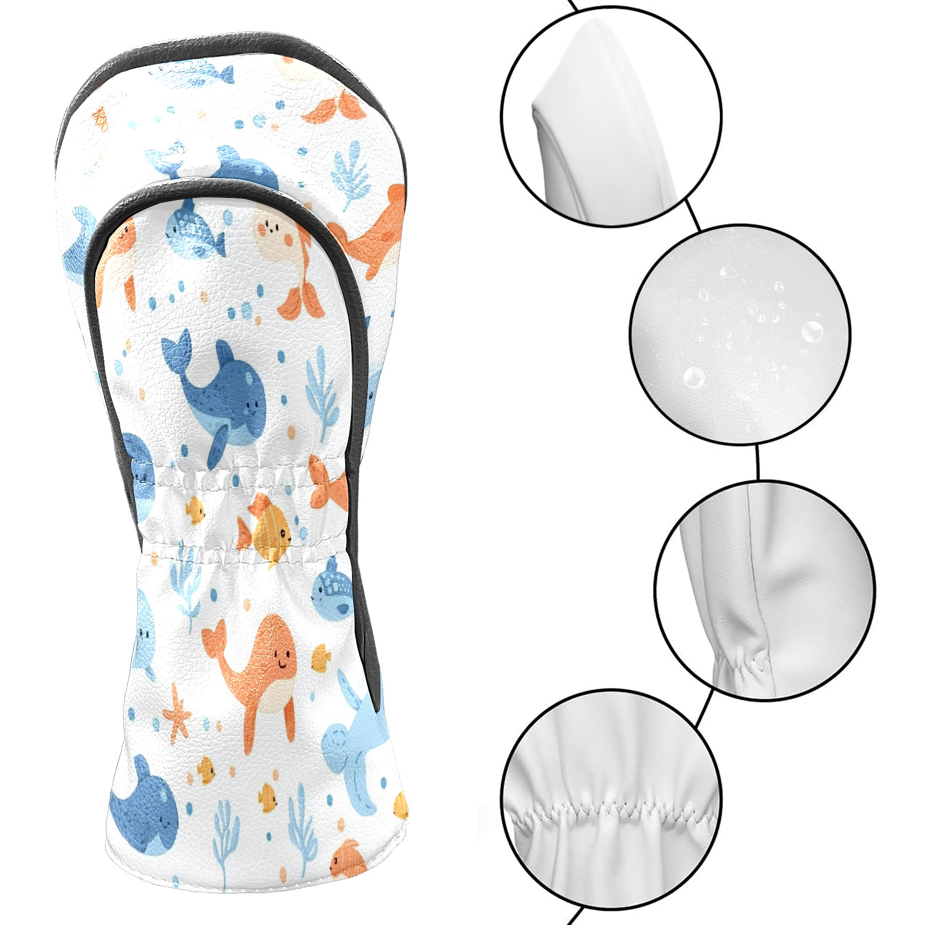Golf Club Head Covers for Driver and Fairway Woods, Waterproof Leather Headcovers for Golf Clubs, Ideal Golf Accessories Gift for Men Women (Sea Animals)