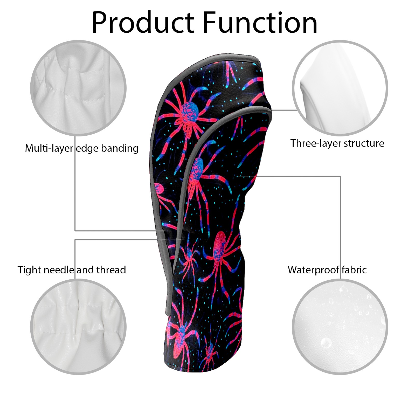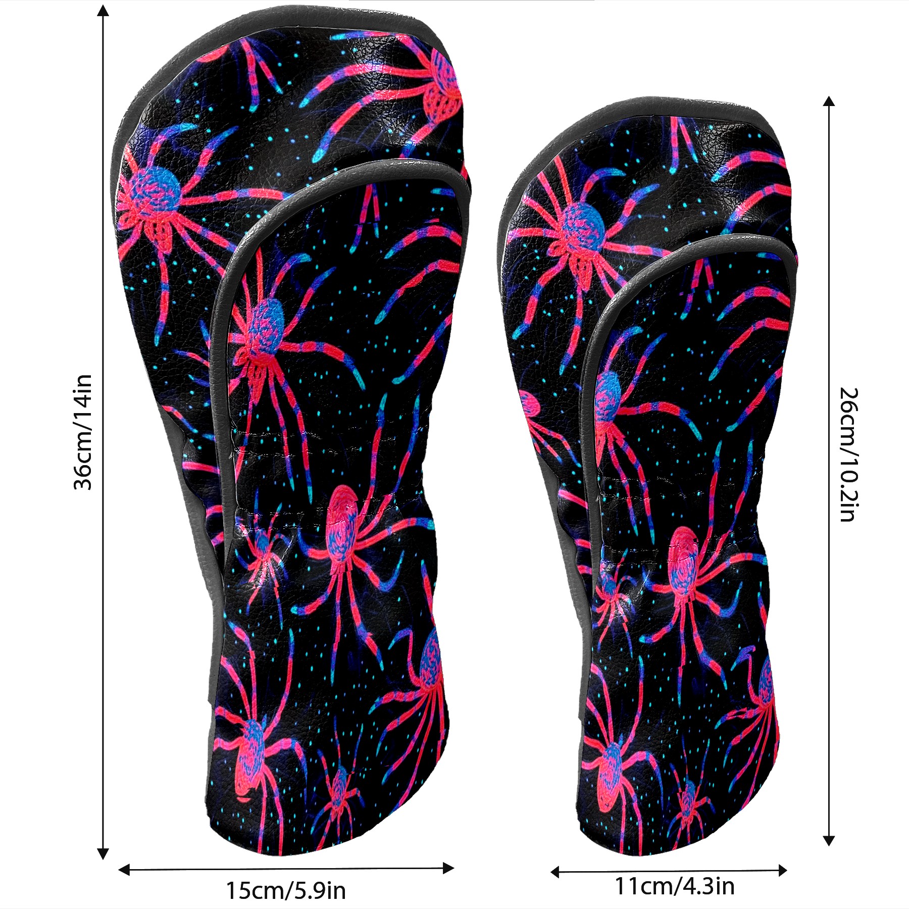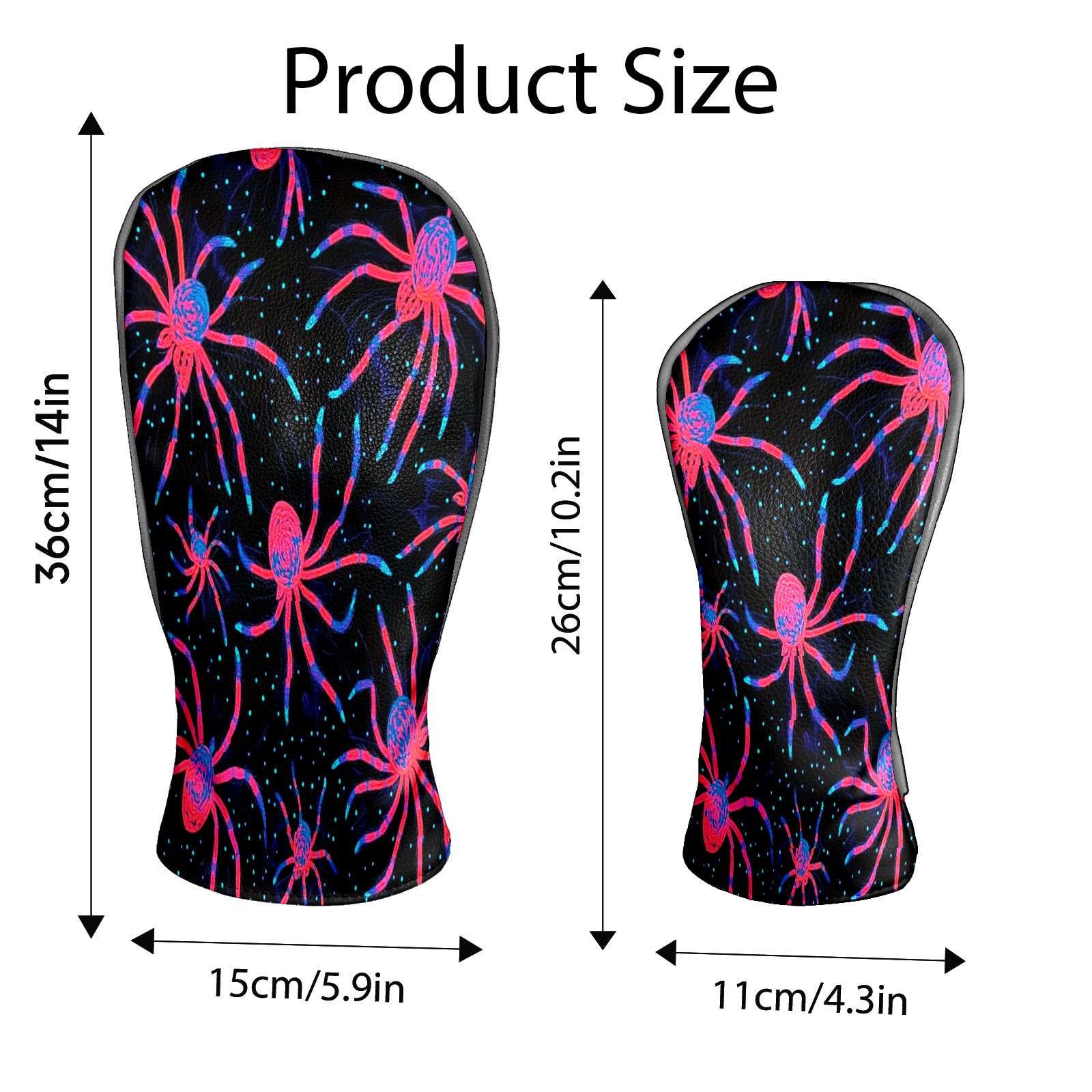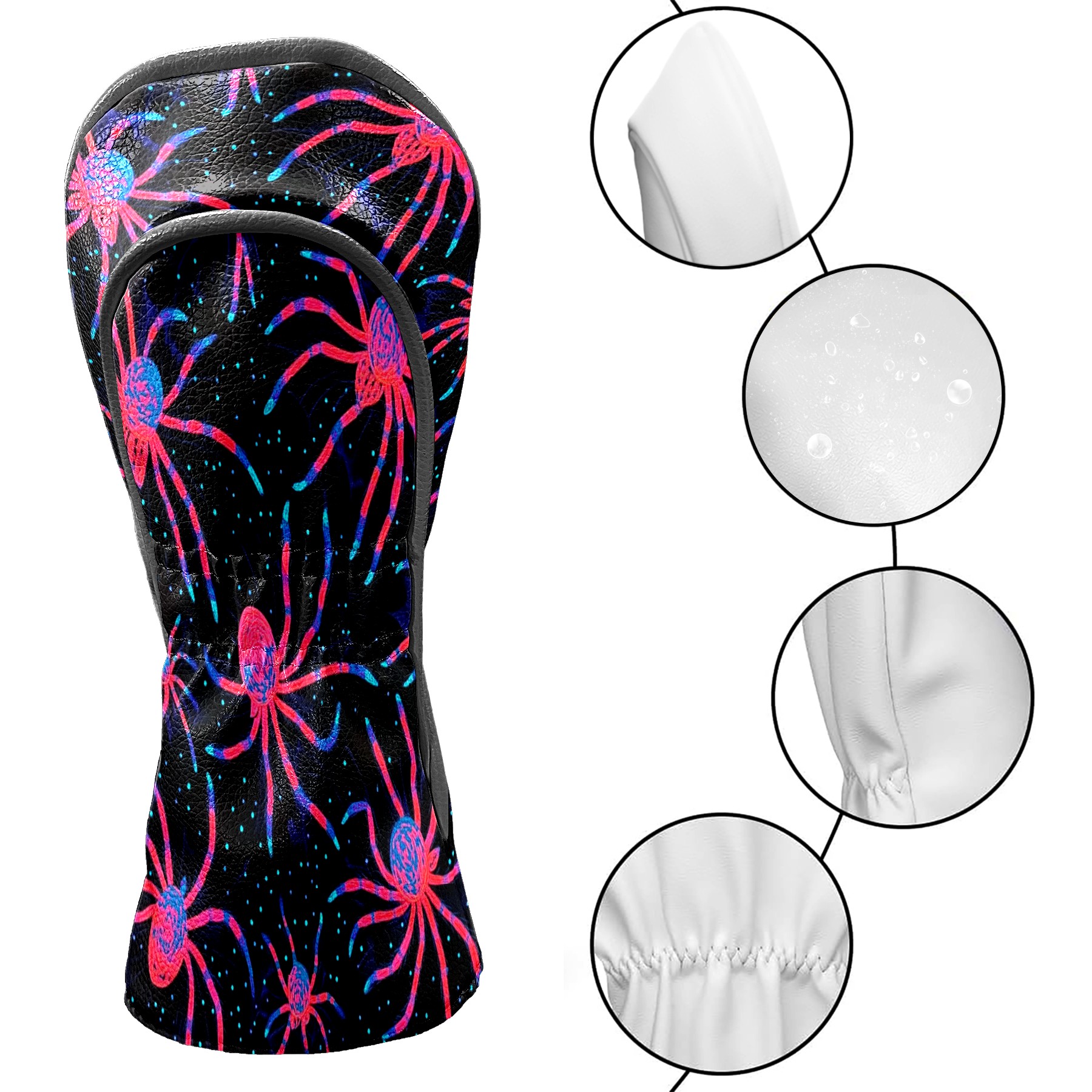 Golf Club Head Covers for Driver and Fairway Woods, Waterproof Leather Headcovers for Golf Clubs, Ideal Golf Accessories Gift for Men Women (Neon Red And Blue Spider)