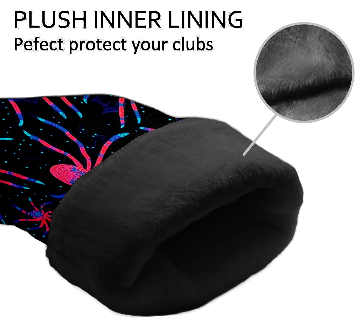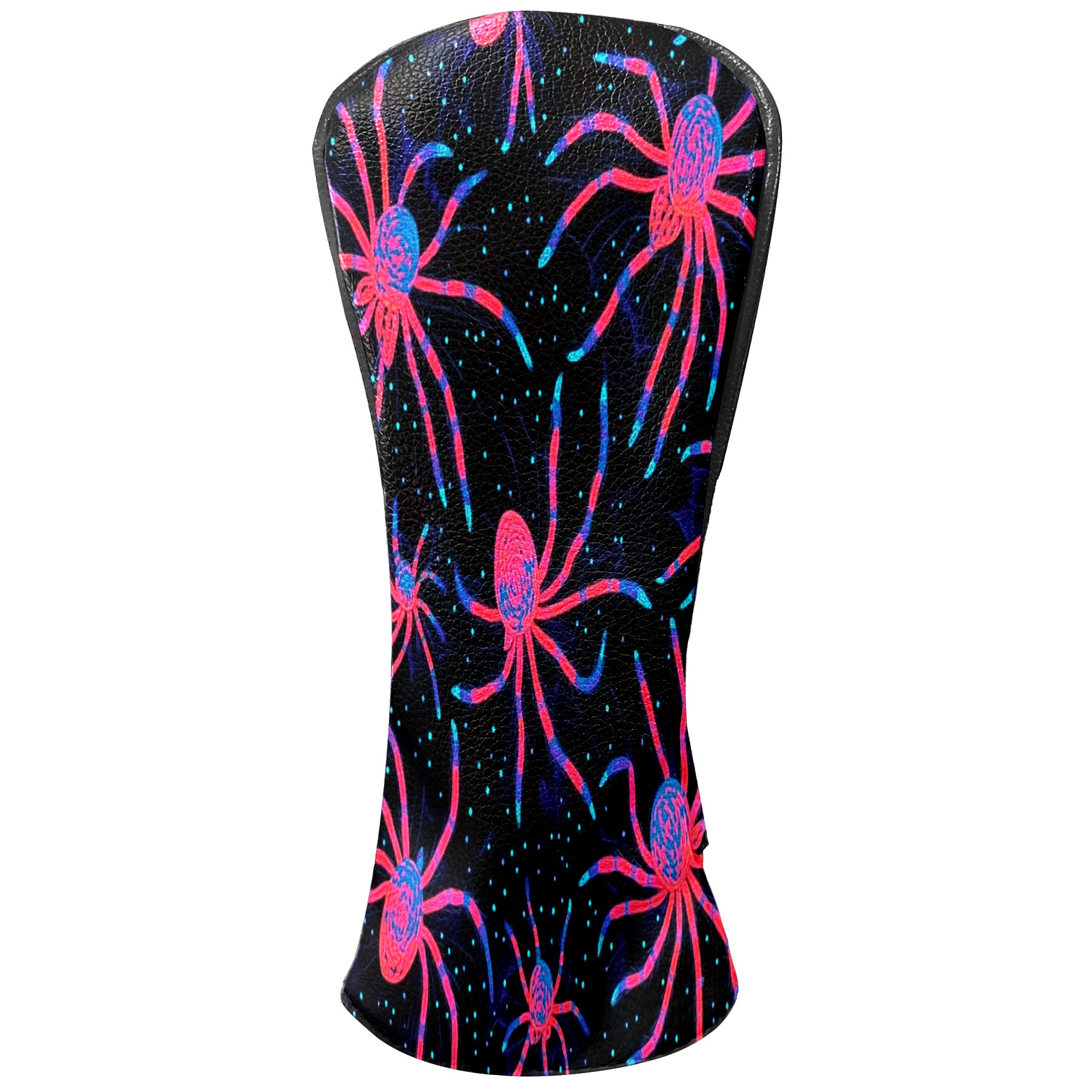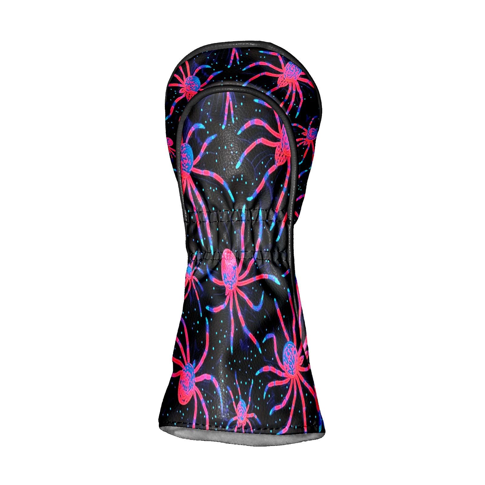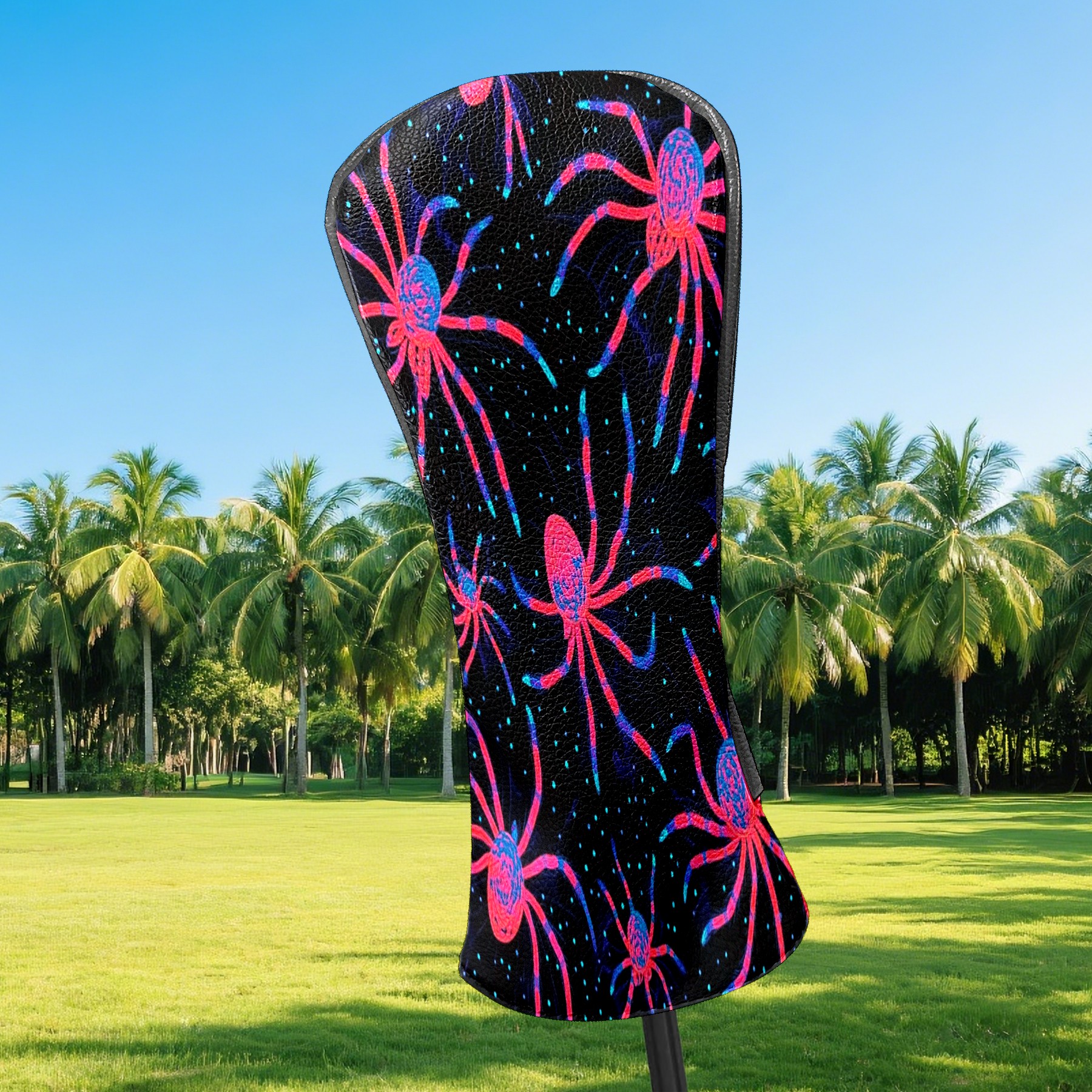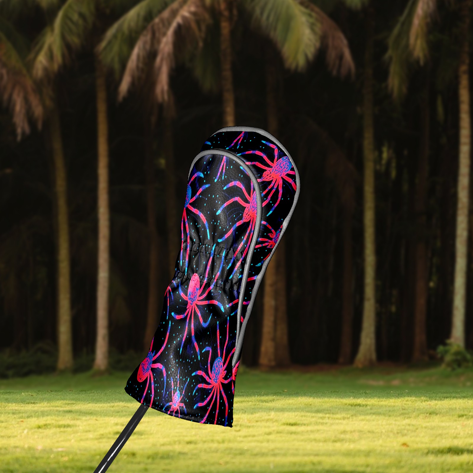 Golf Club Head Covers for Driver and Fairway Woods, Waterproof Leather Headcovers for Golf Clubs, Ideal Golf Accessories Gift for Men Women (Neon Red And Blue Spider)